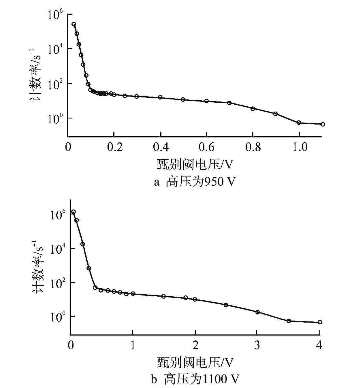 参数名 参数值 甄别阈电压值/V 0.01 0.02 0.03 计数率/s−1 14046 30 0 -