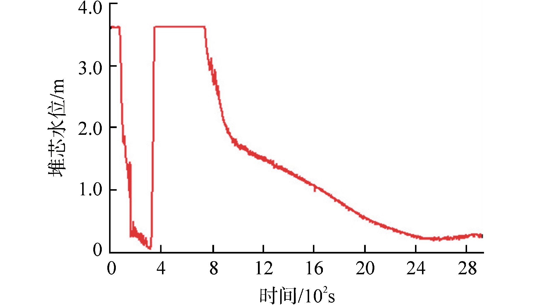 参数 假设条件 初始功率 冷停堆,衰变功率36 MW 一回路压力 RRA连接模式运行压力,2.6 MPa.a(绝对压力) 一回路平均温度 RRA连接模式运行温度,约170℃ 破口位置 一环路热段破口 破口大小 100%(大破口,当量直径0.64 m) 堆芯冷却措施 无(高、低压安注不可用) 专设安全设施 中压安注箱行政隔离 表 2 安注箱相关行政隔离设备清单