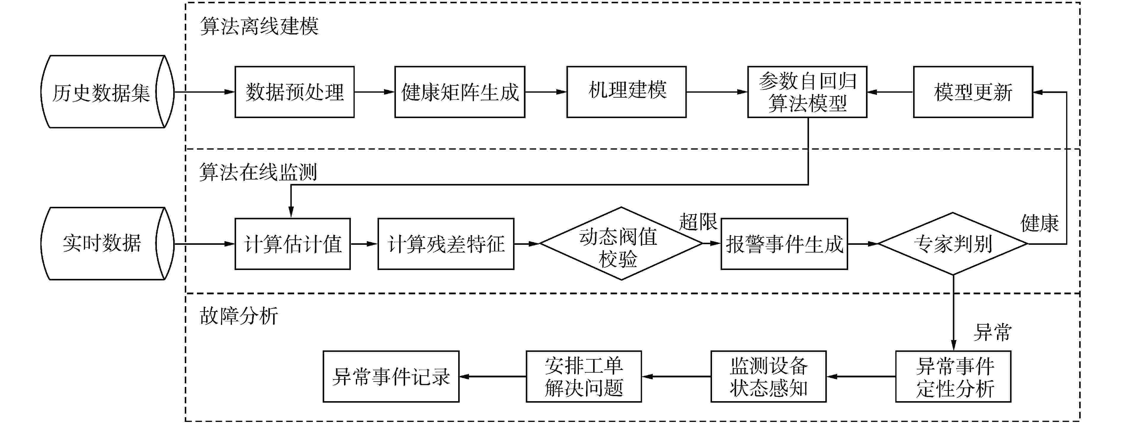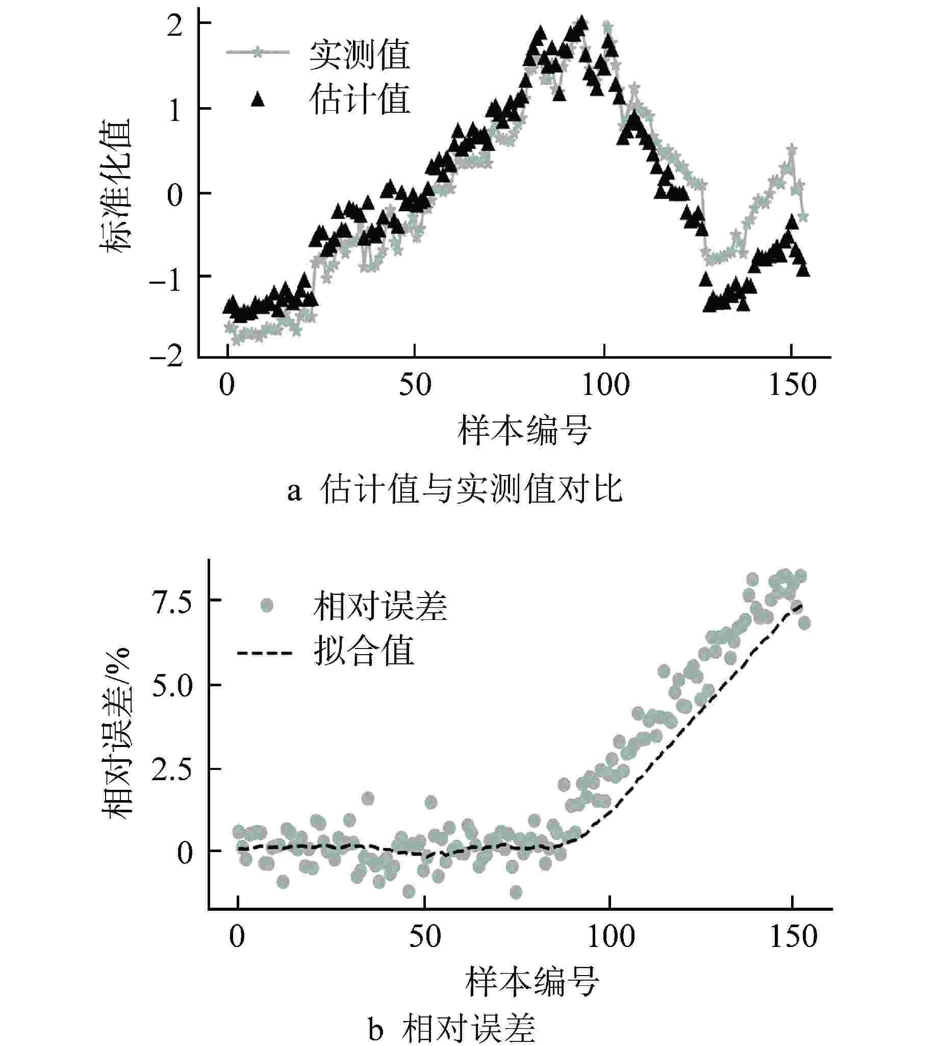 表 1 验证集下轴承模型估计结果与部分测点信息 Table 1. Estimated Results of the Bearing Model under Validation Set and Partial Measurement Points Information 核心测点 平均绝对误差 最大绝对误差 平均相对误差/% 测点重要度 主泵轴承水温度 0.2512℃ 0.9341℃ 0.4140 最重要 主泵功率 7.6639 kW 28.4718 kW 0.0981 重要 主泵转速 0.0143 r/min 0.0367 r/min 0.0114 最重要 轴承振动测点振动幅值 0.0003 mm 0.0011 mm 9.6764 重要 表 2 算法在正常样本与异常样本下识别结果 Table 2. Algorithm Identified Results under Normal and Abnormal Samples 核心测点 平均绝对误差 最大误差 正常样本 异常样本 正常样本 异常样本 主泵轴承水温度/℃ 0.24798 2.61611 0.93408 5.24965 主泵功率/kW 8.12086 8.99024 28.47180 28.56510 主泵转速/(r·min−1) 0.01169 0.01010 0.03372 0.03438 轴承振动测点振动幅值/mm 0.00026 0.00025 0.00088 0.00102