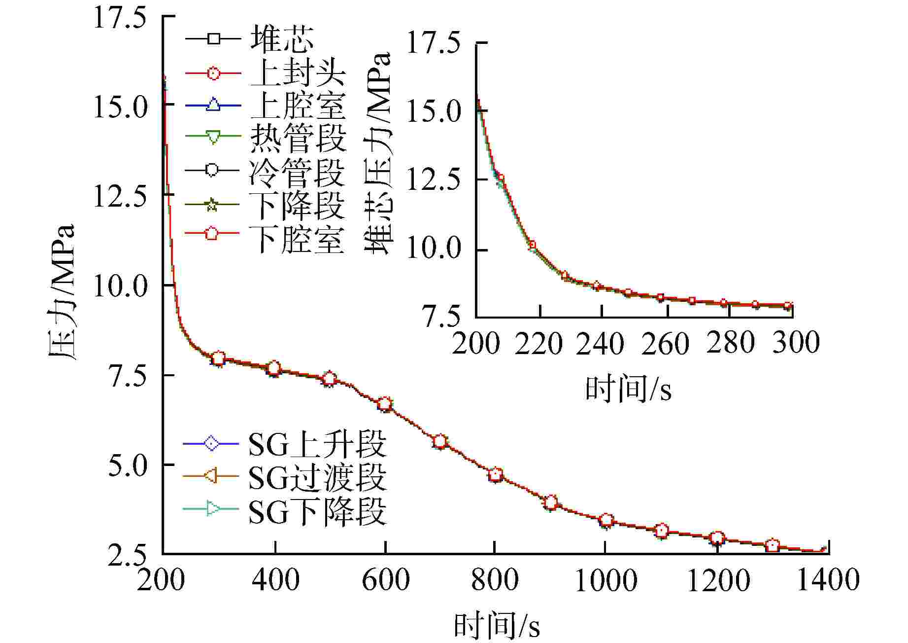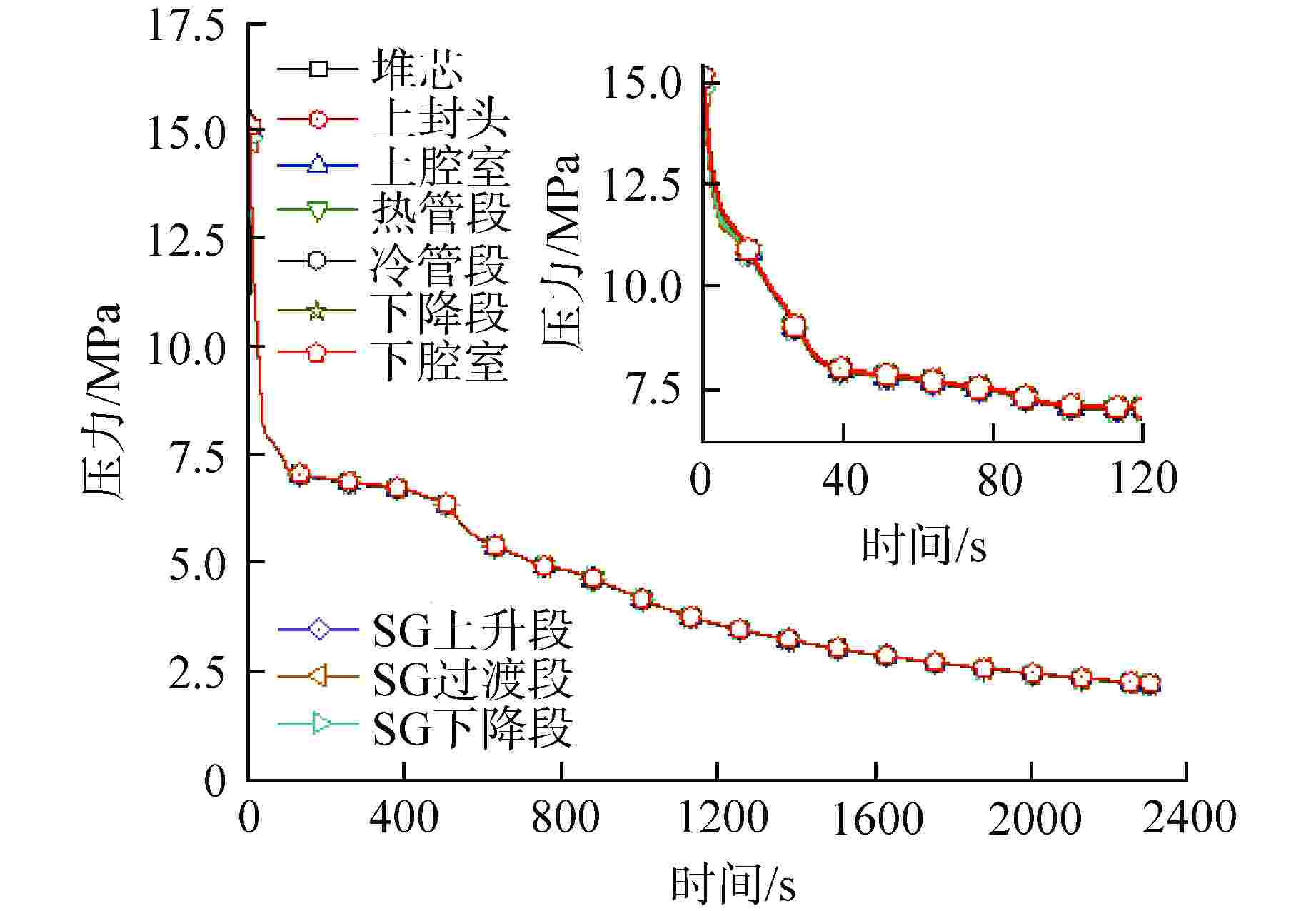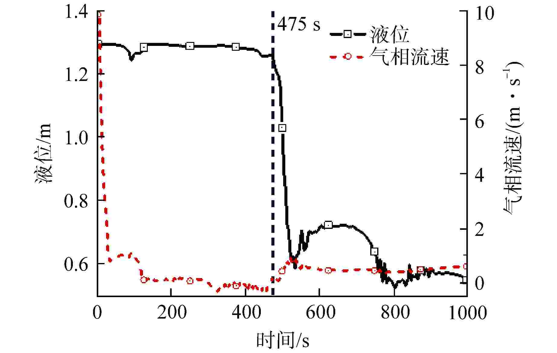 液位 含义说明 LOFT L3-5 LOBI BL-02 LCUP,0 堆芯坍塌液位参考值 3.3843031 4.1129603 LDC,0 下降通道液位参考值 4.588439 5.9365168 LSGU,0 SG上升段液位参考值 8.8605458×10−1 1.8020197 LLCU,0 过渡段到冷段水封液位参考值 1.3761617×10−4 3.0225303×10−5 LSGD,0+LLSD,0 SG下降段及过渡段水封下降段液位之和参考值 5.6662928×10−2 7.3722704×10−2 LCUP,min 堆芯最低水位 3.0335832 2.8287368 表 5 各阶段无量纲数的量化结果