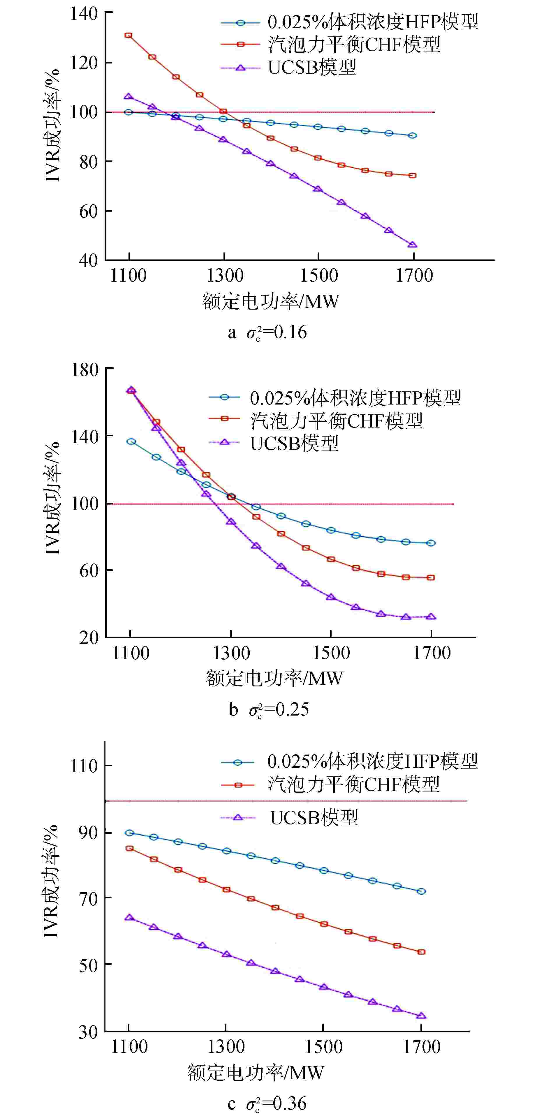 CHF模型1100 80.2 94.6 1200 73.5 92.1 1300 67.8 88.2 1400 63.0 85.0 表 3 基于HFP模型的IVR结果 Table 3. IVR Results Based on HFP Model 额定电功