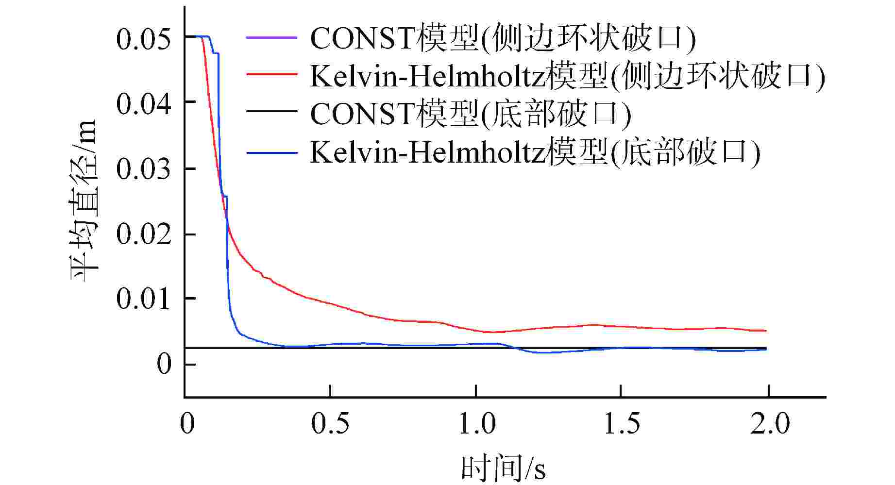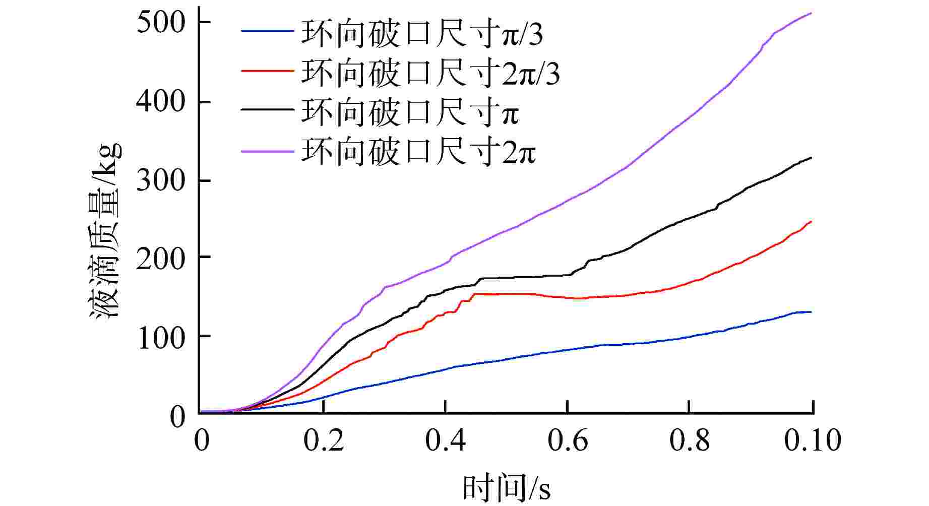 算例 破口位置 破口尺寸 堆坑初始水位/m 液柱碎化模型 触发条件 爆炸细粒碎化模型 Case 1 侧边局部破口 环向π/3 8.76 CONST模型 堆坑侧壁面触发 Classical Case 2 侧边局部破口 环向2π/3 8.76 CONST模型 堆坑侧壁面触发 Classical Case 3 侧边局部破口 环向π 8.76 CONST模型 堆坑侧壁面触发 Classical Case 4 侧边环状破口 环向2π 8.76 CONST模型 堆坑侧壁面触发 Classical Case 5 侧边环状破口 环向2π 1.0 CONST模型 堆坑底壁面触发 Classical Case 6 侧边环状破口 环向2π 2.0 CONST模型 堆坑底壁面触发 Classical Case 7 侧边环状破口 环向2π 4.0 CONST模型 堆坑底壁面触发 Classical Case 8 侧边环状破口 环向2π 6.0 CONST模型 堆坑侧壁面触发 Classical Case 9 底部破口 半径0.33 m 8.76 CONST模型 堆坑底壁面触发 Classical Case 10 底部破口 半径0.33 m 8.76 Kelvin-Helmholtz模型 堆坑底壁面触发 Classical Case 11 侧边环状破口 环向2π 8.76 Kelvin-Helmholtz模型 堆坑侧壁面触发 Classical Case 12 侧边环状破口 环向2π 8.76 CONST模型 堆坑底壁面触发 Classical Case 13 侧边环状破口 环向2π 8.76 CONST模型 堆坑侧壁面触发 Area transport -