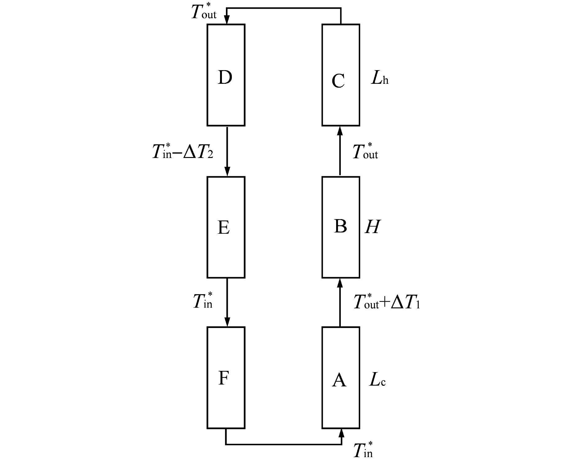 $ \Delta {T_1} $/℃ 理论$\varepsilon $/% 模拟$\varepsilon $/% 相对误差/% 1 −0.75 −0.68 9.33 5 −3.75 −3.45 8.00 10 −7.50 −7.03 6.27 20 −15.01 −14.55 3.06 30 −22.51 −21.53 4.35 表 5 热源、热阱温度非线性分布对自然循环能力影响(CFD模拟结果)
