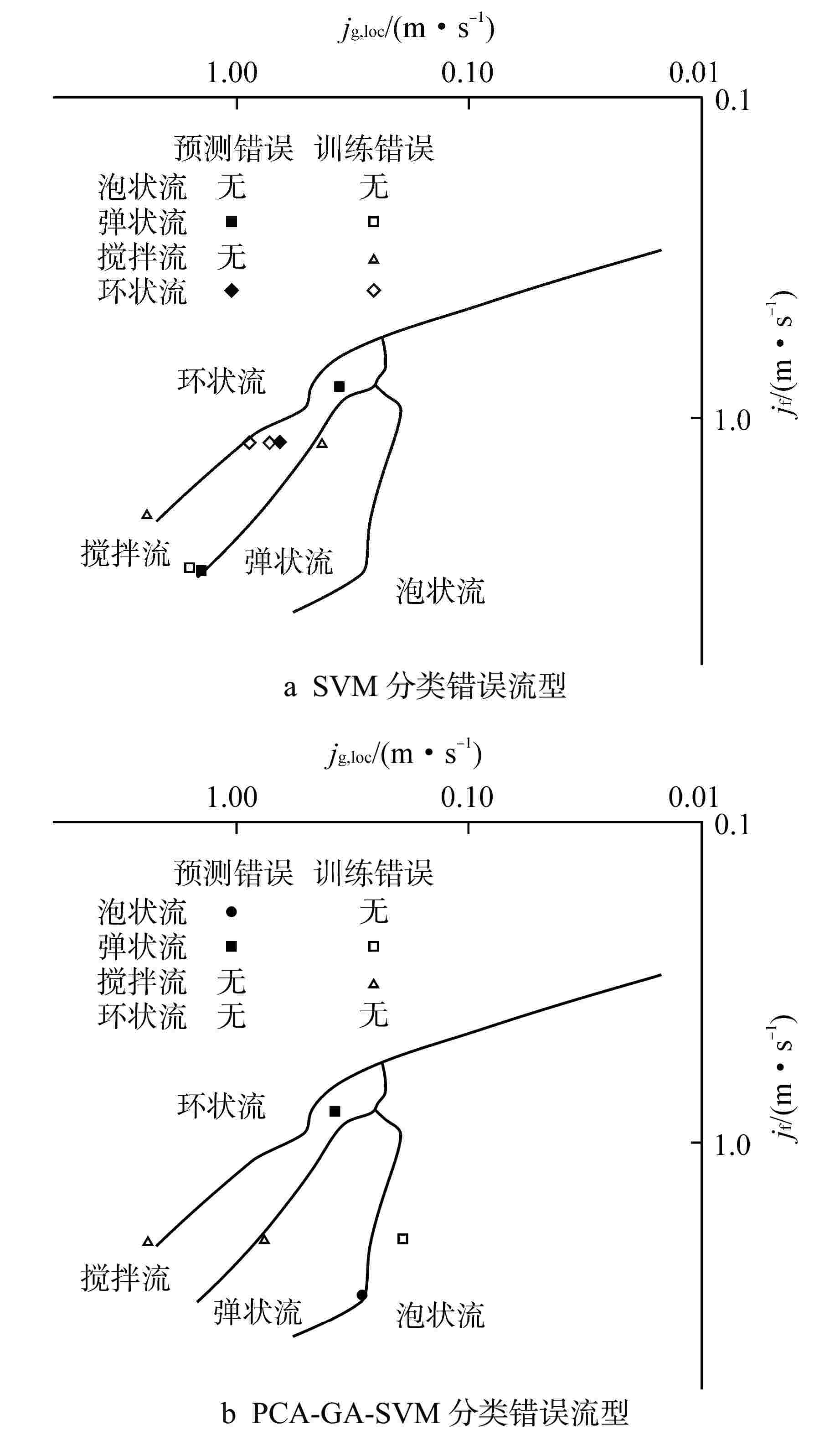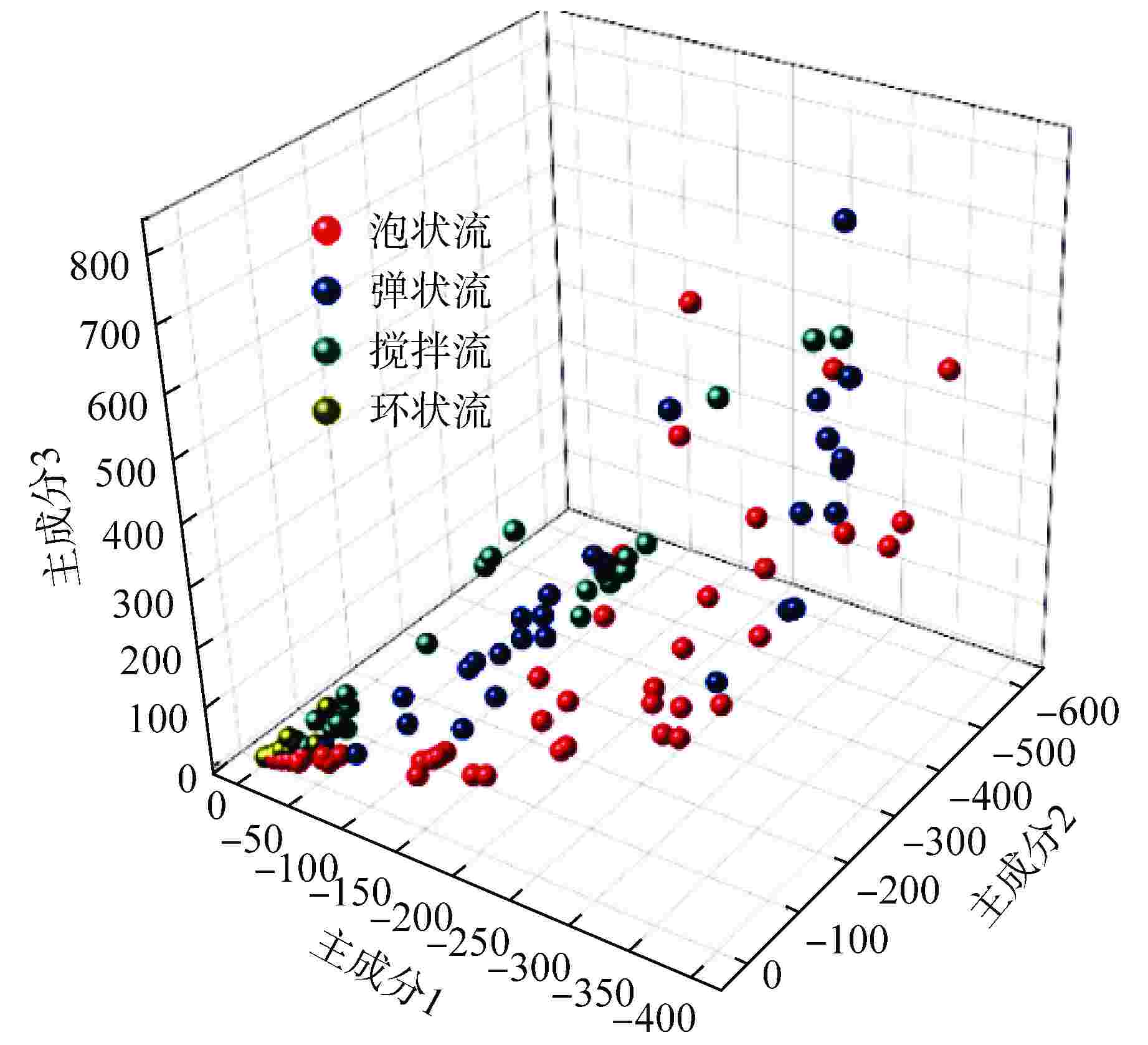摘要: 为提高小样本条件下的流型识别精度和时效性,提出了一种融合小波包分解(WPD)、主元分析(PCA)、遗传算法(GA)和支持向量机(SVM)的优化识别模型,并成功应用在竖直下降两相流流型辨识工作中。利用WPD对非平稳电导波动信号进行分解、重构,提取小波包能量构造特征向量;通过PCA对特征向量进行降维,降低特征输入的复杂性;同时采取GA全局迭代寻优的方式确定SVM的关键参数惩罚因子(C)和核函数参数(g)。对PCA-GA-SVM识别效果进行验证后与SVM、PCA-SVM、GA-SVM网络进行对比。结果表明,经过PCA和GA优化后的SVM网络在流型识别精度和时效性方面均提升显著,对泡状流、弹状流、搅拌流和环状流的总体预测精度达到了94.87%,耗时仅3.95 s,可满足在线识别需求。Abstract: In order to improve the accuracy and timeliness of flow pattern identification under the condition of small samples, an optimized identification model integrating wavelet packet decomposition (WPD), principal component analysis (PCA), genetic algorithm (GA) and support vector machine (SVM) is proposed and successfully applied to the flow pattern recognition of vertical-downward two-phase flow. WPD is used to decompose and reconstruct the non-stationary conductivity fluctuation signal, extract the wavelet packet energy and construct the feature vector; The dimension of feature vector is reduced by PCA to reduce the complexity of feature input; At the same time, the key parameters penalty factor (C) and kernel function parameter (g) of SVM are determined by GA global iterative optimization. After verifying the identification effect of PCA-GA-SVM, it is compared with SVM, PCA-SVM and GA-SVM networks. The results show that the SVM network optimized by PCA and GA is significantly improved in terms of flow pattern identification accuracy and timeliness. The overall prediction accuracy of bubble flow, slug flow, stirred flow and annular flow reaches 94.87%, and the time consumed is only 3.95 s, which can meet the needs of on-line identification.