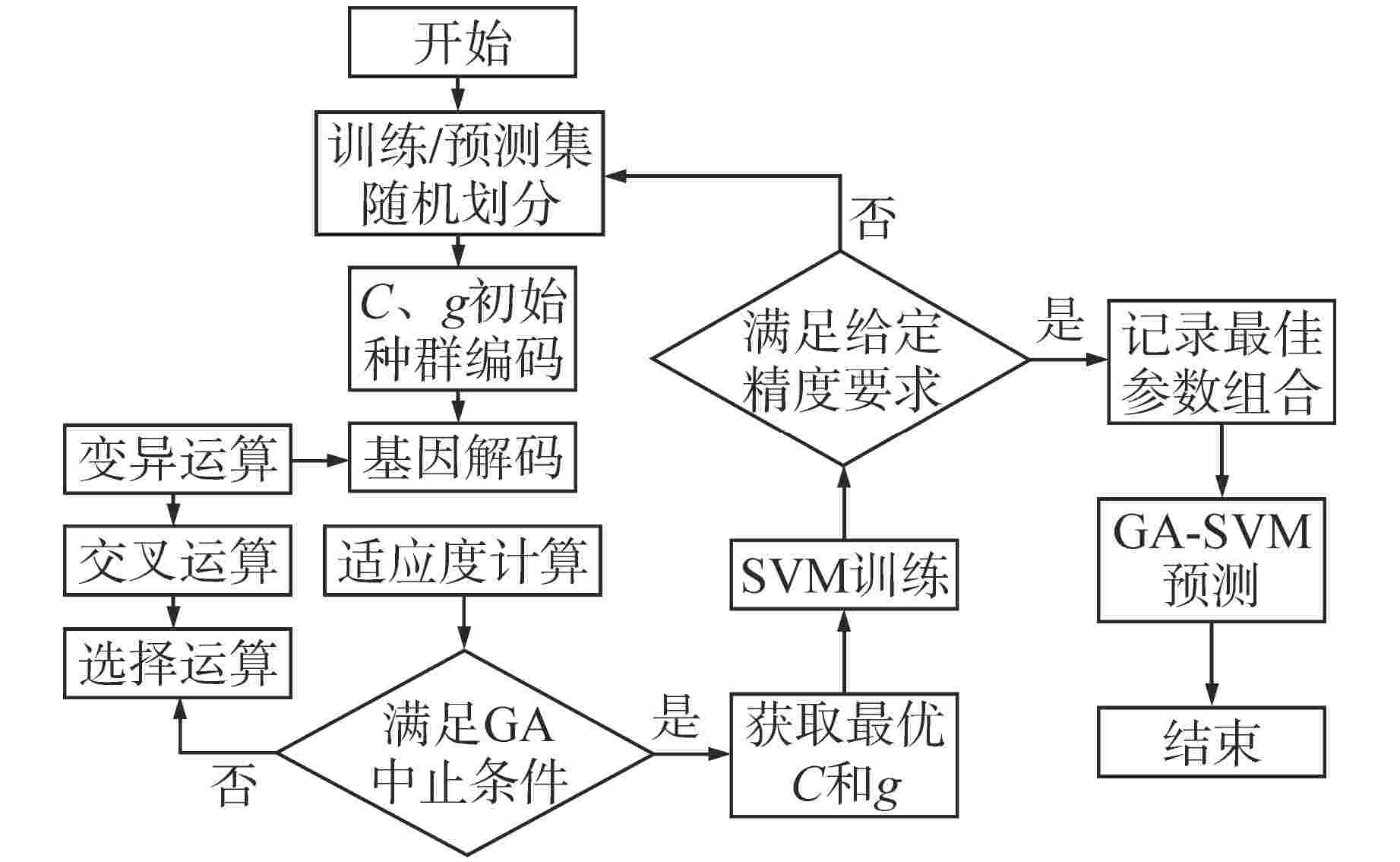 分类模型 训练精度/% 预测精度/% 耗时/s SVM 94.62 92.30 33.15 GA-SVM 95.69 92.30 5.42 PCA-SVM 96.77 94.87 13.96 PCA-GA-SVM 96.77 94.87 3.95 -