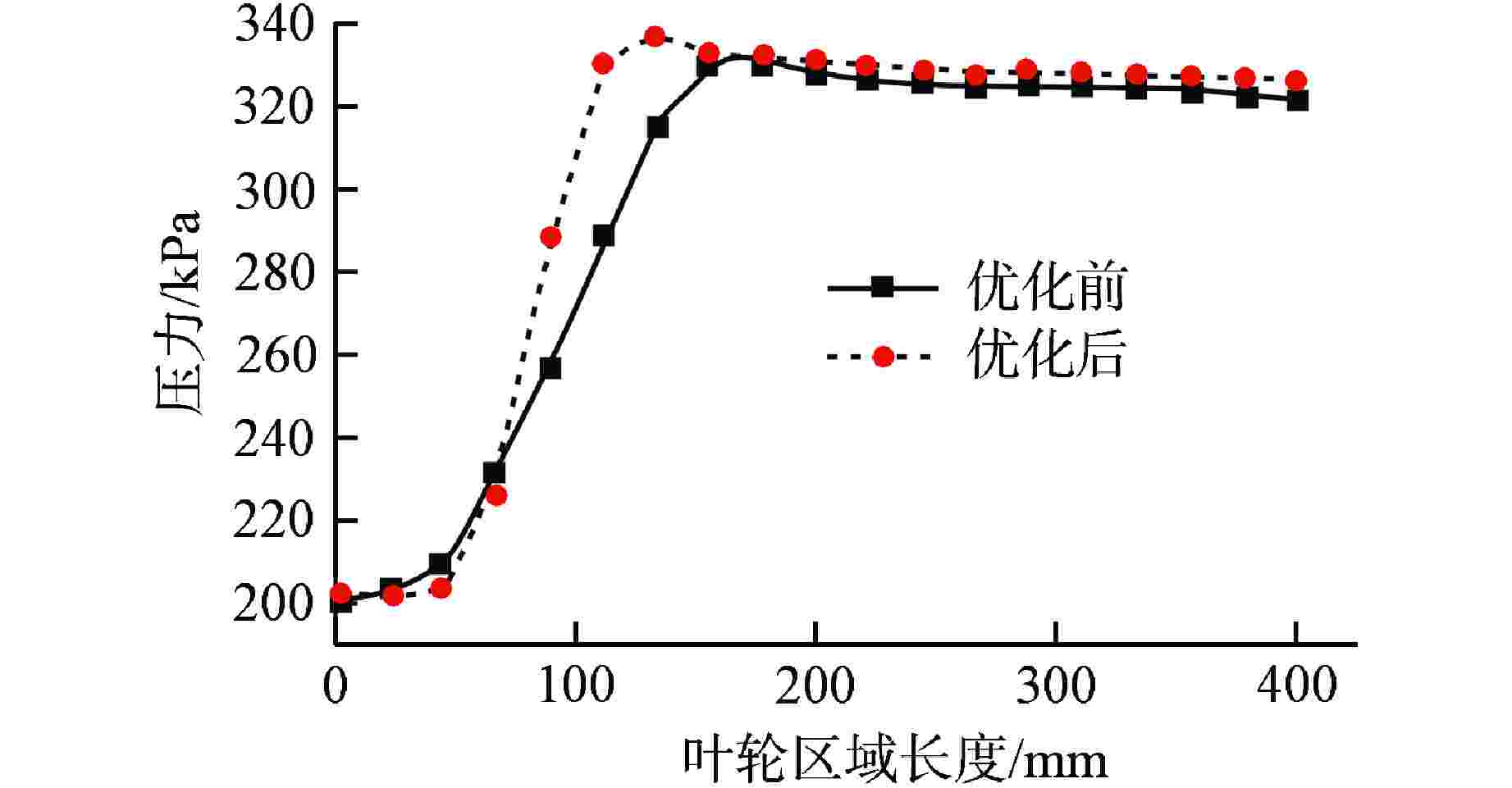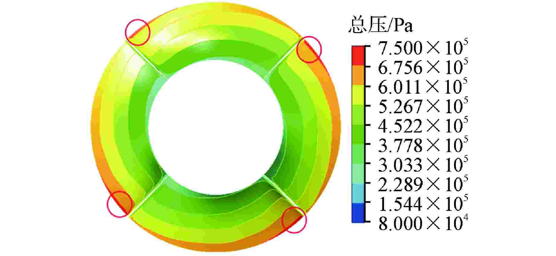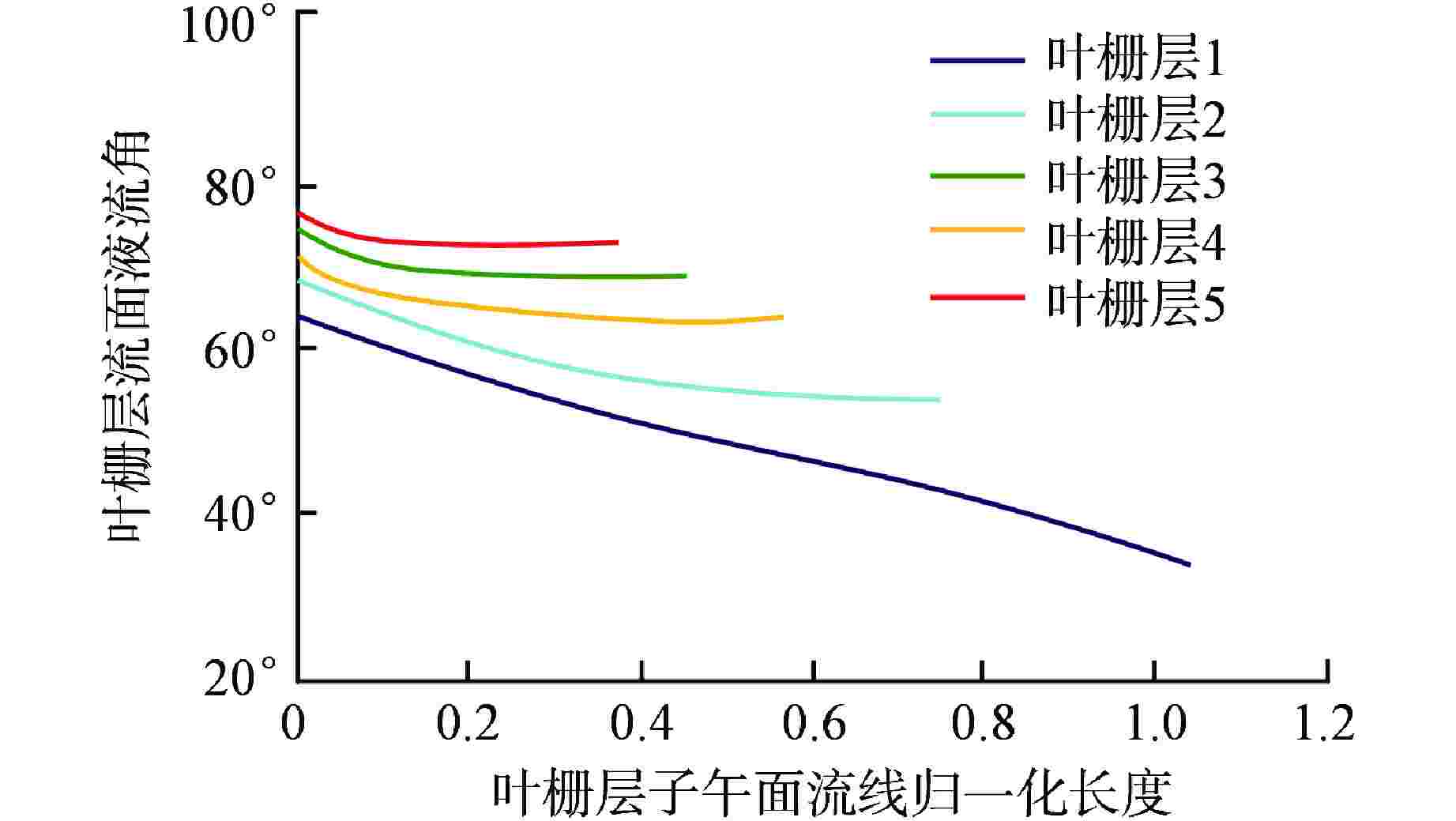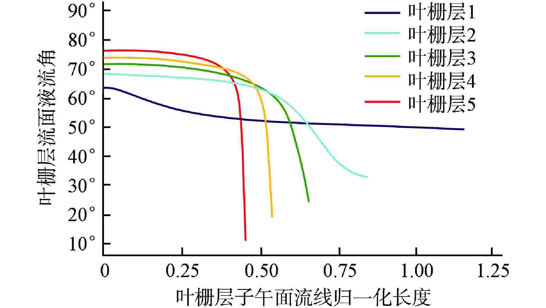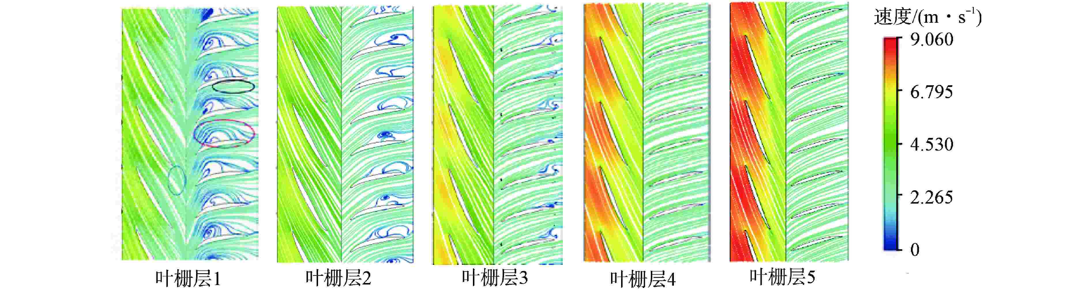 叶栅层层数 β1/rad β2 /rad α3/rad α4/rad u1=u2/(m·s−1) vm1=vm2/(m·s−1) vmax/(m·s−1) lr/m lg/m δp/kPa H/m 叶栅层1 0.461 0.863 0.712 1.57 4.52 2.25 5.05 0.107 0.162 125 1.2 叶栅层2 0.381 0.582 0.798 1.57 5.48 2.2 5.91 0.122 0.160 125 1.2 叶栅层3 0.322 0.435 0.867 1.57 6.45 2.15 6.80 0.137 0.158 125 1.2 叶栅层4 0.276 0.347 0.925 1.57 7.4 2.10 7.69 0.152 0.157 125 1.2 叶栅层5 0.241 0.286 0.973 1.57 8.37 2.06 8.62 0.167 0.67 125 1.2 β1、β2—动叶片进口和出口位置的液流角,在叶栅流面上是相对速度和圆周速度间的夹角;α3、α4——导叶片的进、出口角,表征叶珊流面绝对速度和圆周速度之间的夹角;u1、u2—圆周方向进、出口流速;vm1和vm2—动叶片进口和出口的轴向速度;lr—动叶片翼型长度;H—扬程;lg—导叶片叶型长度;δp—叶轮进出口压差 表 2 叶轮网格无关性分析