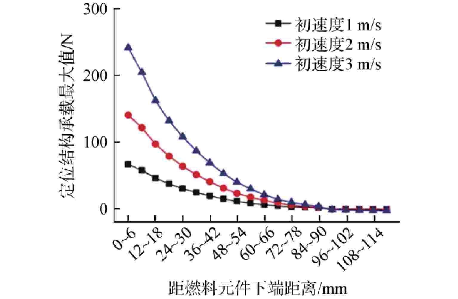 材料 密度/(kg·m−3) 弹性模量/GPa 泊松比 6061铝合金 2800 71 0.33 304不锈钢 7850 199 0.28 燃料元件材料 4240 60.5 0.33 材料 A/MPa B/MPa n m C 6061铝合金 324 114 0.42 1.34 0.002 304不锈钢 454 1962 0.75 0.69 0.173 表 3 1号燃料元件最大应力