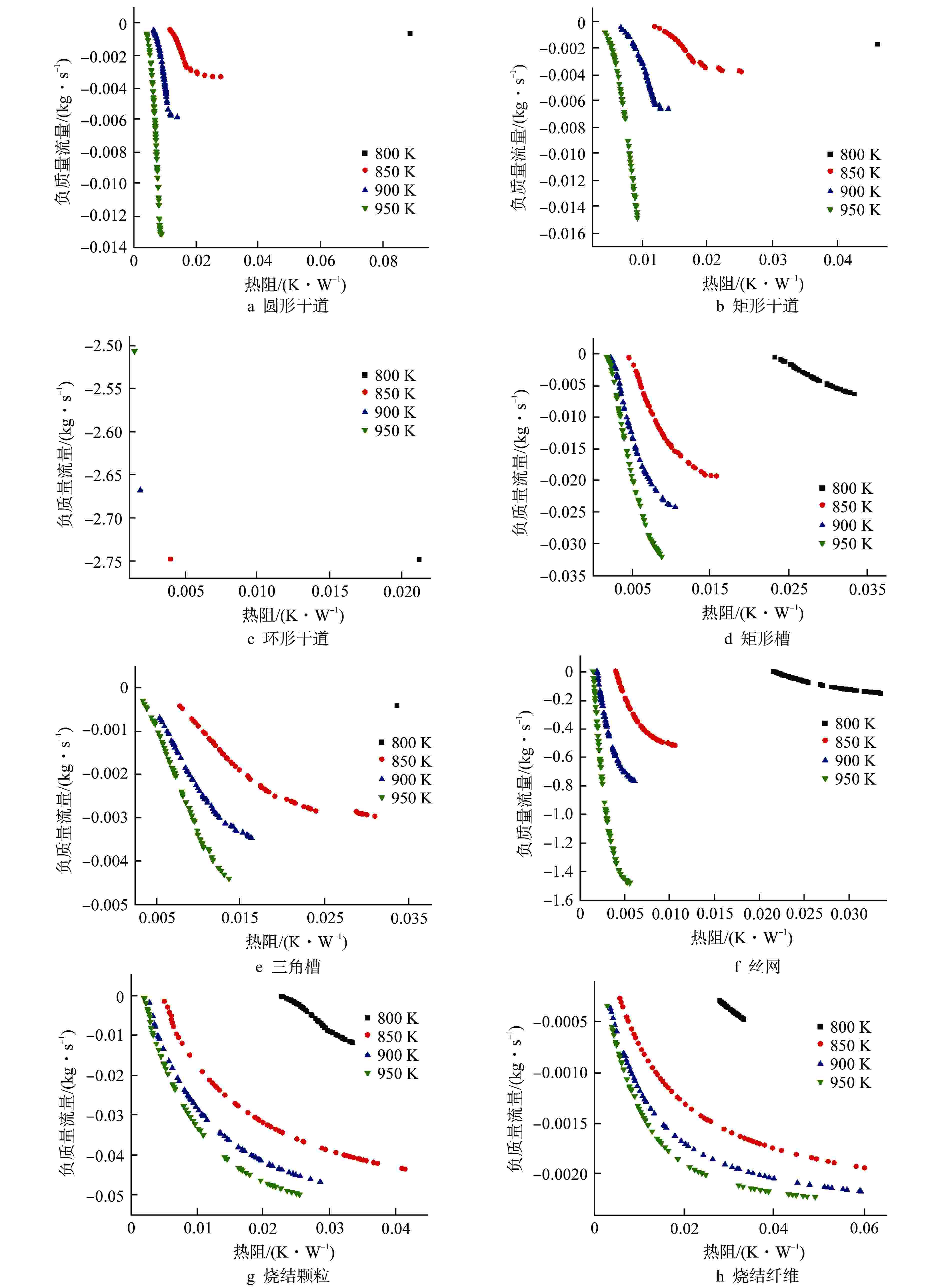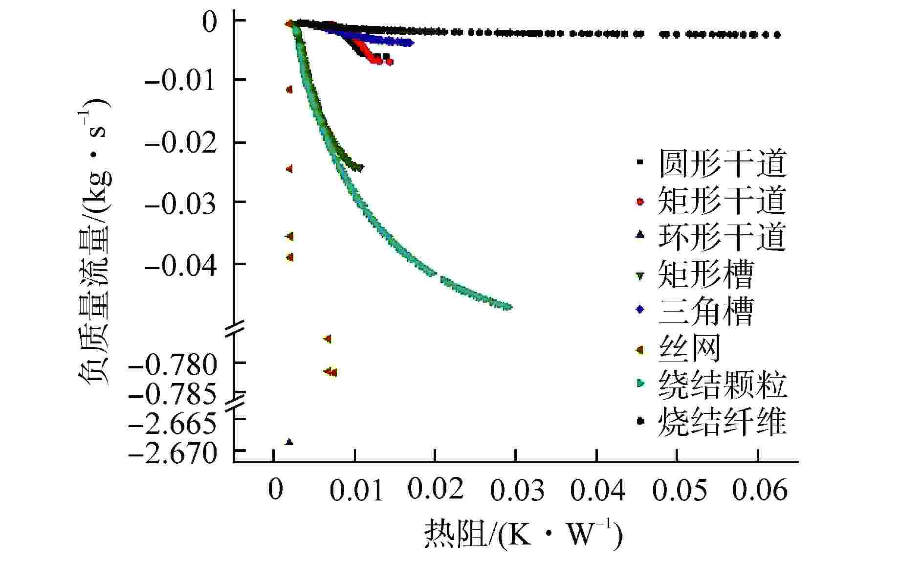 性能参数 性能排序 热阻 环形干道>丝网>矩形槽>烧结颗粒>烧结纤维>三角槽>圆形干道>矩形干道 毛细质量流量 环形干道>丝网>烧结颗粒>矩形槽>矩形干道>圆形干道>三角槽>烧结纤维 热阻可行范围 烧结纤维>烧结颗粒>三角槽>矩形槽>圆形干道>矩形干道>丝网>环形干道 毛细质量流量可行范围 丝网>烧结颗粒>矩形槽>矩形干道>圆形干道>三角槽>烧结纤维>环形干道 -