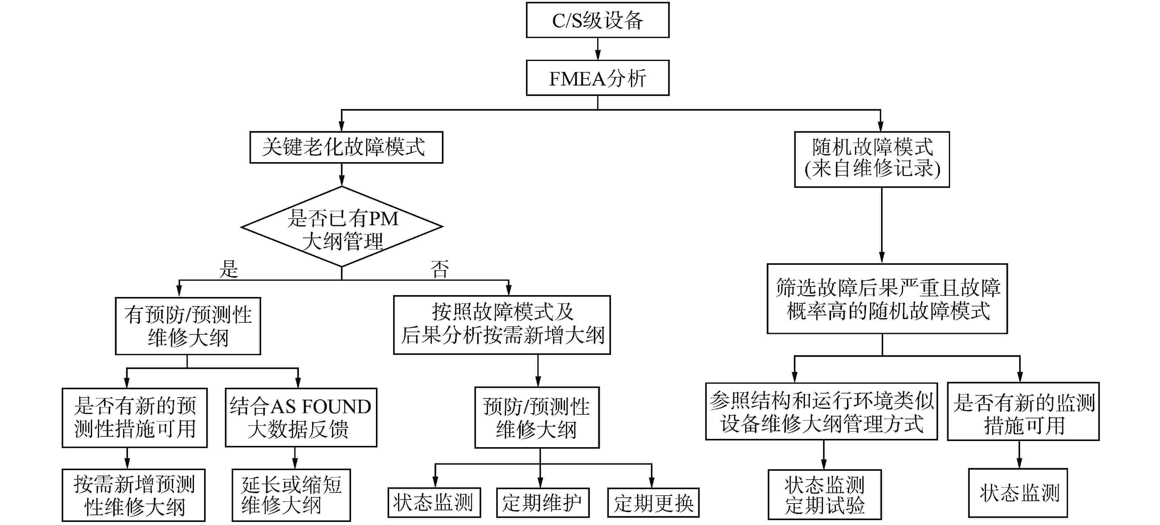 设备级别 C S E R 分级名称 关键设备 重要设备 经济设备 运行至失效设备 当前设备大纲配置现状 预防性+预测性维修 后续设备大纲优化配置导向 预防性+预测性维修 预测性维修 纠正性维修 PM大纲优化实施目标 ①基于现场检修AS FOUND数据,识别未管理到的重要故障模式,加强预防性维修管理;②基于现场检修AS FOUND数据,延长或缩短预防性维修大纲周期;③结合目前已有监测技术,增加适用的预测性维修大纲 ①结合目前已有监测维修技术,侵入式维修大纲替代为预测性维修大纲;②保留常规维护性大纲,并结合AS FOUND进行数据优化 巡视管理替代目前已有的预防及预测性维修大纲 表 4 RCP部分部件维修大纲优化示例