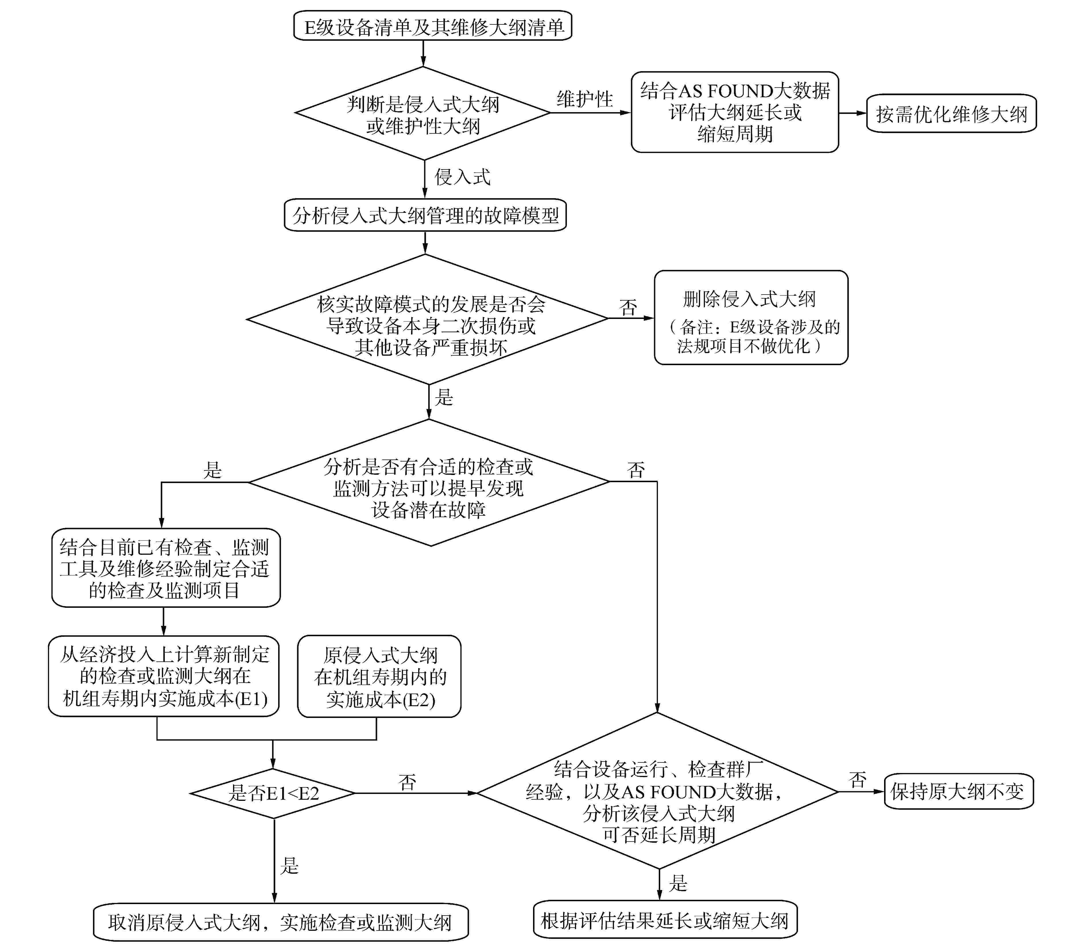 设备名称 维修大纲 大纲类别 故障模式 故障模式的发展是否会导致设备二次损伤或导致其他设备严重损坏 分析是否有合适的检查或监测方法可以提早发现设备潜在故障 结合目前已有检查、监测工具及维修经验制定合适的检查或监测项目 从经济投入上衡量“新制定的检查或监测项目”在机组寿期内成本是否小于原侵入式维修大纲 维修大纲优化结果 循环水净化系统泵CTE001PO(002PO) 解体检