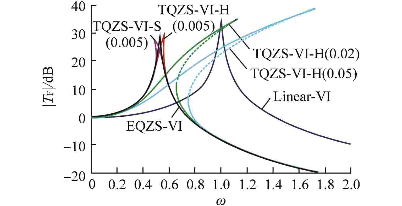隔振器类型 参数 μ λ δ $ \hat l $ α β TQZS-VI-H 1 0 — 0.58 0.28 1.70 TQZS-VI-S 0 0.72 1.96 0.70 0.28 −1.44 EQZS-VI 1 0.33 2.50 0.70 0.28 0 “—”表示不涉及该参数 -