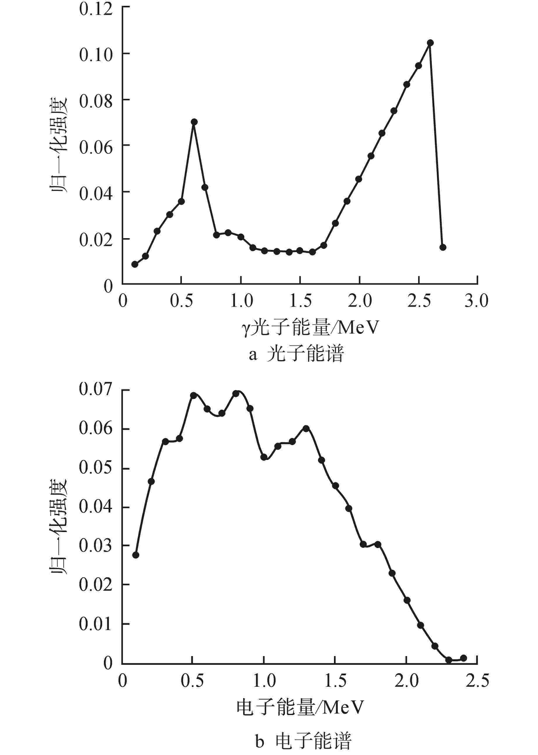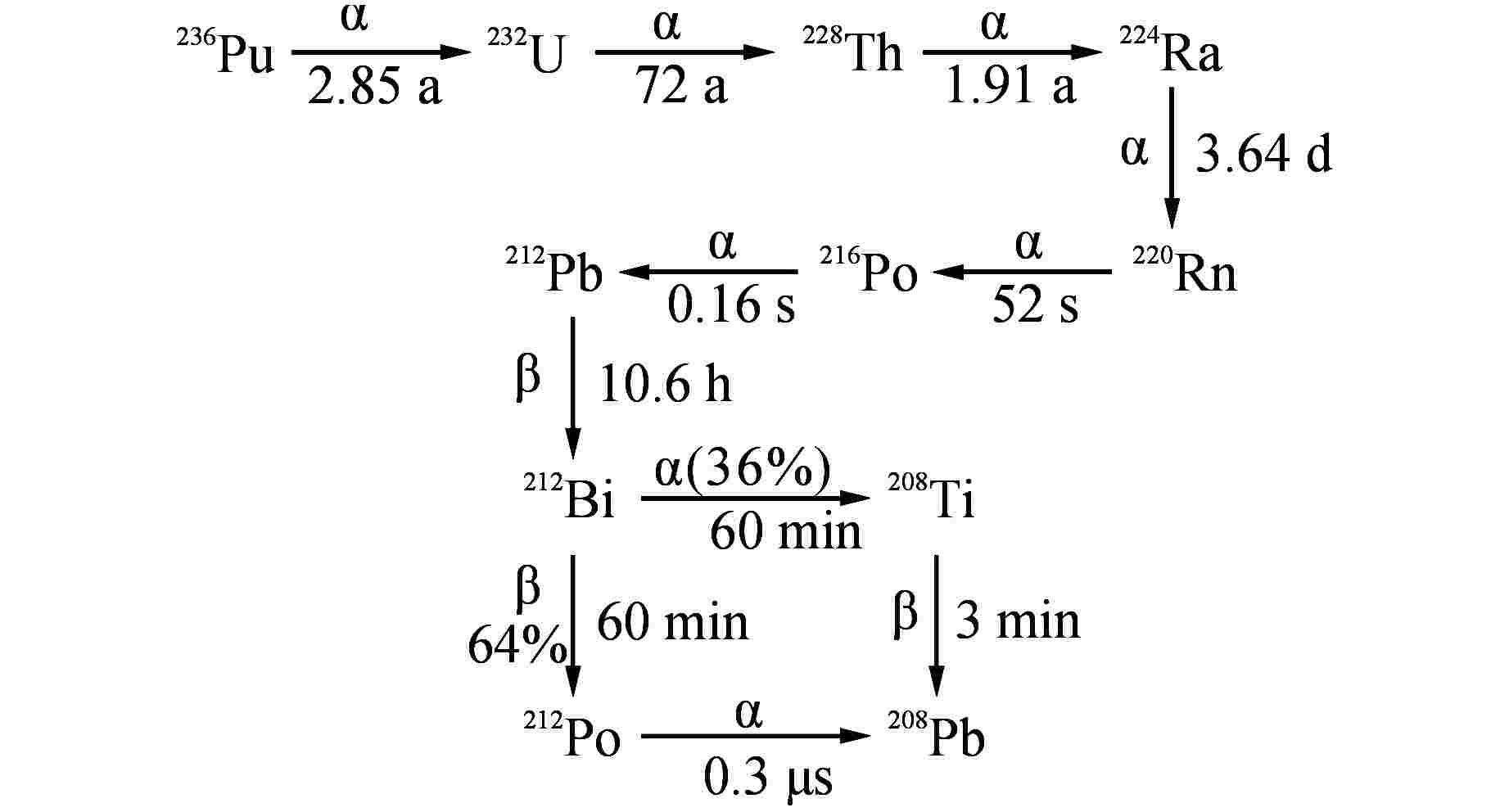 衰变过程 衰变类型 半衰期 γ光子能量/keV 强度/% 212Pb→212Bi β 10.64 h 115.183 0.592 β 10.64 h 238.632 43.3 β 10.64 h 300.087 3.28 212Bi→208Tl α 60.55 min 39.857 1.06 212Bi→212Po β 60.55 min 727.330 6.58 β 60.55 min 785.37 1.102 β 60.55 min 1078.62 0.564 β 60.55 min 1620.50 1.49 208Tl→208Pb β 3.053 min 252.61 0.69 β 3.053 min 277.358 6.31 β 3.053 min 510.77 22.6 β 3.053 min 583.191 84.5 β 3.053 min 763.13 1.81 β 3.053 min 860.564 12.42 β 3.053 min 2614.533 99.16 -