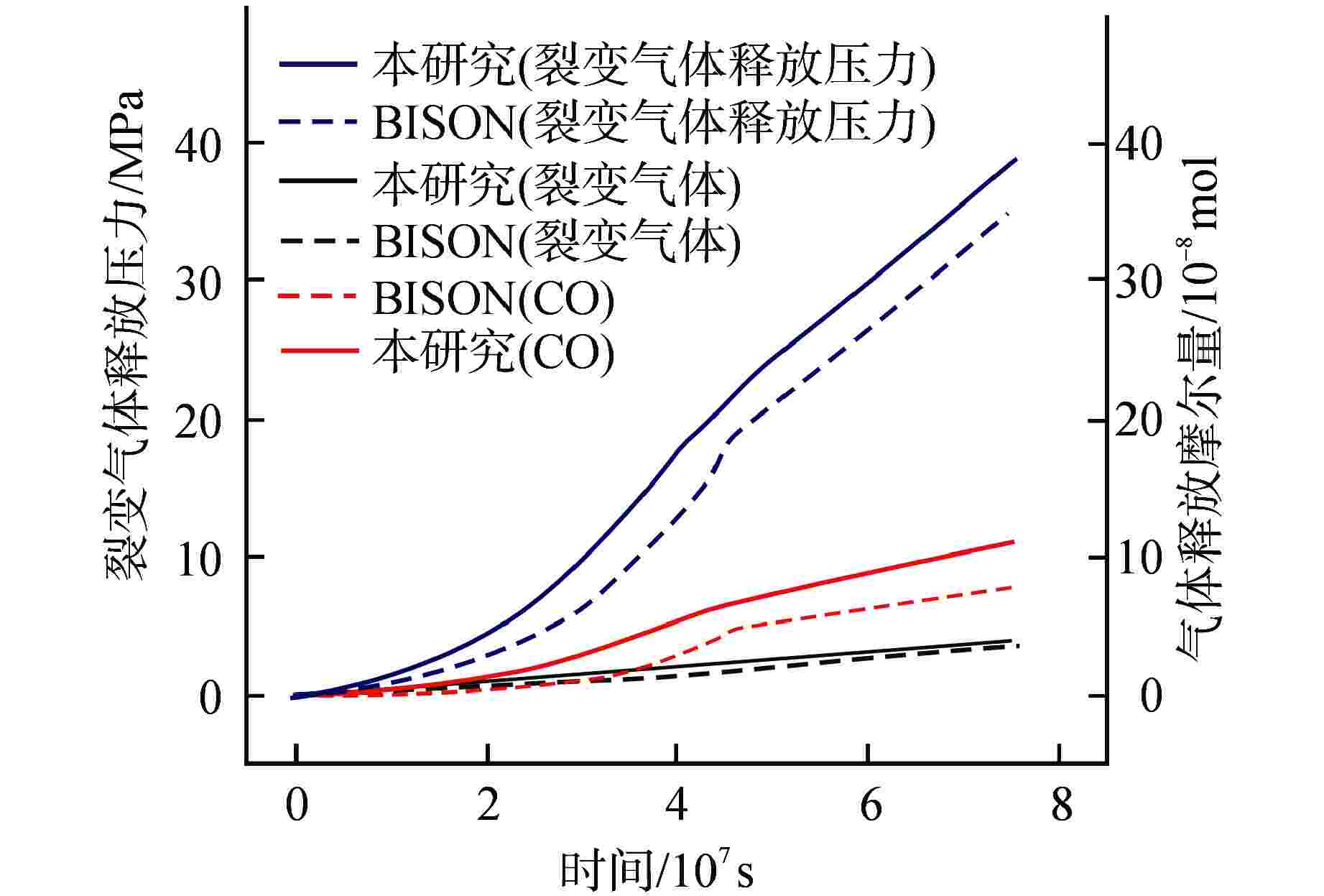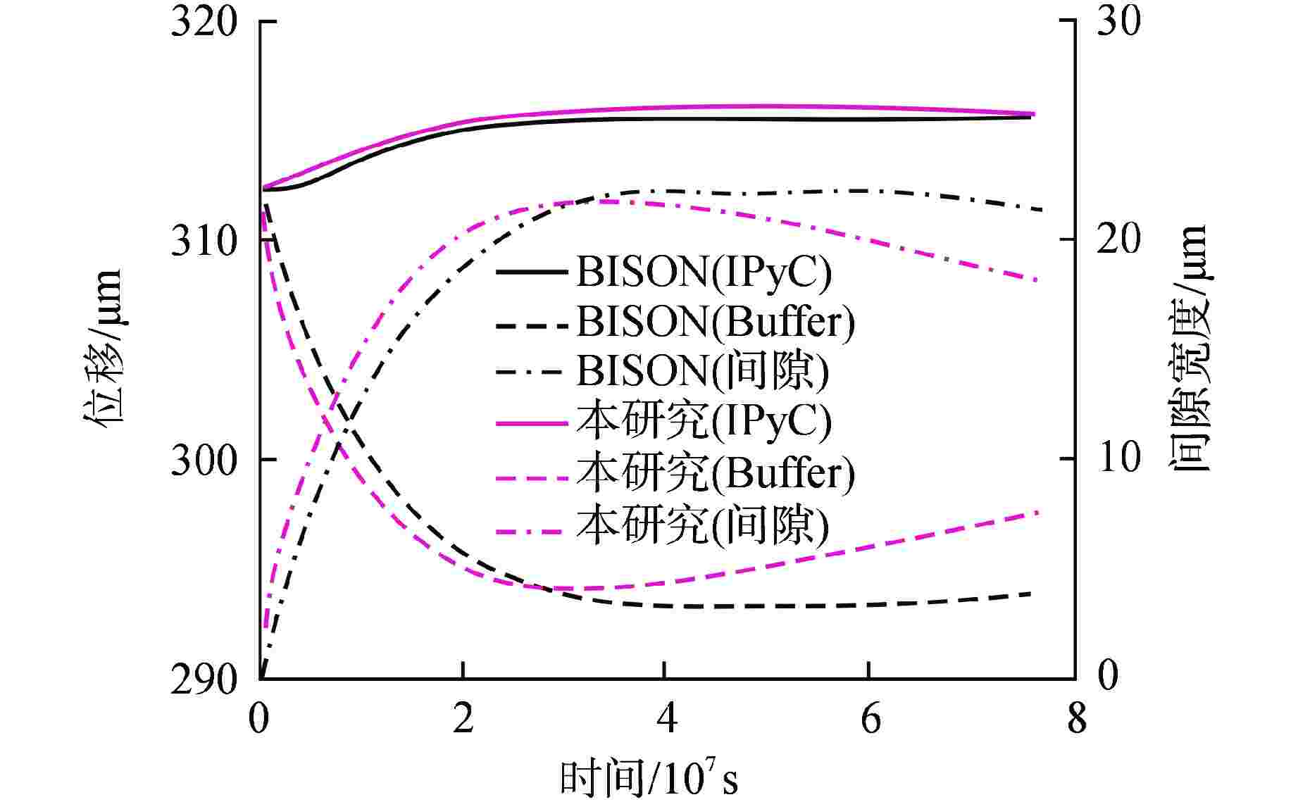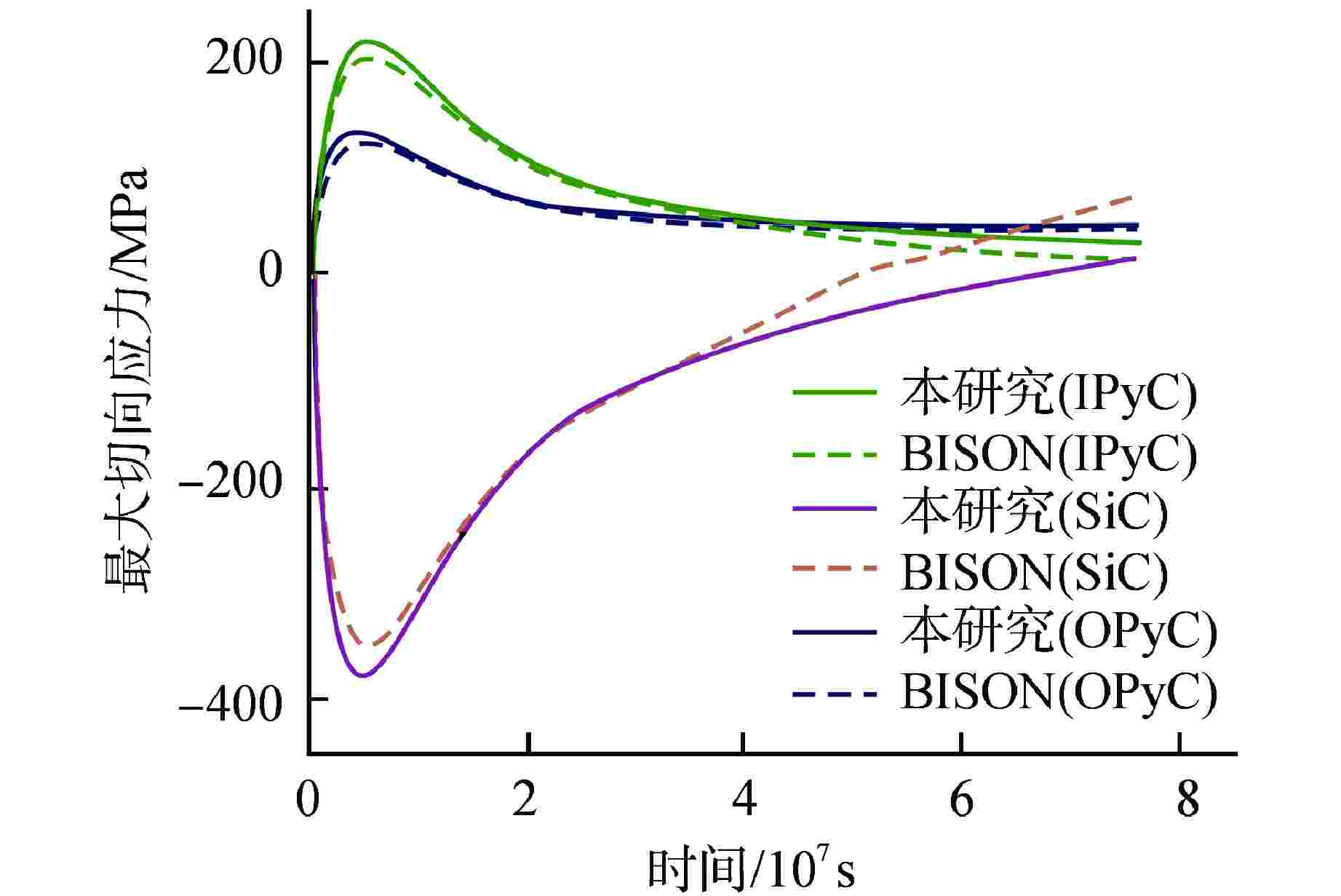 材料 密度/(kg·m-3) 杨氏模量/GPa 泊松比 热膨胀系数/10−6 K−1 UO2 11000 220 0.34 10 Buffer 1000 20 0.23 5.7 PyC 1900 47 0.23 5.7 SiC 3180 340 0.13 4.9 -