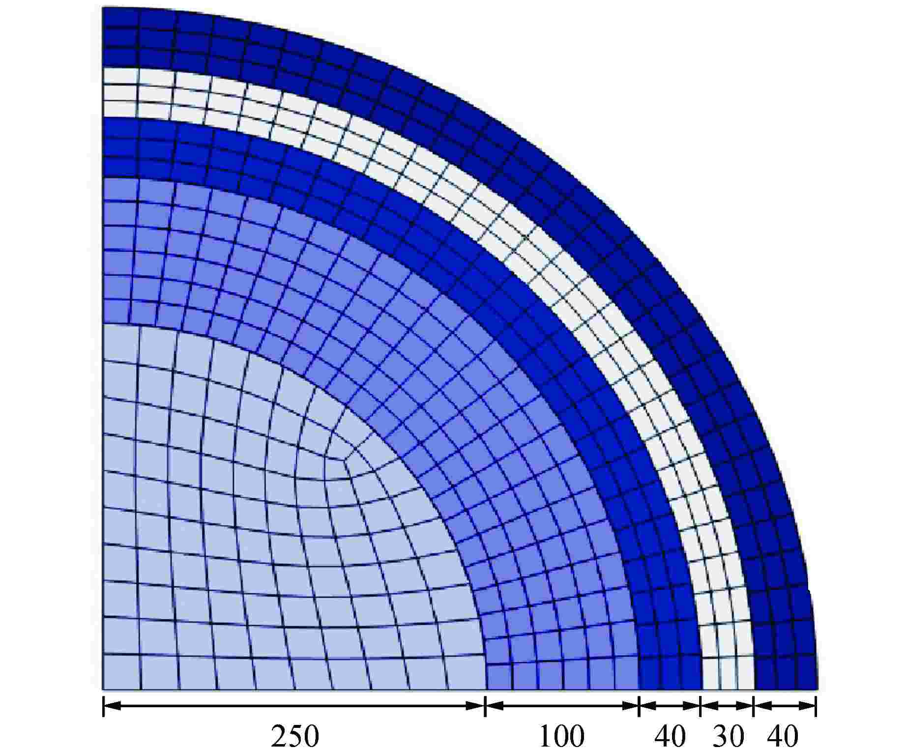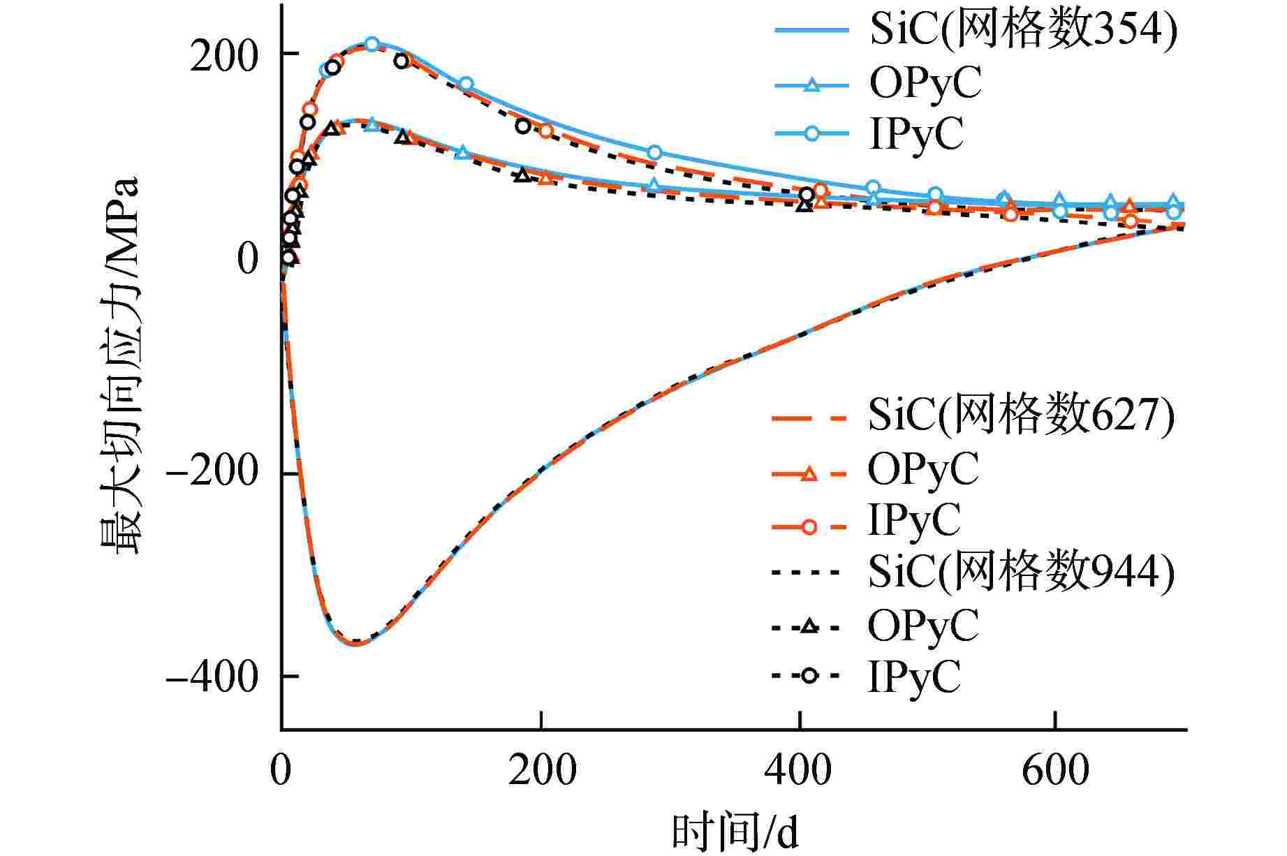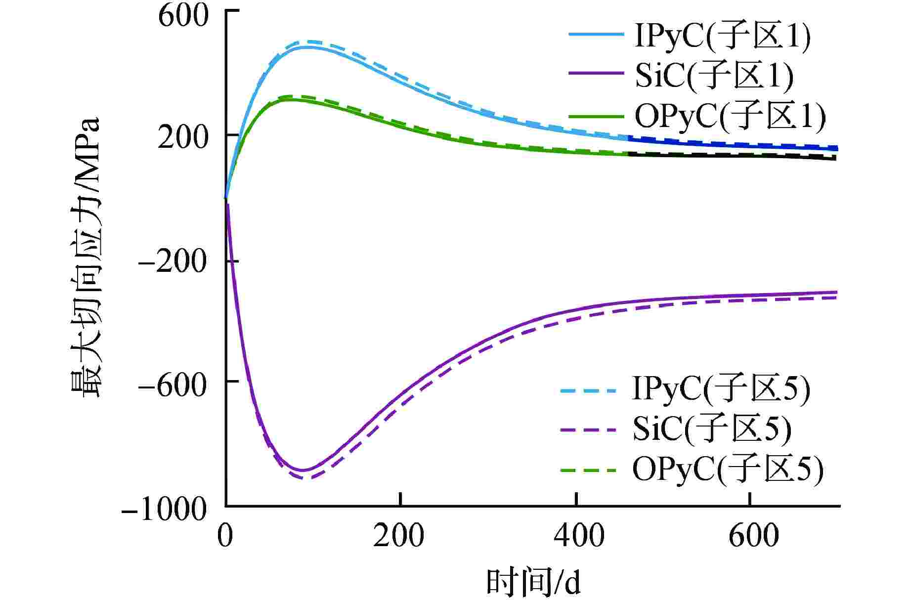材料 密度/(kg·m-3) 杨氏模量/GPa 泊松比 热膨胀系数/10−6 K−1 UO2 11000 220 0.34 10 Buffer 1000 20 0.23 5.7 PyC 1900 47 0.23 5.7 SiC 3180 340 0.13 4.9 -