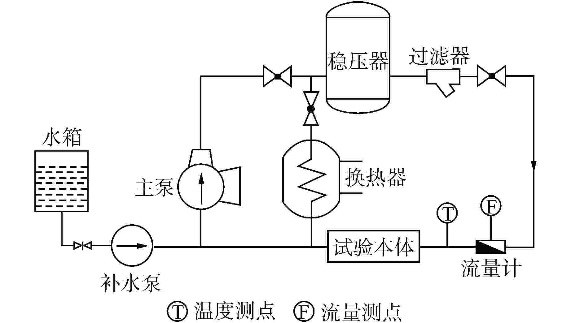 仪表名称 测量参数 测量范围 精度 数量 温度变送器 回路水温度/℃ 0~100 0.5℃ 1 压力变送器 模型入口腔压力/MPa 0~2.5 0.1% 1 涡轮流量计 漏流流量/(m3·h−1) 1~10 0.5% 1 差压变送器 漏流差压/kPa 0~500 0.1% 1 0~2000 0.1% 1 -