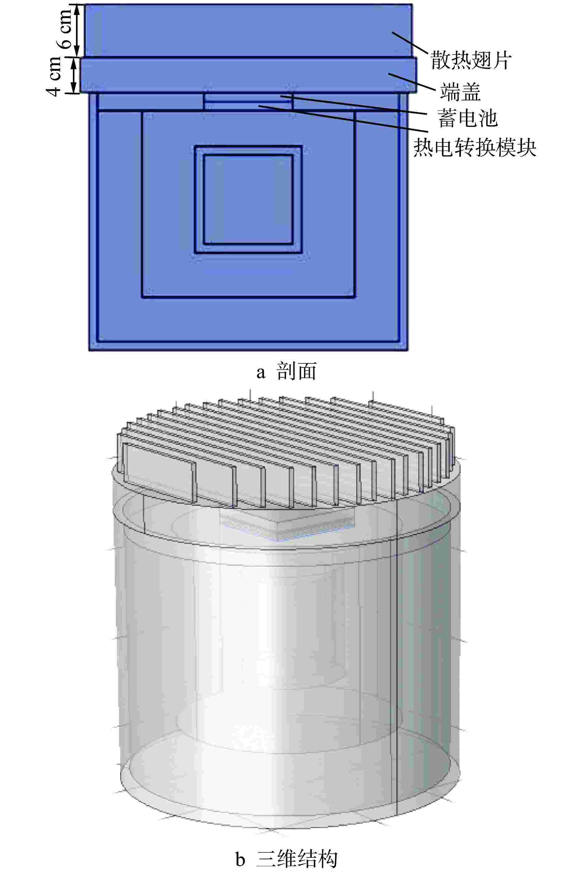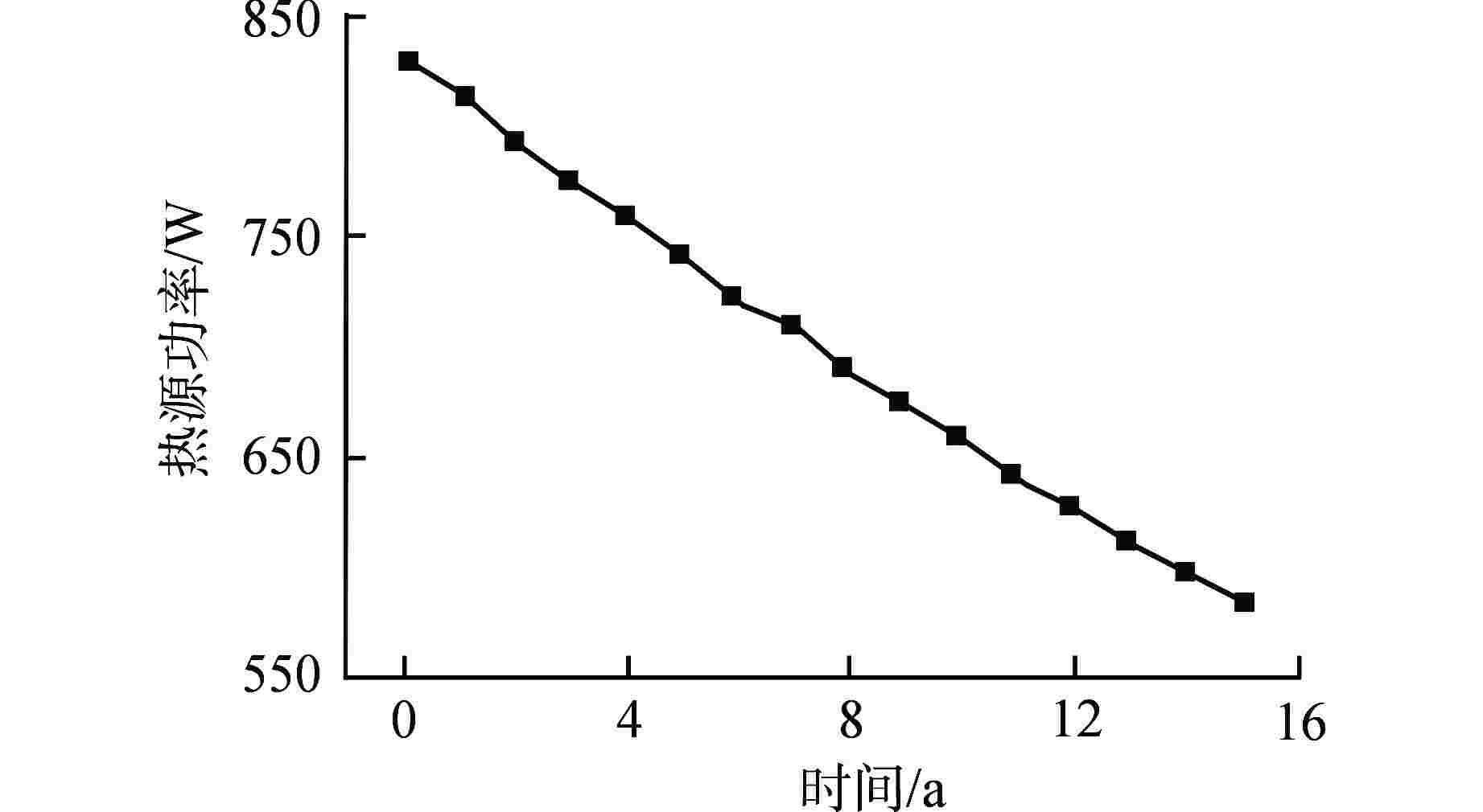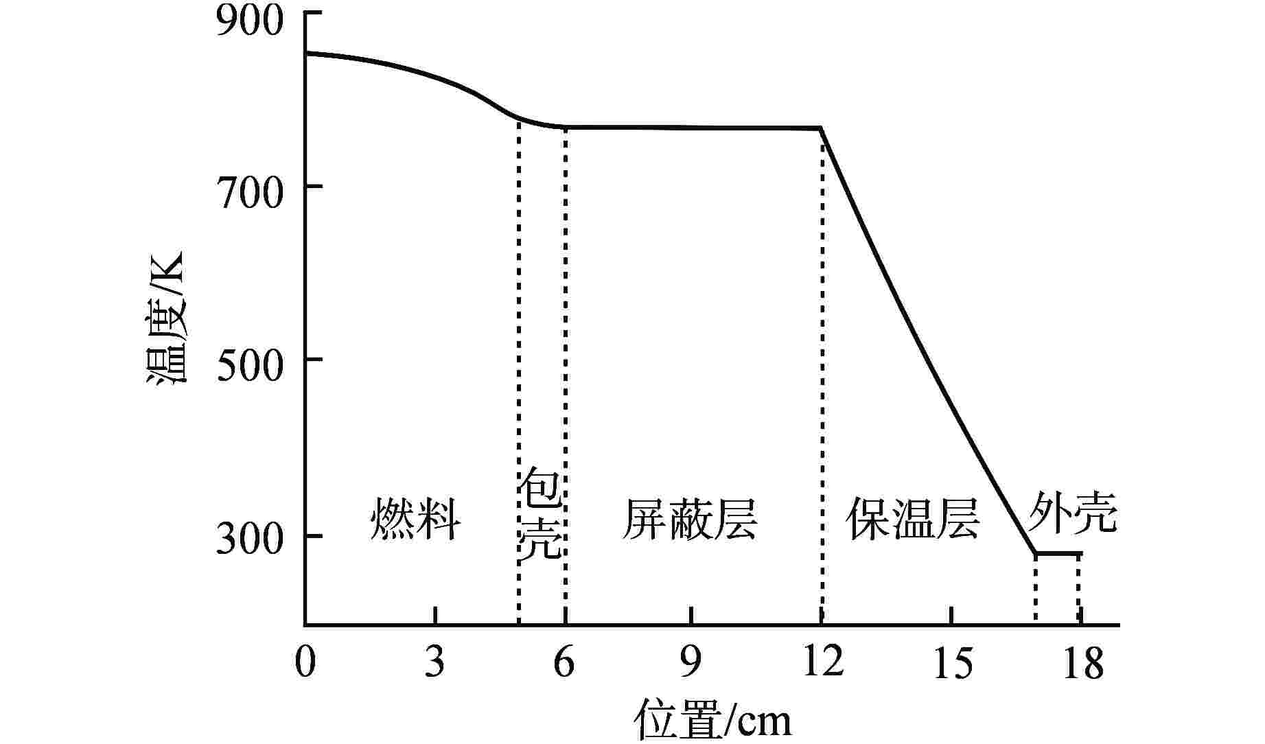 摘要: 本研究设计了90Sr同位素温差电源物理模型,主要包括热源、热电转换模块以及散热模块。在此基础上利用COMSOL软件对同位素电源进行有限元分析,得到了同位素电源的温度分布、电压以及功率输出特性。同时研究了热源功率衰减下的同位素电源输出特性,最后对热电材料的高度和横截面积进行了敏感性分析。研究结果表明,同位素电源最大输出功率为63.6 W,热电转换效率为7.6%,在15 a内电源最大输出功率由63.6 W衰减至24.4 W。敏感性分析发现电源内阻和最大输出功率随热电材料高度的增大而增大,随横截面积的减小而增大,研究结果对同位素电源在太空、深海等恶劣环境中的应用具有重要意义。Abstract: In this paper, a physical model of 90Sr radioisotope thermoelectric generator was designed, including the heat source, thermoelectric conversion module and heat dissipation module. On this basis, the finite element analysis of generator was carried out by using the COMSOL, and the temperature distribution, voltage and power output characteristics of generator were obtained. Meanwhile, the output characteristics of generator under the attenuation of the heat source power were studied, and finally the sensitivity analysis of the height and cross-sectional area of the thermoelectric material was carried out. The research results show that the maximum output power of generator is 63.6 W, the thermoelectric conversion efficiency is 7.6%, and the maximum output power of generator is reduced from 63.6 W to 24.4 W within 15 years. Sensitivity analysis found that the internal resistance and maximum output power of generator increase with the increase of the height of the thermoelectric material, and decrease with the increase of the cross-sectional area. The research results are of great significance to the application of radioisotope thermoelectric generator in harsh environments such as space and deep sea.