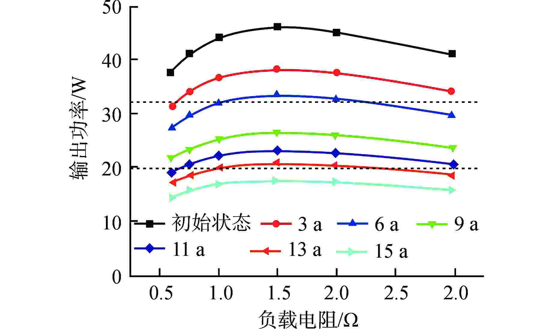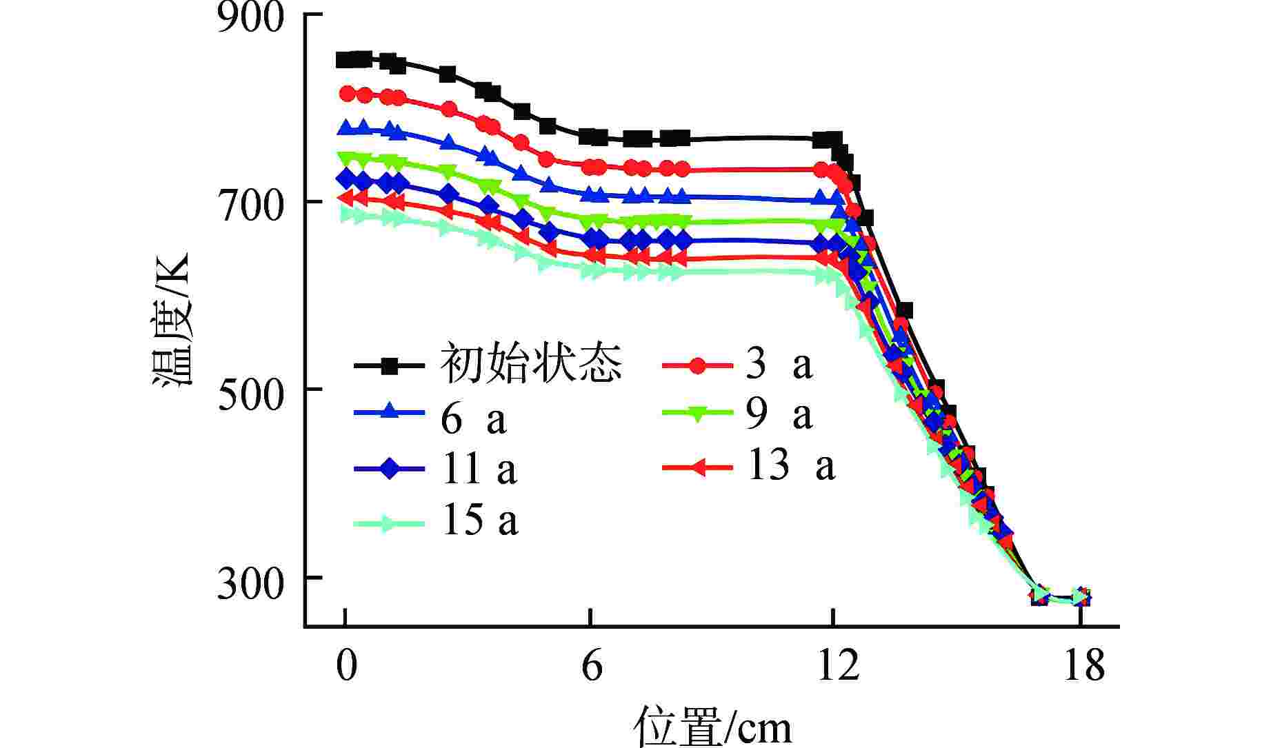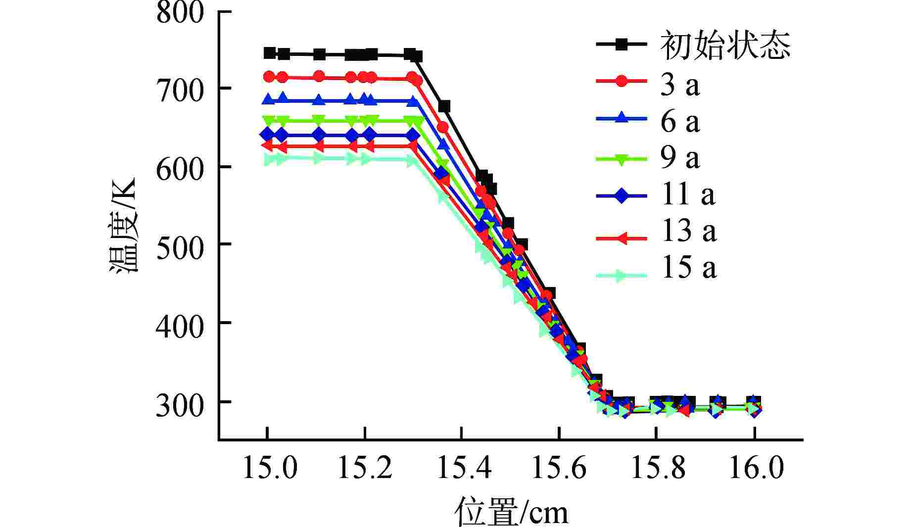 摘要: 本研究设计了90Sr同位素温差电源物理模型,主要包括热源、热电转换模块以及散热模块。在此基础上利用COMSOL软件对同位素电源进行有限元分析,得到了同位素电源的温度分布、电压以及功率输出特性。同时研究了热源功率衰减下的同位素电源输出特性,最后对热电材料的高度和横截面积进行了敏感性分析。研究结果表明,同位素电源最大输出功率为63.6 W,热电转换效率为7.6%,在15 a内电源最大输出功率由63.6 W衰减至24.4 W。敏感性分析发现电源内阻和最大输出功率随热电材料高度的增大而增大,随横截面积的减小而增大,研究结果对同位素电源在太空、深海等恶劣环境中的应用具有重要意义。Abstract: In this paper, a physical model of 90Sr radioisotope thermoelectric generator was designed, including the heat source, thermoelectric conversion module and heat dissipation module. On this basis, the finite element analysis of generator was carried out by using the COMSOL, and the temperature distribution, voltage and power output characteristics of generator were obtained. Meanwhile, the output characteristics of generator under the attenuation of the heat source power were studied, and finally the sensitivity analysis of the height and cross-sectional area of the thermoelectric material was carried out. The research results show that the maximum output power of generator is 63.6 W, the thermoelectric conversion efficiency is 7.6%, and the maximum output power of generator is reduced from 63.6 W to 24.4 W within 15 years. Sensitivity analysis found that the internal resistance and maximum output power of generator increase with the increase of the height of the thermoelectric material, and decrease with the increase of the cross-sectional area. The research results are of great significance to the application of radioisotope thermoelectric generator in harsh environments such as space and deep sea.