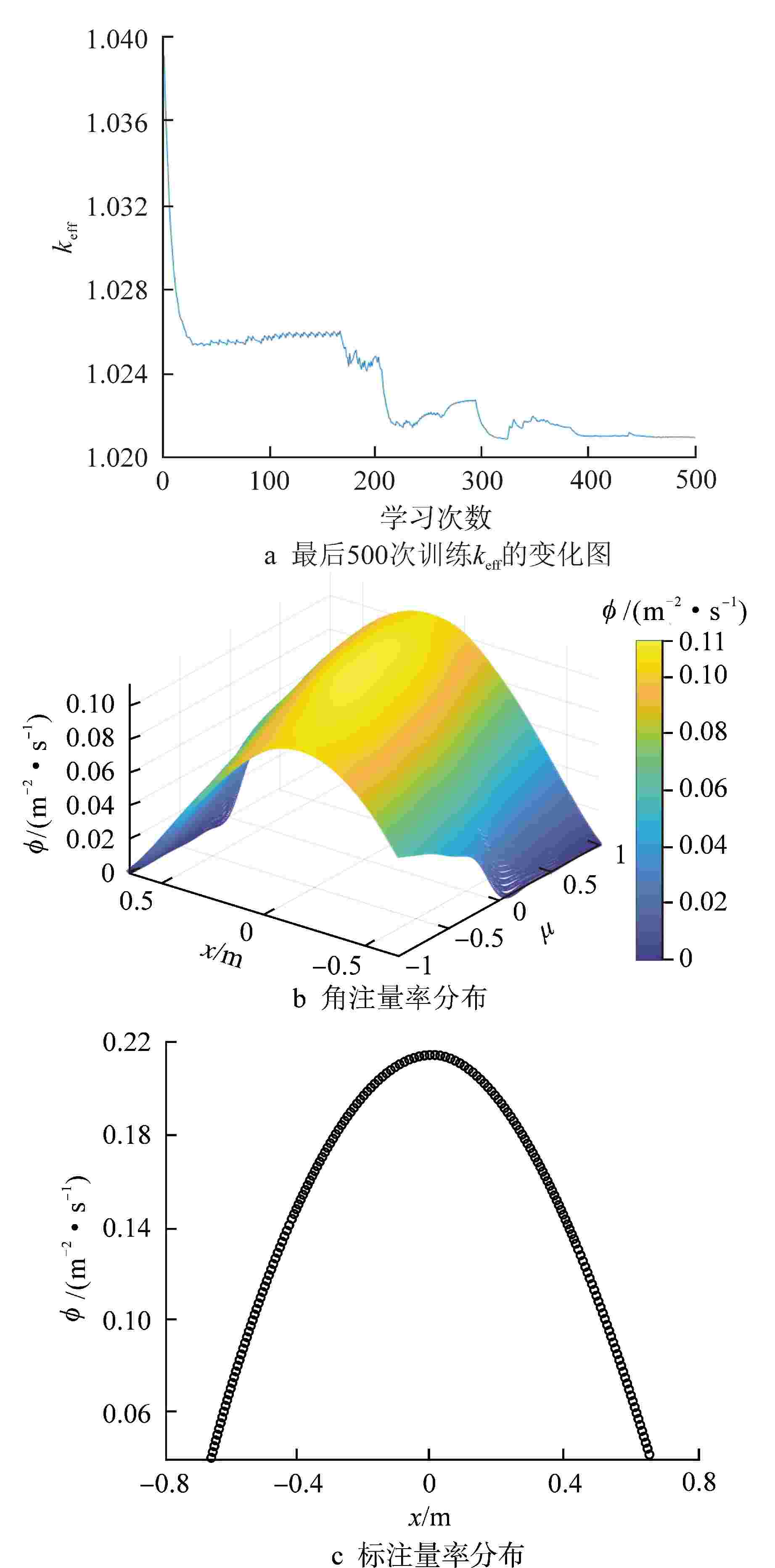 机器学习获得的keff_s 快群DLoss的MSE 热群DLoss的MSE CORCA-3D PARCS DNTR keff计算值 相对偏差 keff计算值 相对偏差 keff计算值 相对偏差 1.0660 2.0985×10−4 4.5409×10−5 1.0690 0.0028 1.0710 0.0047 1.0712 0.0049 MSE—均方误差 表 6 一维平板几何单群输运问题特征值计算结果