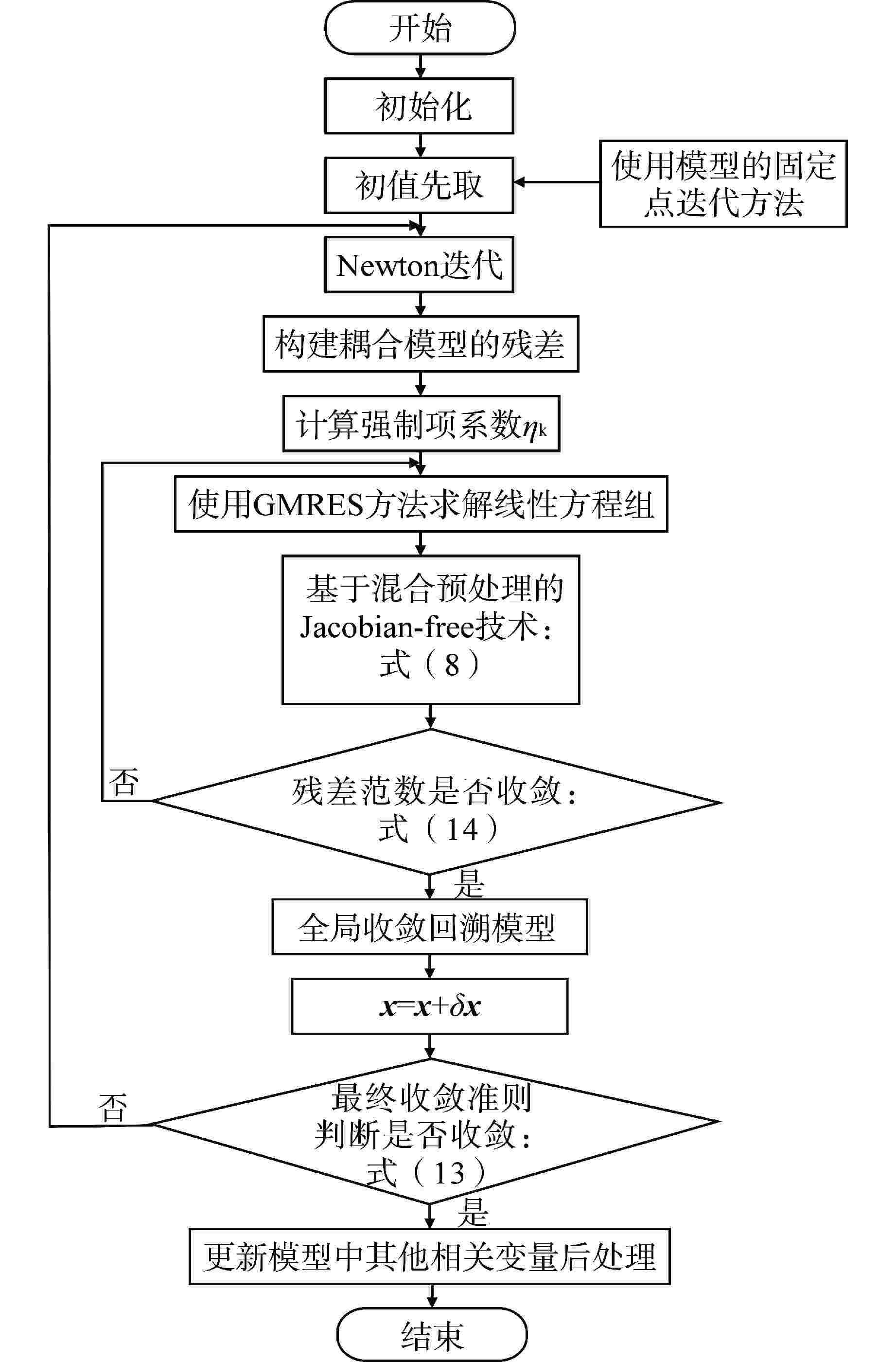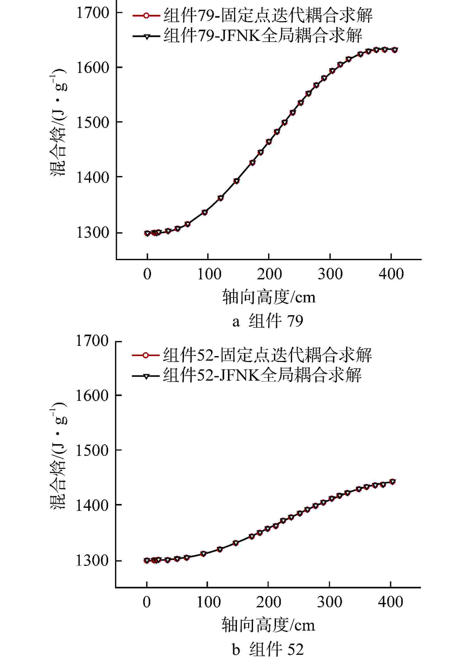 φ 固定点迭代方法 JFNK全局求解方法 固定点迭代步 时间/s Newton迭代步 时间/s 0.50 无法计算 5 35.9 0.60 454 194.5 5 39.7 0.70 994 422.4 5 39.2 0.80 2376 1172.8 11 54.3 -