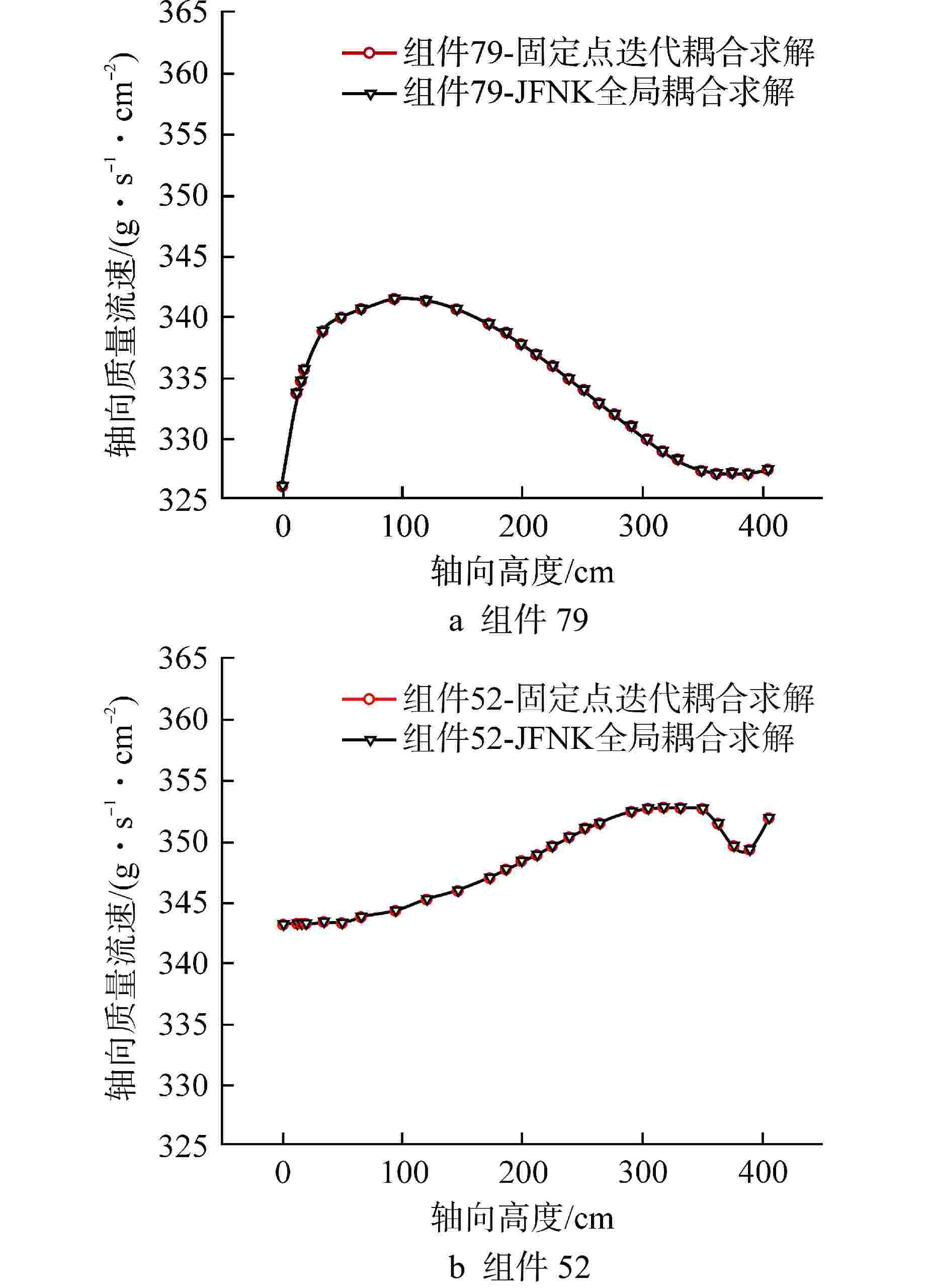 收敛精度 固定点迭代方法 JFNK全局求解方法 加速比 时间/s 迭代次数 时间/s Newton迭代次数 1×10−3 45.0 95 16.97 4 2.65 1×10−4 89.8 213 24.92 4 3.60 1×10−5 153.4 336 34.91 5 4.39 1×10−6 194.5 454 39.10 5 4.97 表 3 不同松弛因子下的2种方法的迭代次数和计算时间