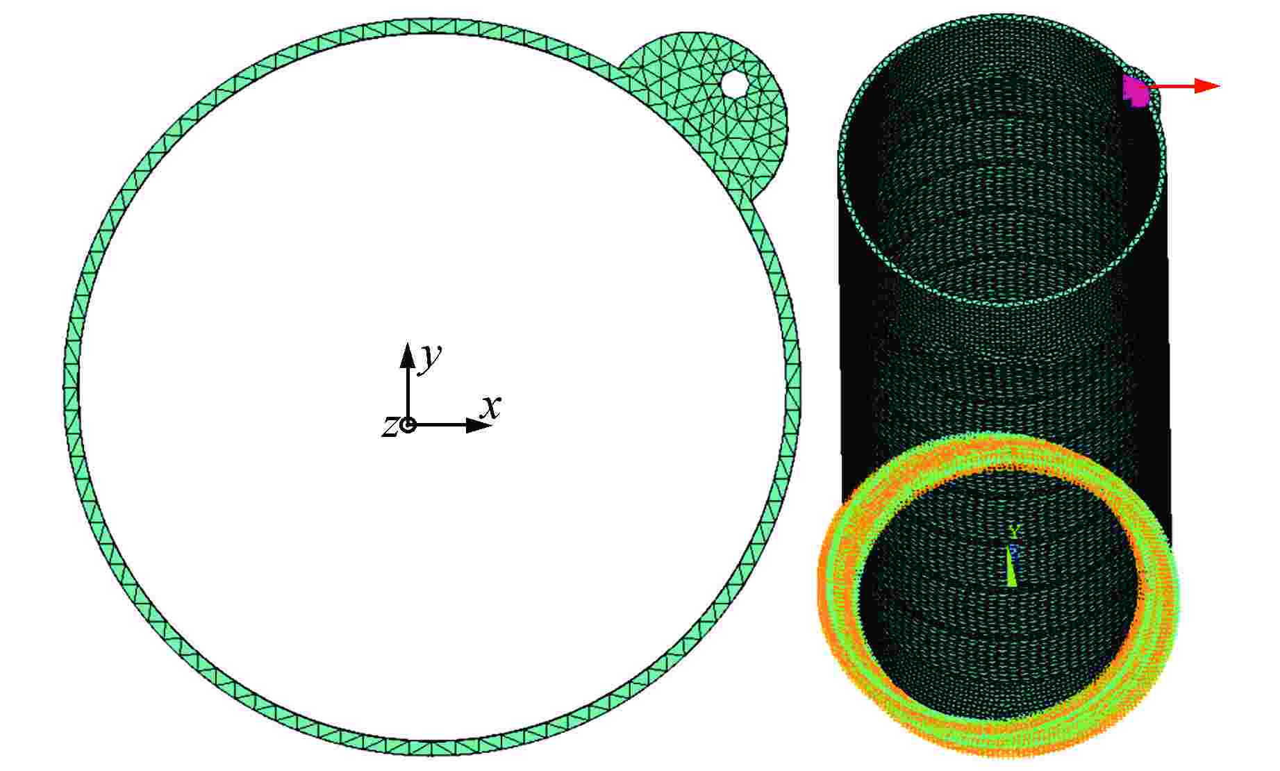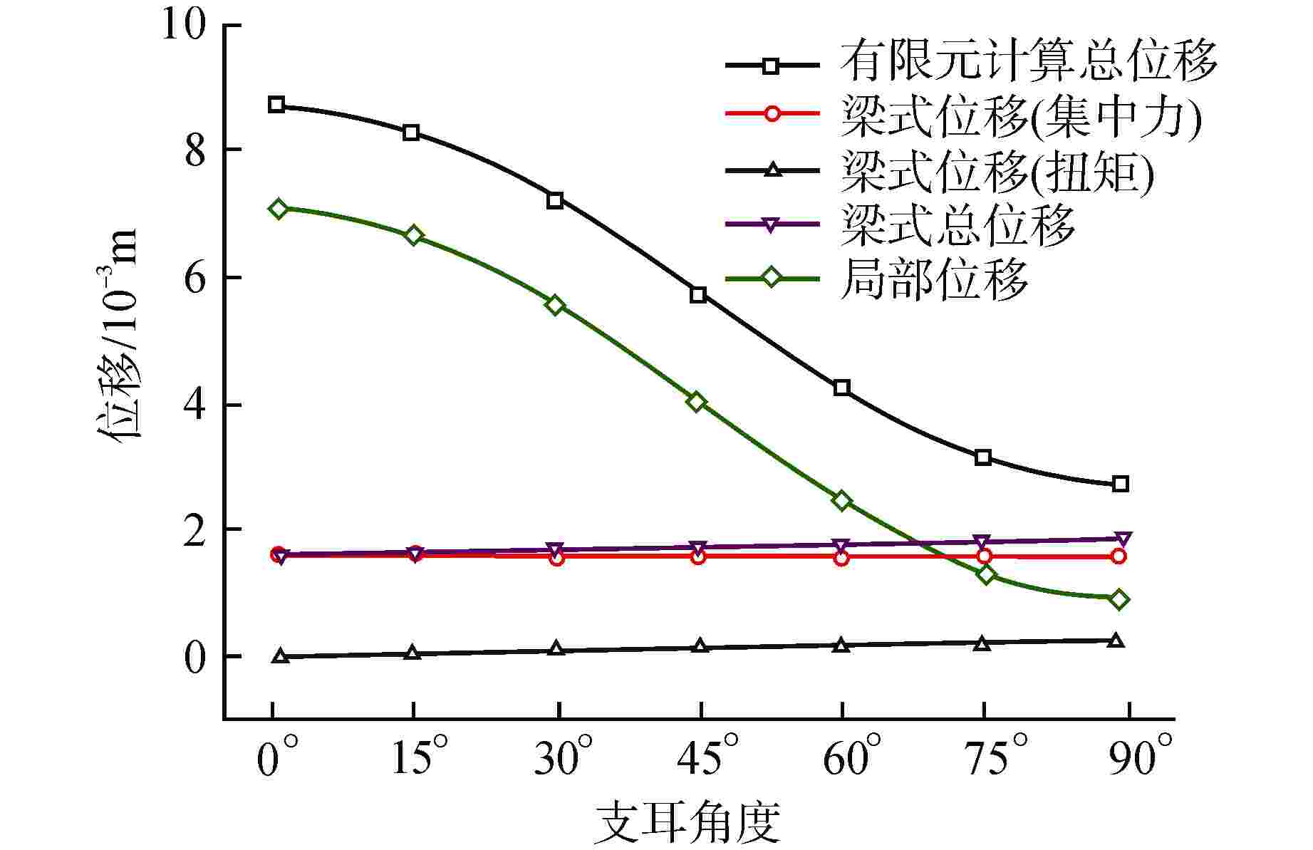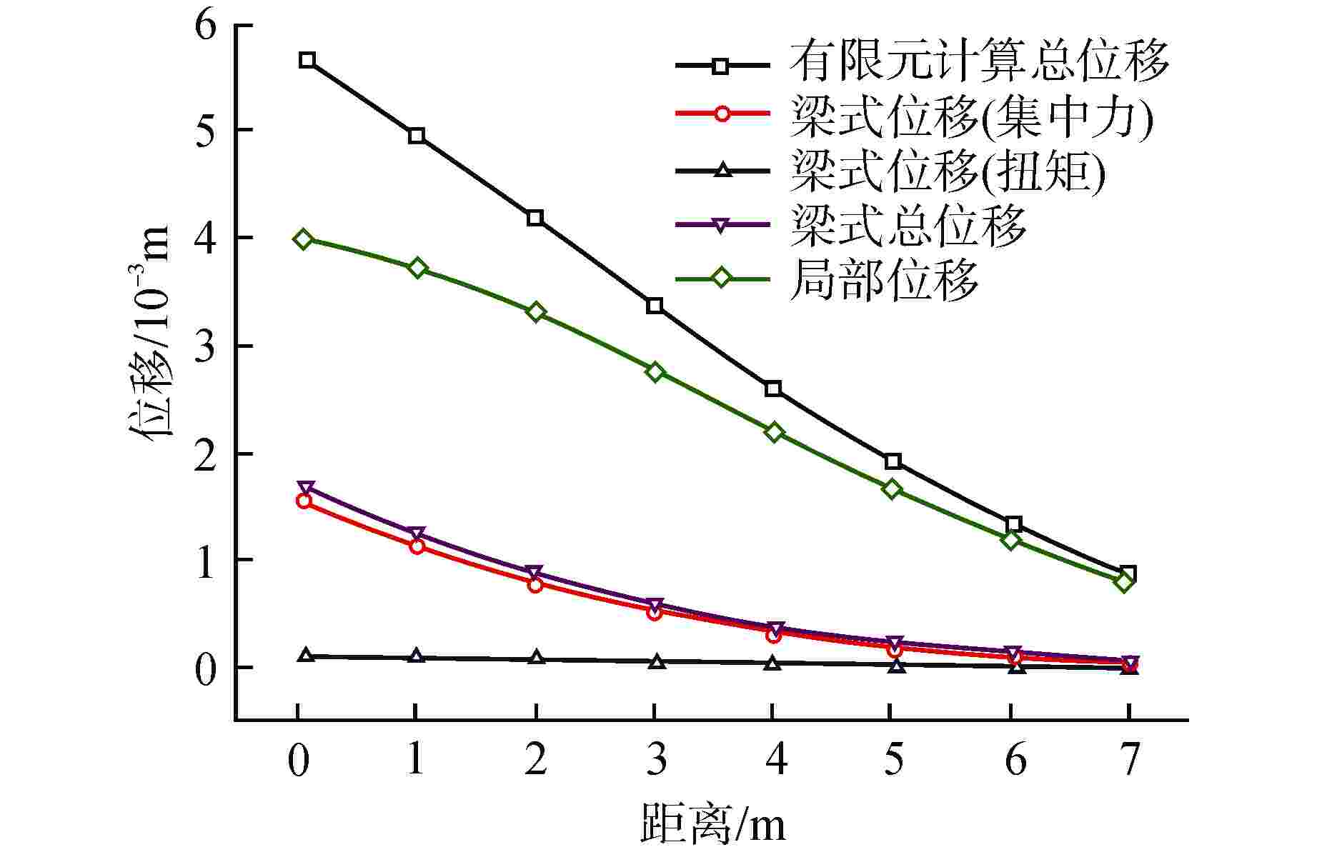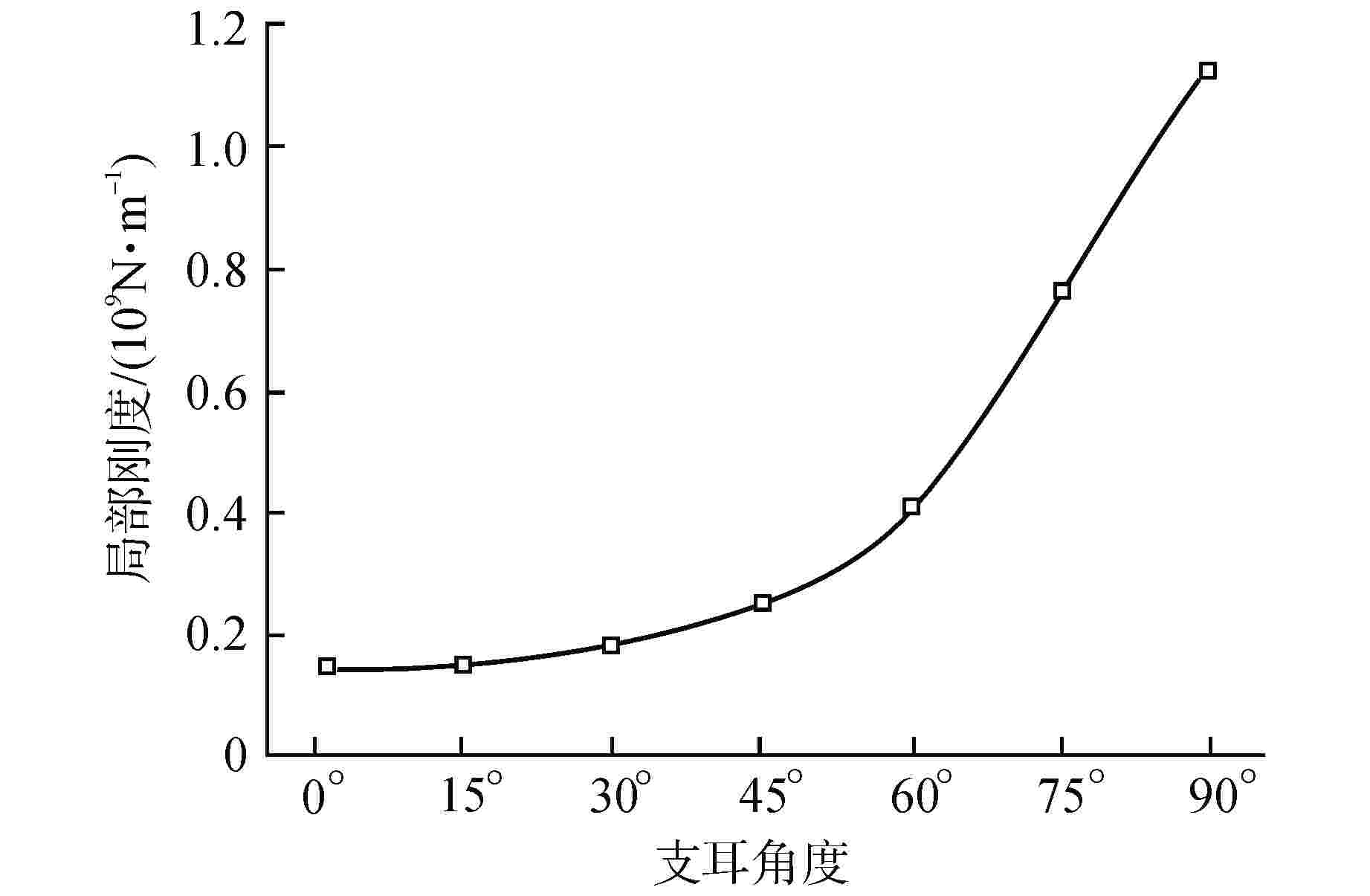 参数 数值 有限元计算总位移/mm 5.716 梁式位移(集中力)/mm 1.592 梁式位移(扭矩)/mm 0.1236 力载荷/N 106 局部刚度/(N·m−1) 2.5×108 表 2 不同单元尺寸下的局部刚度