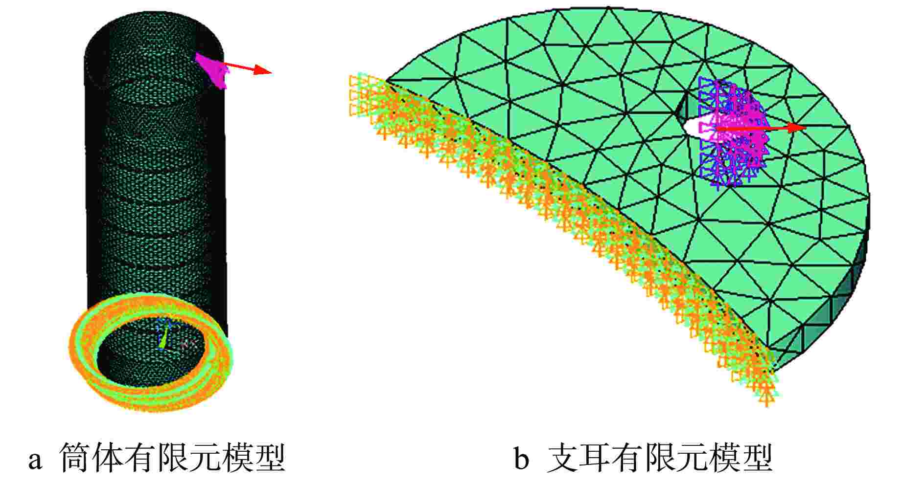 摘要: 核电厂反应堆系统中典型筒体支耳连接结构的局部刚度准确计算具有重要的工程意义。本文建立了筒体支耳连接结构的三维有限元模型,分析得到了有限元计算总位移,并给出由集中力和扭矩分别引起的梁式位移计算方法,从而求解梁式总位移,进而得到筒体支耳连接结构的局部刚度。通过建立筒体支耳连接结构的分解模型进行局部刚度计算,探讨了与整体模型局部刚度计算结果的差异。采用整体模型计算方法,选取不同的边界面进行局部刚度计算,得到了相应的局部刚度变化规律,同时通过调整支耳角度研究其对局部刚度特性的影响。本文研究可为筒体支耳连接结构工程设计提供参考。Abstract: It is of great engineering significance to accurately calculate the local stiffness of typical cylinder and lug connection structures in nuclear power plant reactor system. In this paper, a three-dimensional finite element model of cylinder and lug connection structure is established. The total displacement can be acquired by finite element calculation, and the calculation method is respectively introduced to solve the beam displacement due to concentrated force and torque, which will be used to calculate the final local stiffness of cylinder and lug connection structure. The separate model of cylinder and lug connection structure is established, which is also used to calculate the final local stiffness, and the local stiffness difference is discussed by comparing with the calculation results of whole model. The whole model calculation method is considered to calculate the local stiffness by selecting different boundary planes, and the variation law of local stiffness is obtained. At the same time, the angle of lug is adjusted to calculate and study the influence on local stiffness characteristics. This paper can provide reference for engineering design of cylinder and lug connection structure.