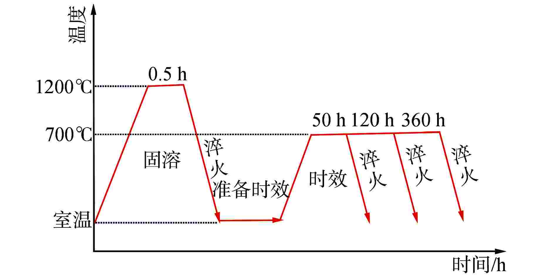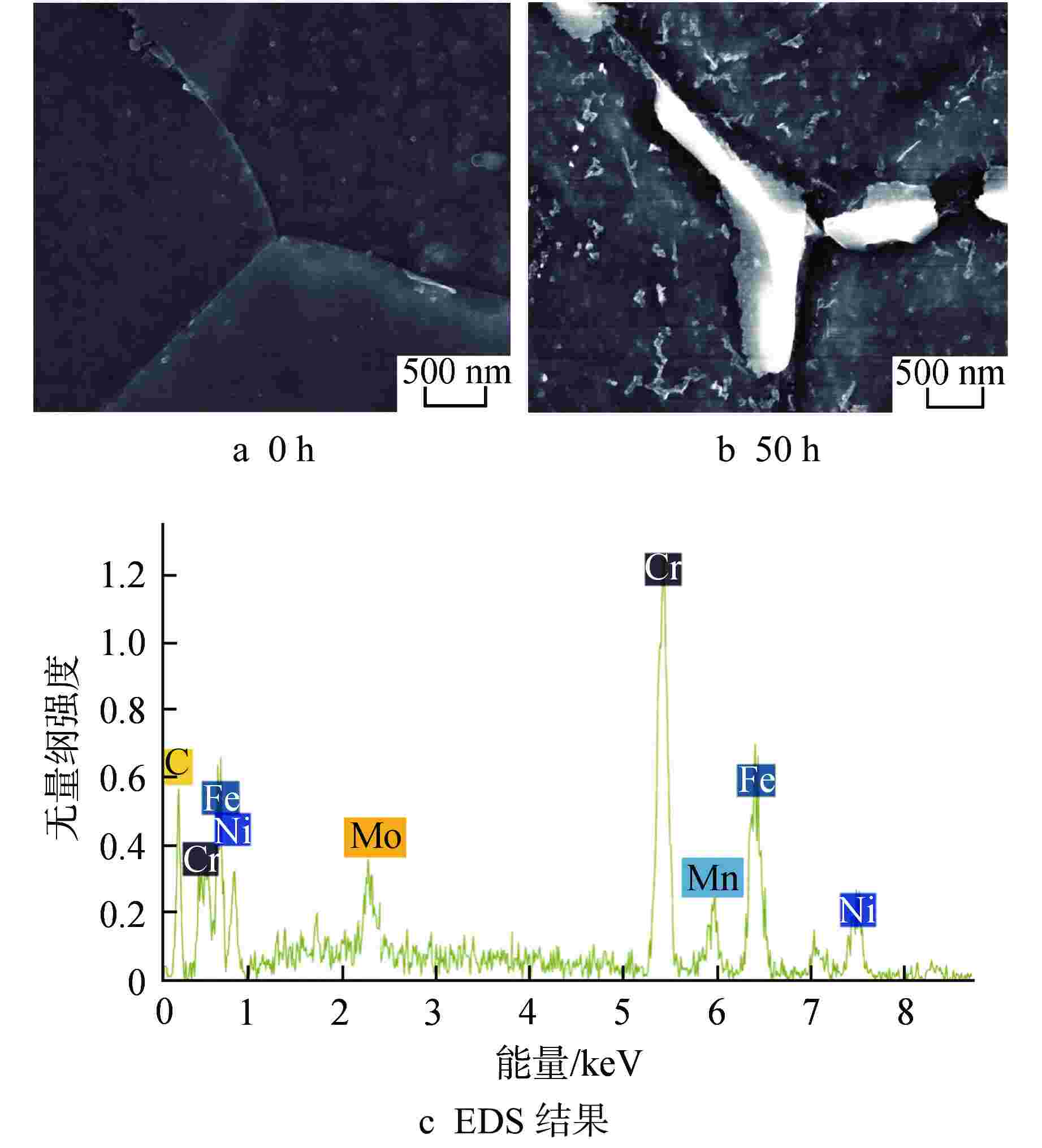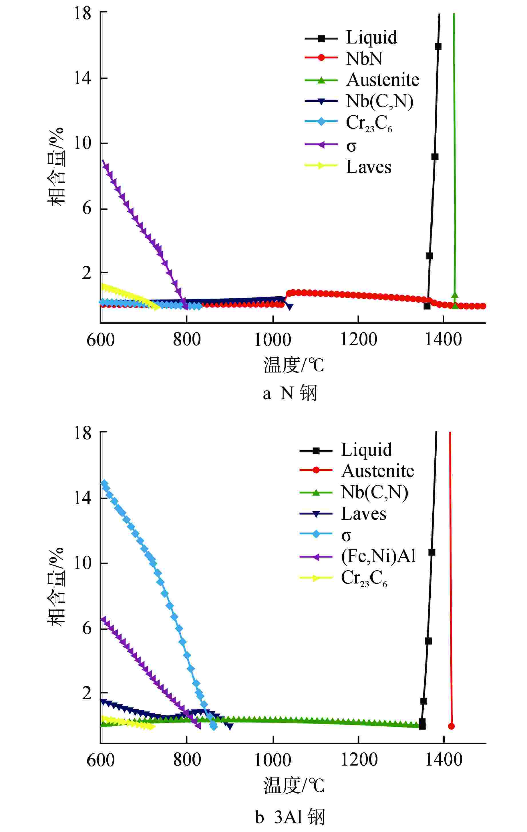 实验钢 元素质量分数/% Cr Ni Nb Al Si C Mo N Ti Fe N钢 19.59 24.20 0.77 0.02 0.4 0.03 1.69 0.1 0.04 Bal. 3Al钢 17.31 28.51 0.58 3.11 0.1 0.04 2.28 0 0.02 Bal. Bal.—Fe元素占比余量 表 2 时效360 h后N钢晶内析出相的EDS结果