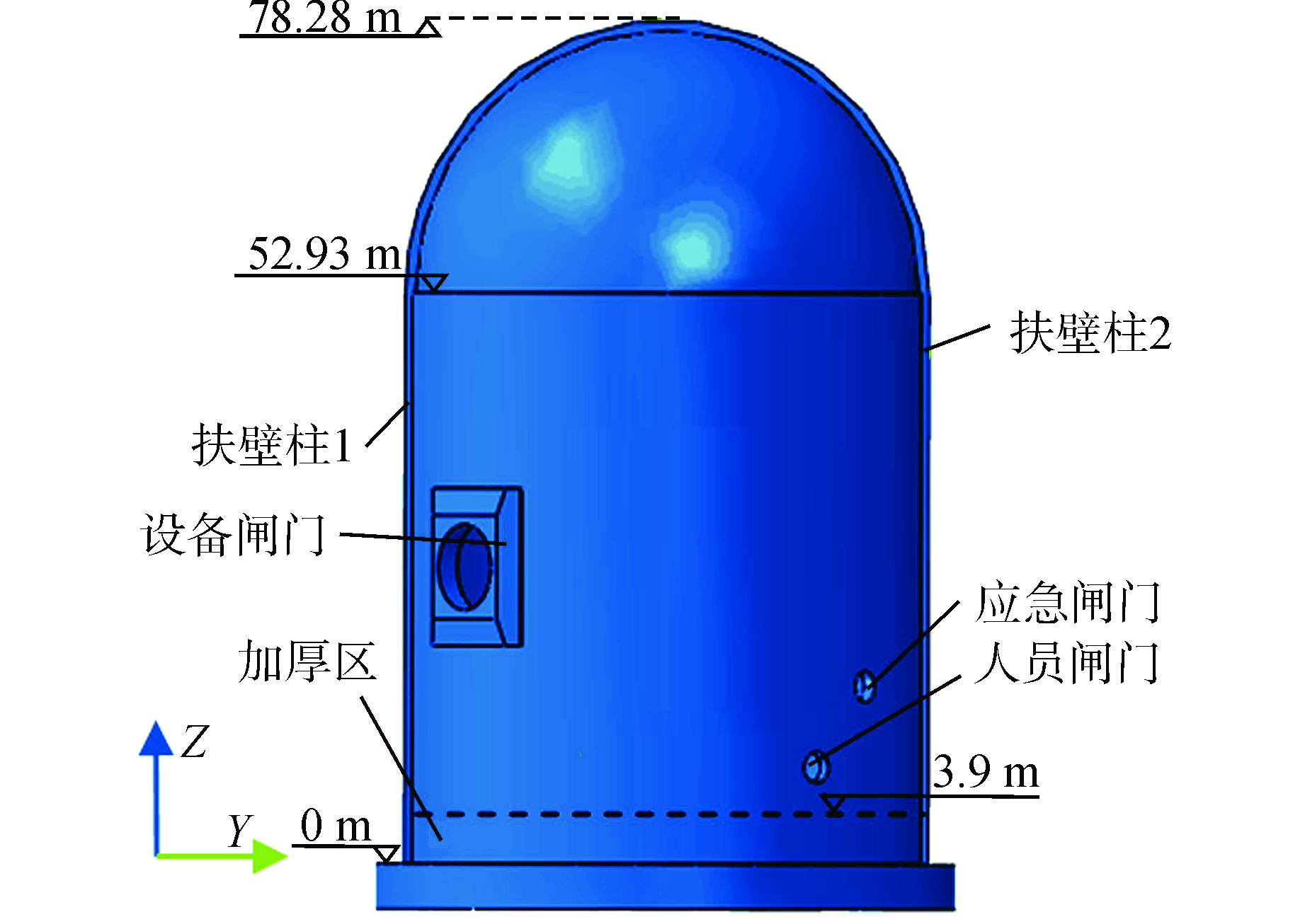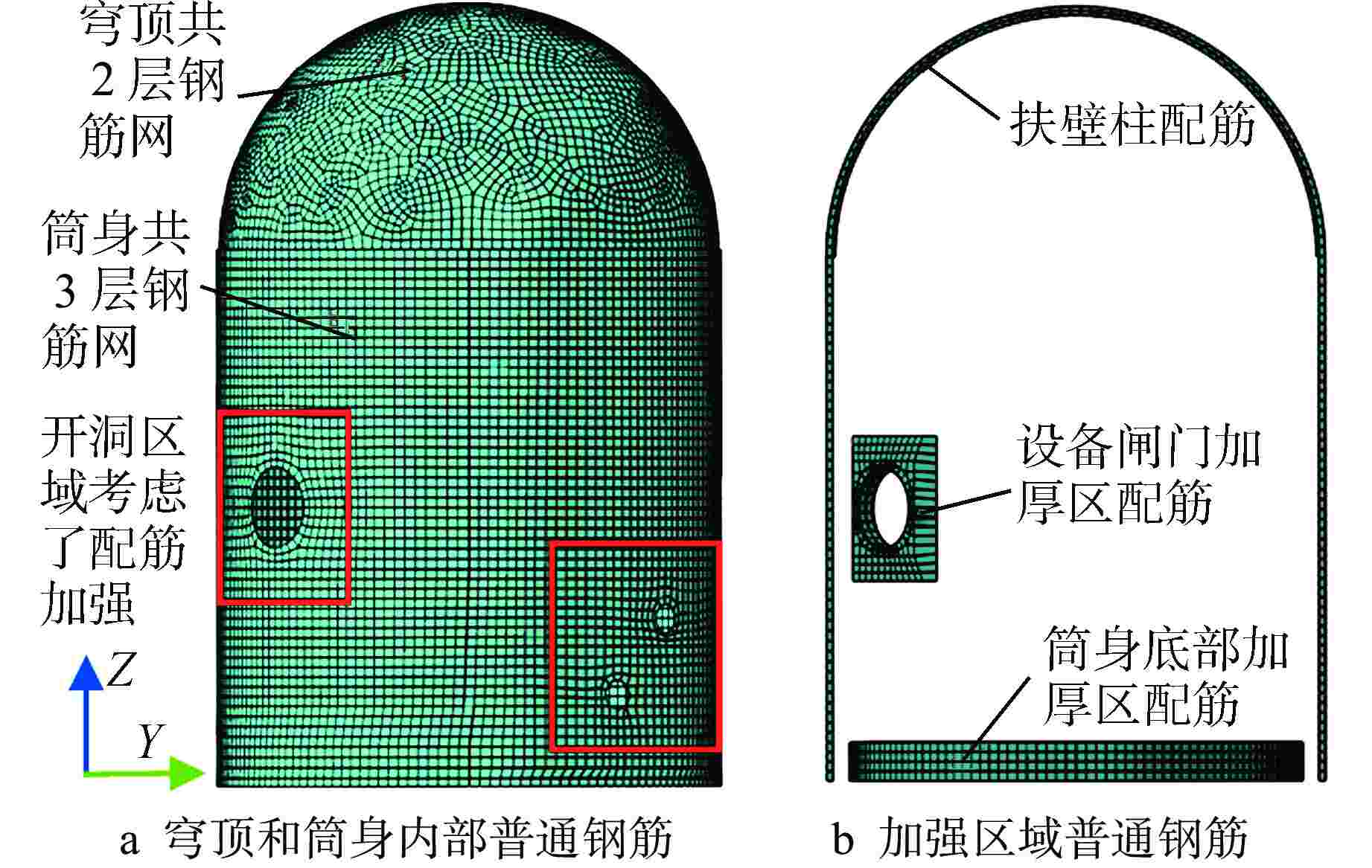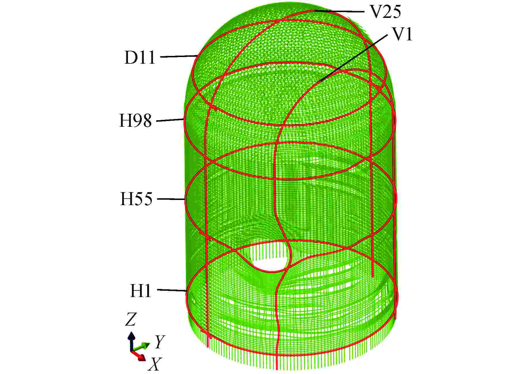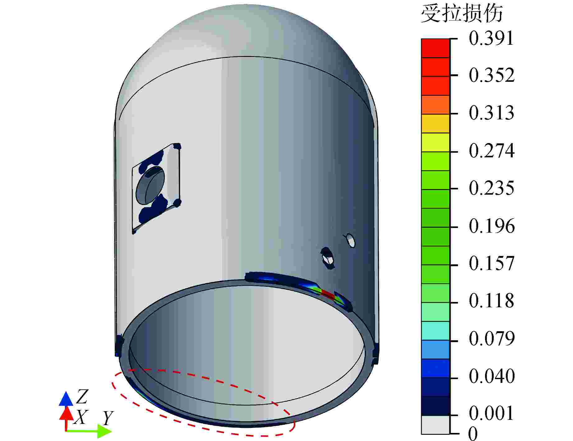 膨胀角 偏心率 fb0/fc0 k 粘性系数 30° 0.1 1.16 0.667 0.001 fb0—混凝土双轴极限抗压强度;fc0—混凝土单轴极限抗压强度;k—拉伸子午面上与压缩子午面上的第二应力不变量之比[6] 表 2 安全壳混凝土损伤参数取值