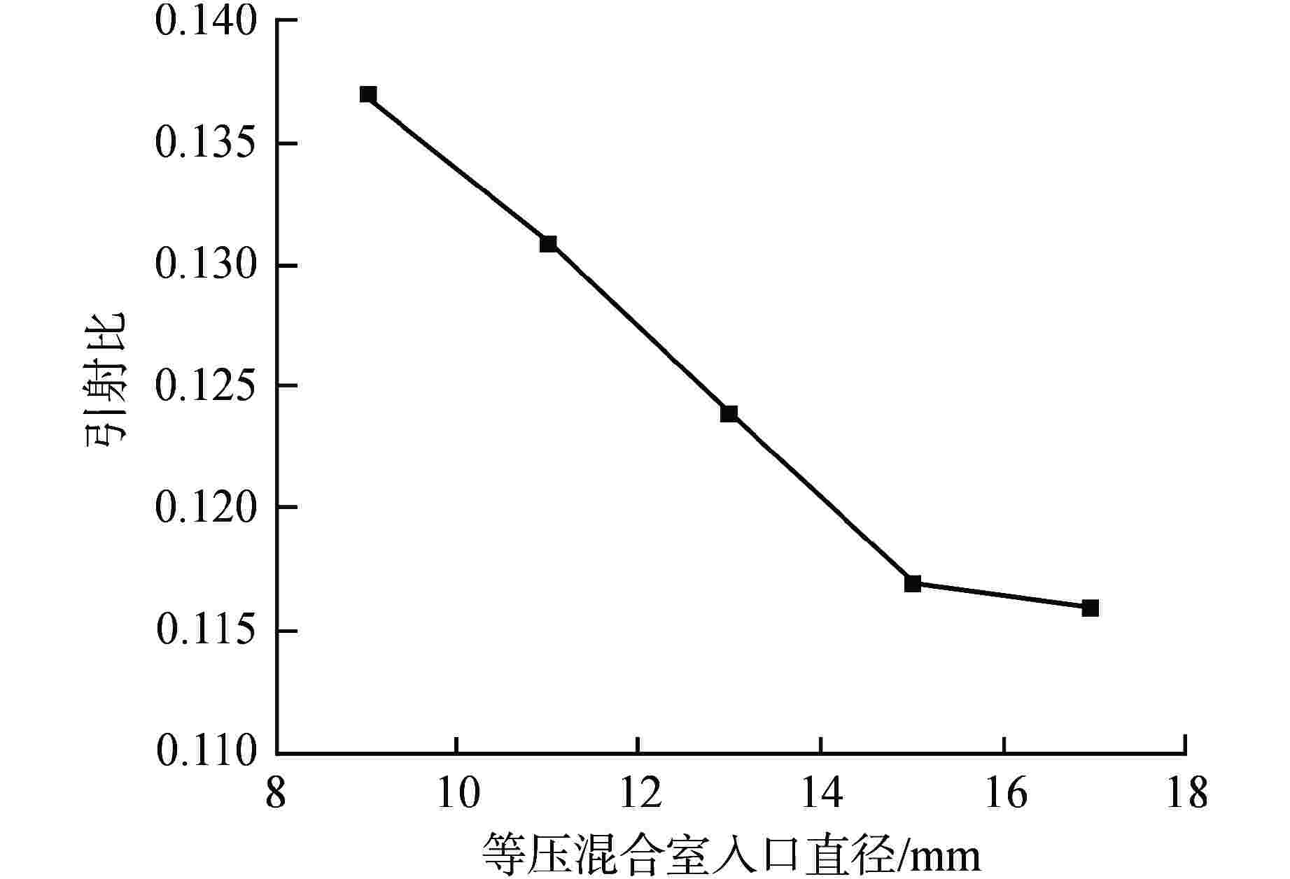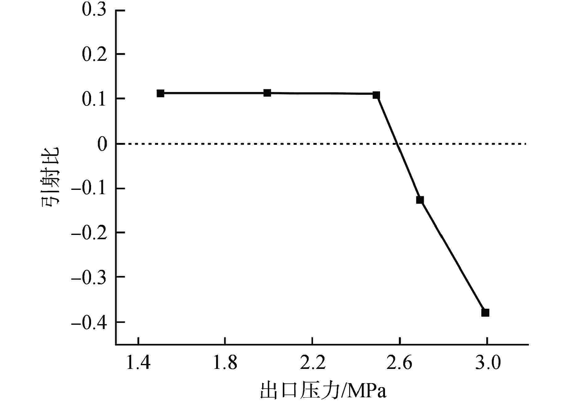 /MPa2.0 4.4 6.0 8.0 工作流体流量/(kg·s−1) 0.044 0.196 0.389 1.618 引射流体流量/(kg·s−1) 0.0056 0.055 0.274 0.669 引射比 0.127 0.281 0.704 0.413 -