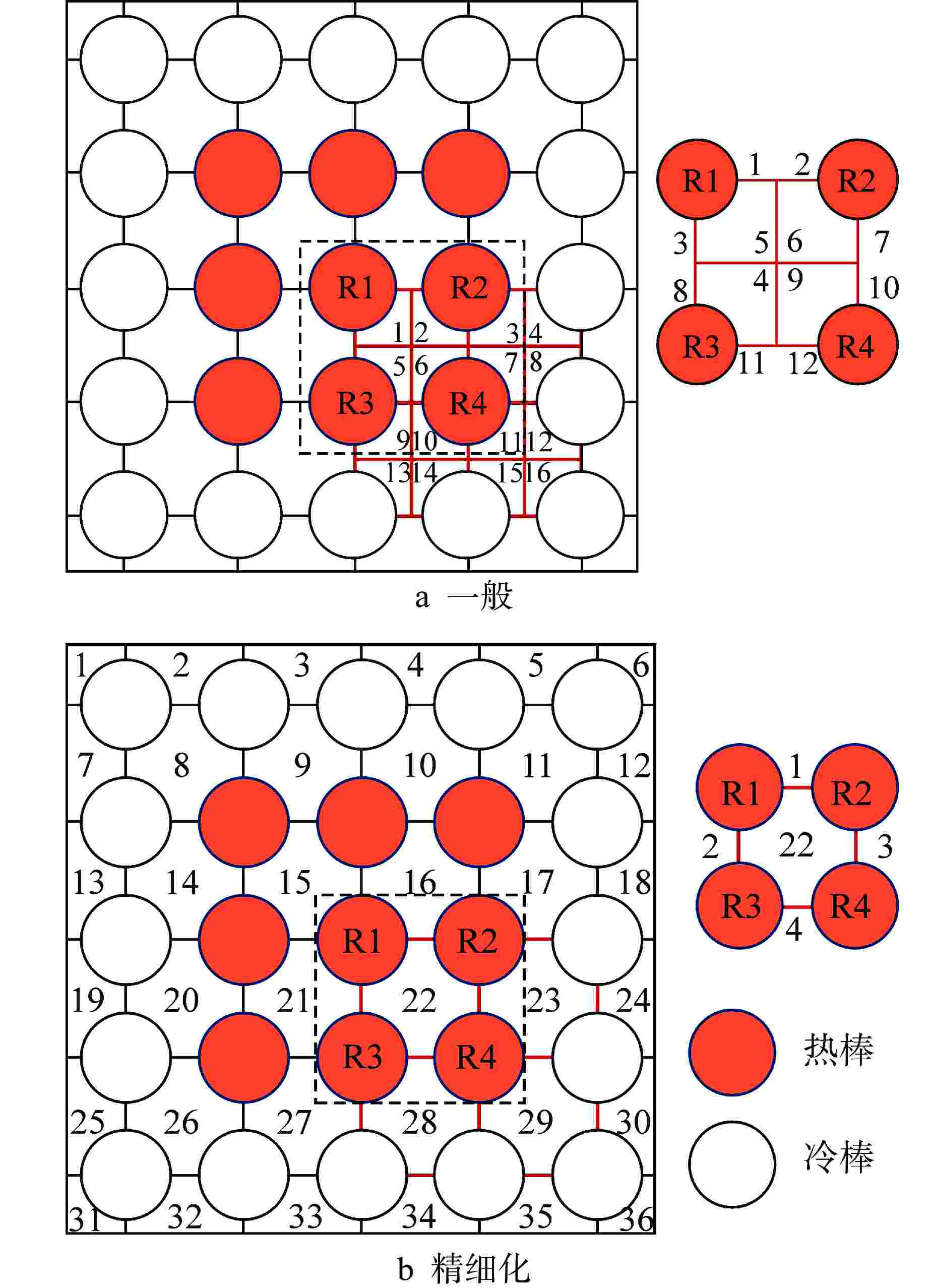 类型 参数值 燃料棒数目 25 燃料棒直径/mm 9.5 棒栅距/mm 12.6 棒到壁面距离/mm 2.5 通道流通面积/mm2 2440 加热长度/mm 3658 加热起始点/mm 500 棒束总长度/mm 4800 含搅混翼格架数目 7 含搅混翼格架轴向位置/mm 971、1425、1878、2332、
