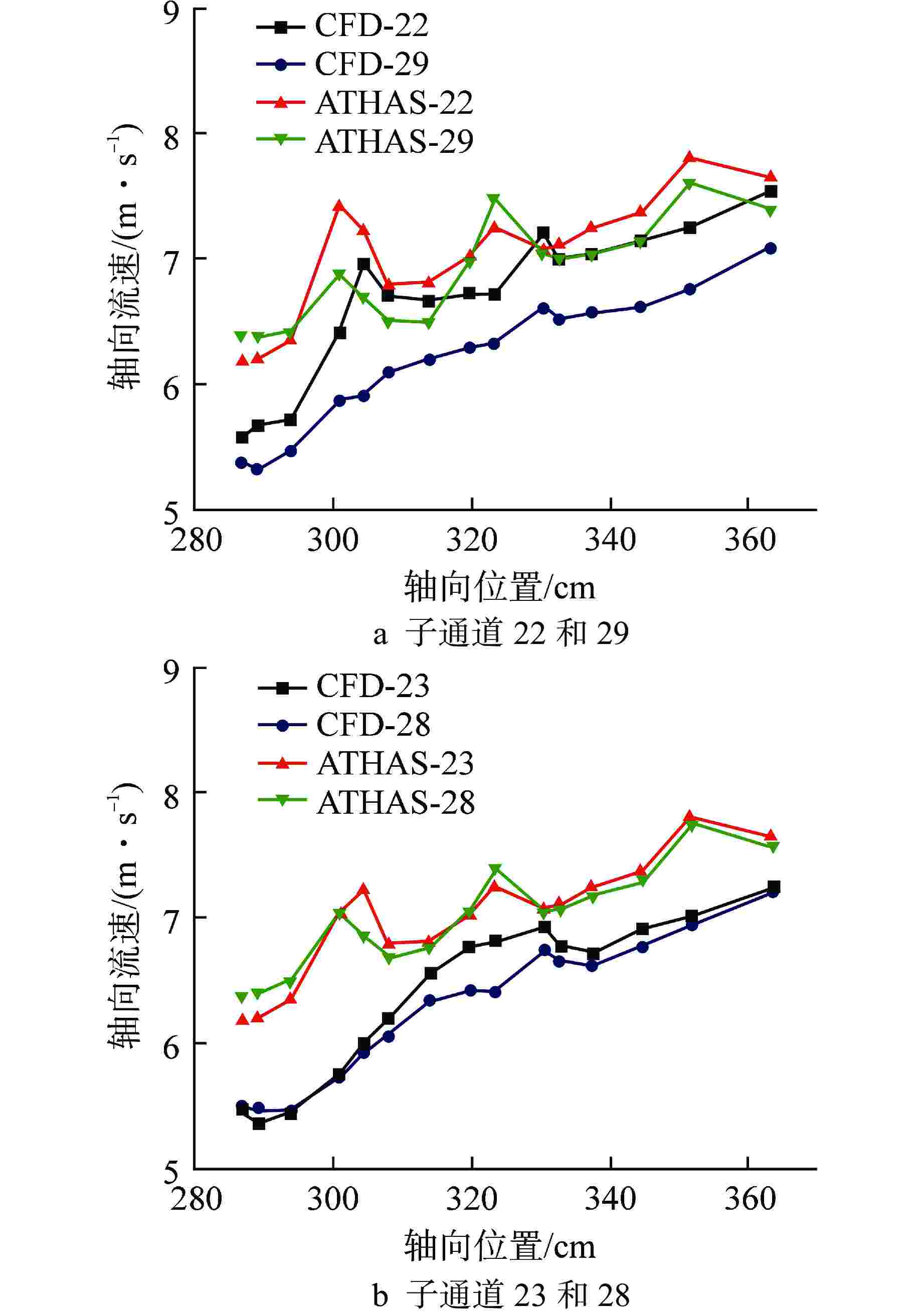 摘要: 为提高子通道程序在棒弯曲情况下对子通道局部参数变化的预测能力,本研究在对子通道进行精细划分的基础上,建立了精细化子通道棒弯曲模型对棒弯曲进行分析,并利用计算流体动力学(CFD)来验证精细化子通道棒弯曲模型对子通道轴流和横流的预测能力。通过CFD对模型进行验证,分析了棒弯曲段轴流和横流的变化趋势。结果表明,程序ATHAS和CFD对轴流和横流的变化趋势预测基本一致,精细化子通道棒弯曲模型可以较好地预测棒弯曲引起的轴流和横流的变化趋势。因此,精细化子通道棒弯曲模型可以预测弯曲棒对局部流场的影响,为临界热流密度的预测提供了基础。Abstract: In order to improve the prediction ability of the sub-channel code for the local parameter changes under rod-bowing condition, a fined sub-channel rod-bowing model was developed in this study. The model, based on a detailed division of the sub-channels, allows a comprehensive analysis of rod bowing. The prediction ability of the fined sub-channel rod-bowing model on the axial flow and cross flow of the sub-channel was validated by computational fluid dynamics (CFD). Based on the validity of the model by CFD, the analysis of the trends of axial and transverse flows in the rod-bowing section was conducted. The results show that the predictions of the changing trends of axial flow and cross flow by ATHAS and CFD are basically consistent, and the fined sub-channel rod bowing model can better predict the changing trend of axial flow and cross flow caused by rod bowing. Therefore, the fined sub-channel rod bowing model can predict the influence of bowing rod on local flow field, which provides a basis for the prediction of critical heat flux.