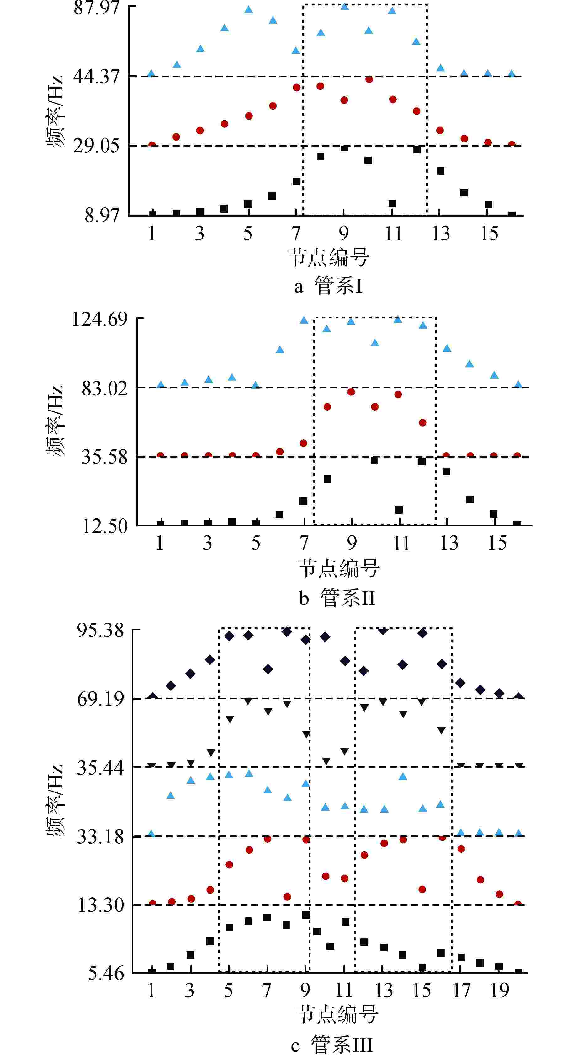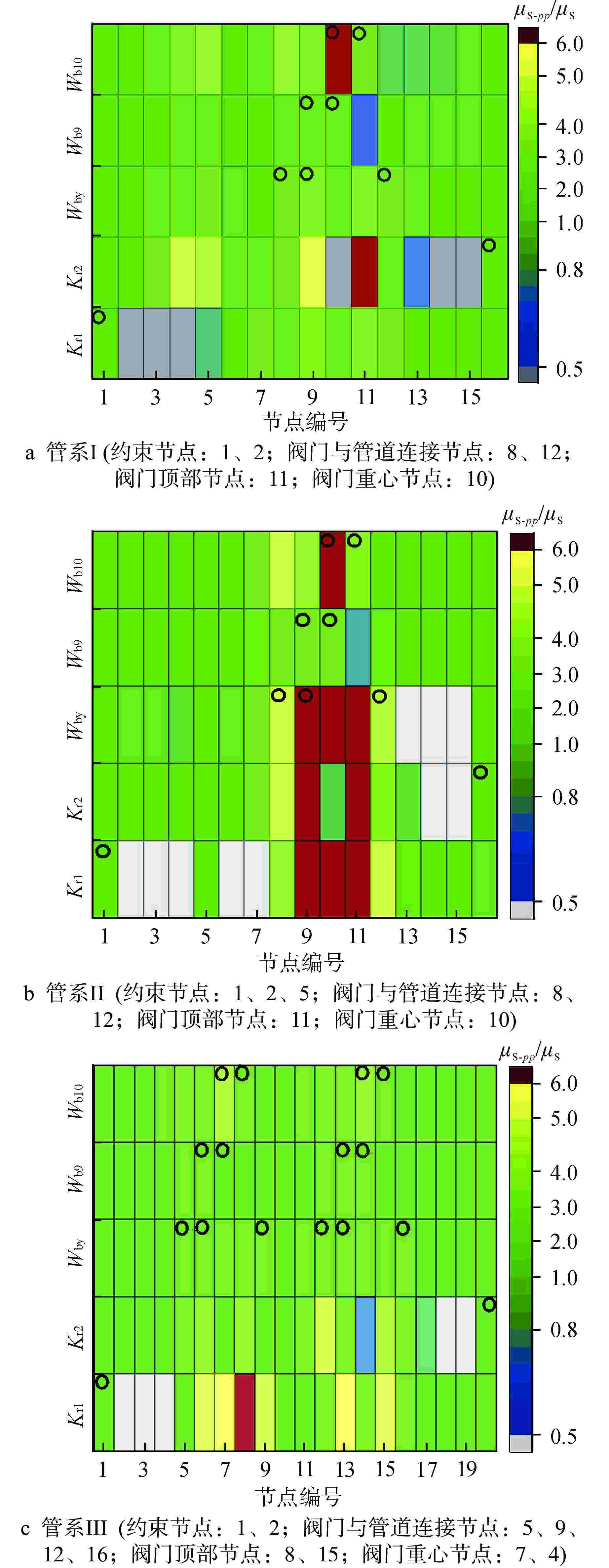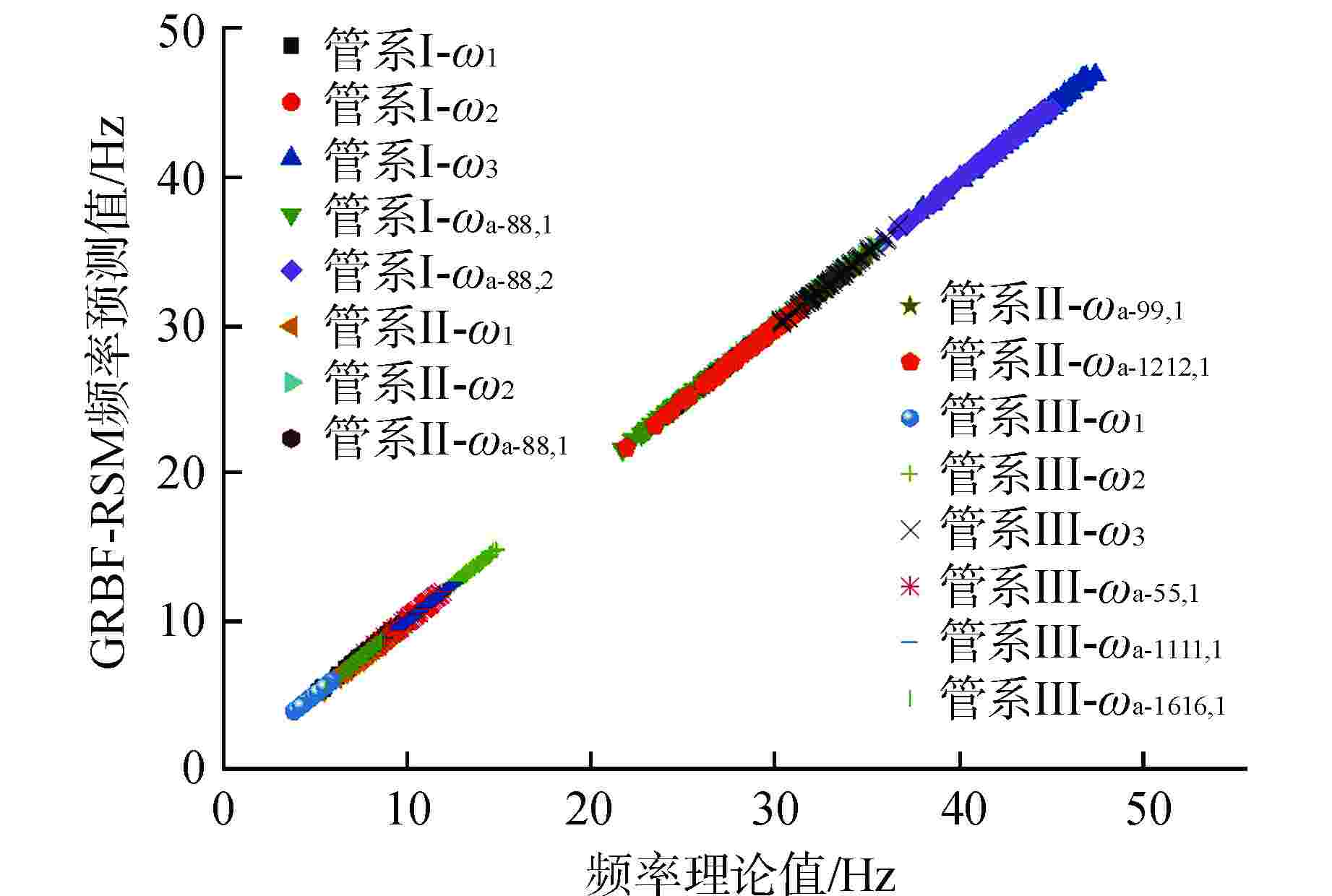 工况 适用对象 模拟实测数据 1 管系Ⅰ ω1、ω2、ω3、ωa-88,1、ωa-88,2 2 管系Ⅱ ω1、ω2、ωa-88,1、ωa-99,1、ωa-1212,1 3 管系Ⅲ ω1、ω2、ω3、ωa-55,1、ωa-1111,1、ωa-1616,1 表 2 修正结果与偏差