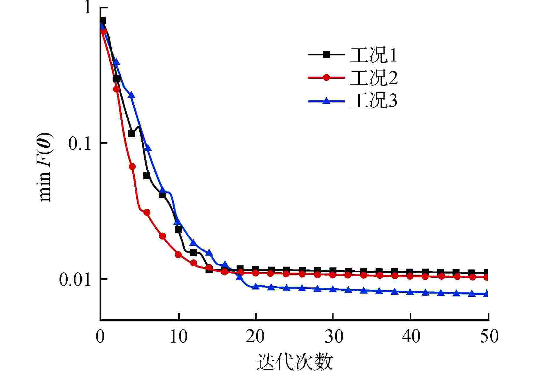 工况 Kr1 Kr2 Wby Wb9 Wb10 修正值/(N·m·rad−1) 偏差/% 修正值/(N·m·rad−1) 偏差/% 修正值/(N·m6) 偏差/% 修正值/(N·m6) 偏差/% 修正值/(N·m6) 偏差/% 1 1.57×105 4.58 1.48×105 0.41 1.84×104 0.45 4.31×103 2.36 2.16×103 2.31 2 1.56×105 4.67 1.43×105 3.09 1.90×104 0.99 4.31×103 2.88 2.17×103 3.73 3 1.50×105 3.80 1.44×105 0.94 1.83×104 0.17 4.15×103 1.41 2.09×103 1.41 -