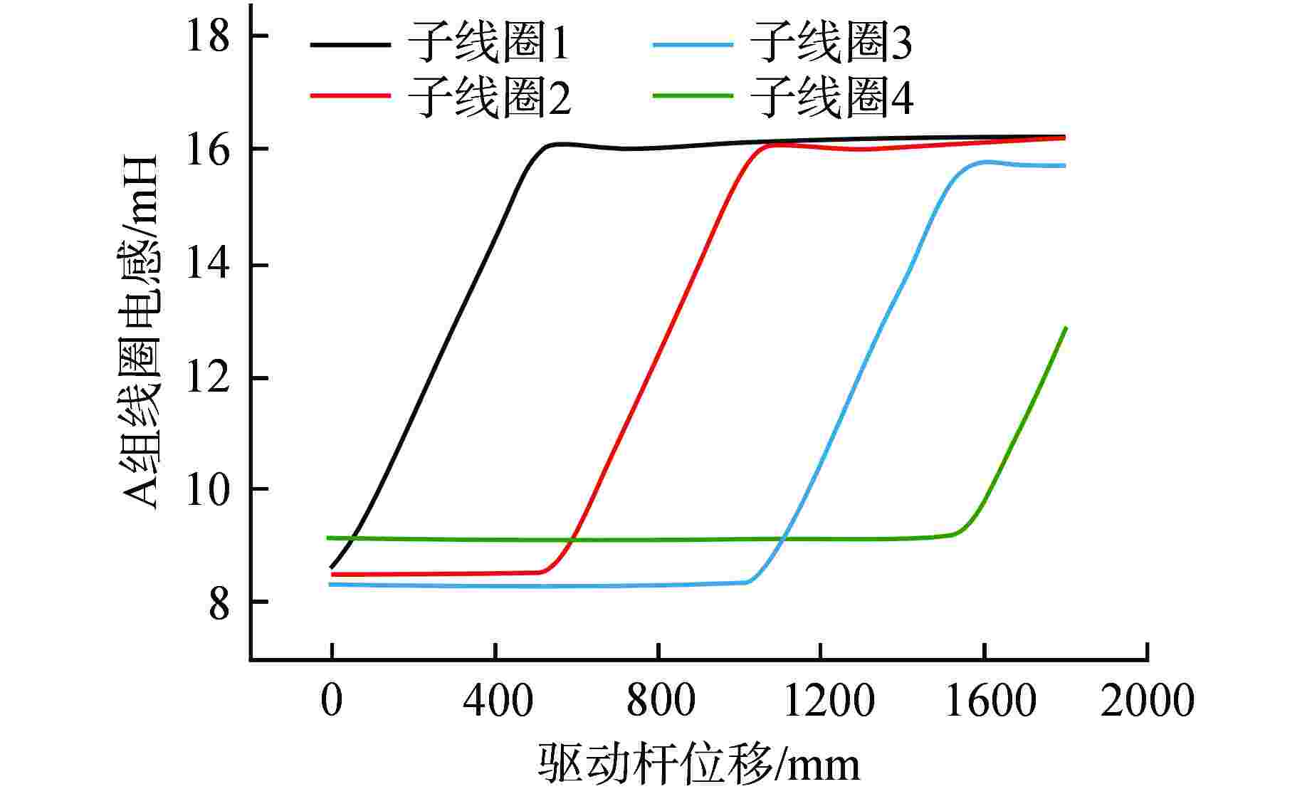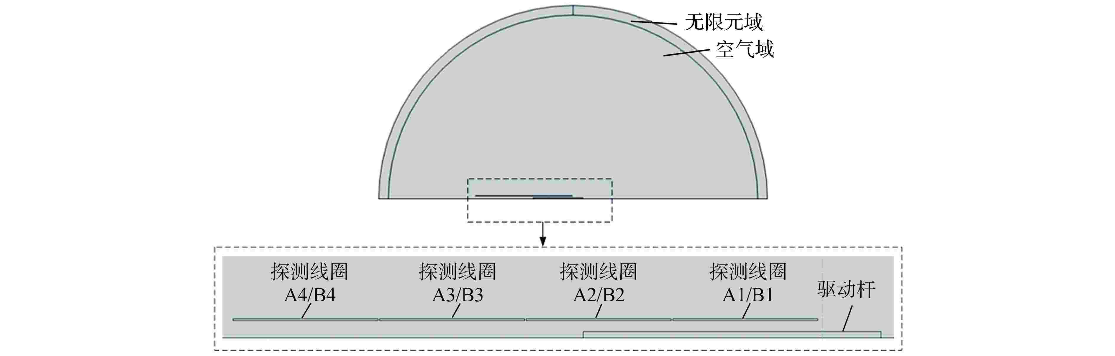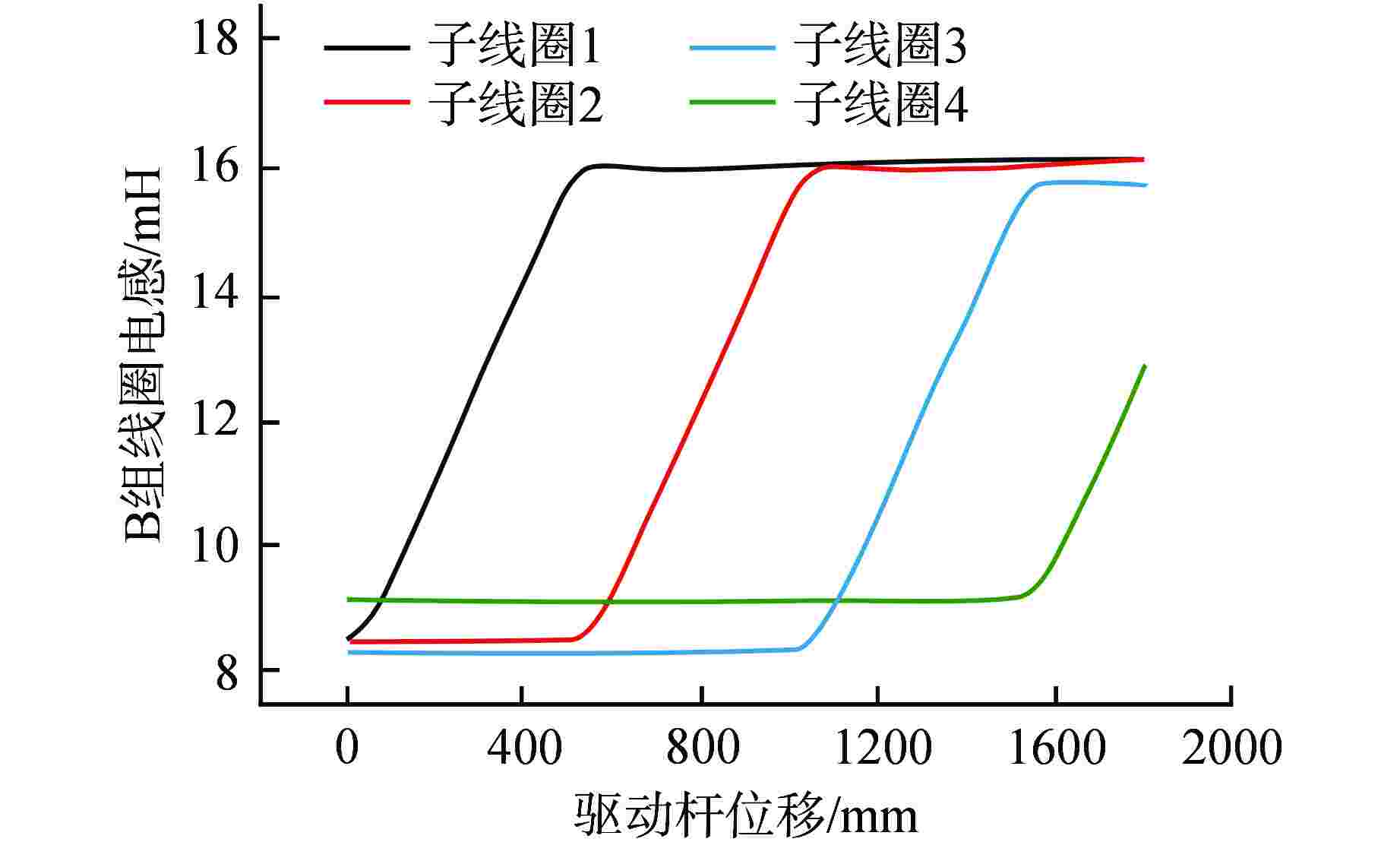 参数名 参数值 探测线圈总长/mm 1995 线圈分段/段 4 线圈内径/mm 119 单段线圈长度/mm 495 导体线径/mm 2 单段A(B)组线圈总匝数/匝 124×2 线圈层数/层 2 相邻线圈间隔/mm 5 驱动杆半径/mm 22.25 驱动杆长度/mm 2500 线圈间距/mm 3 激励电流幅值/A 0.1 激励电流频率/Hz 200 表 2 探测线圈优化参数