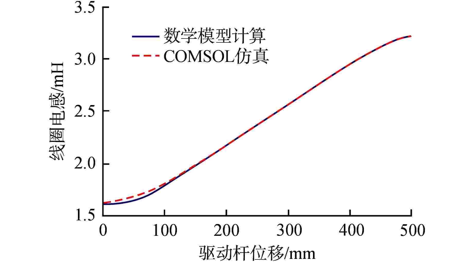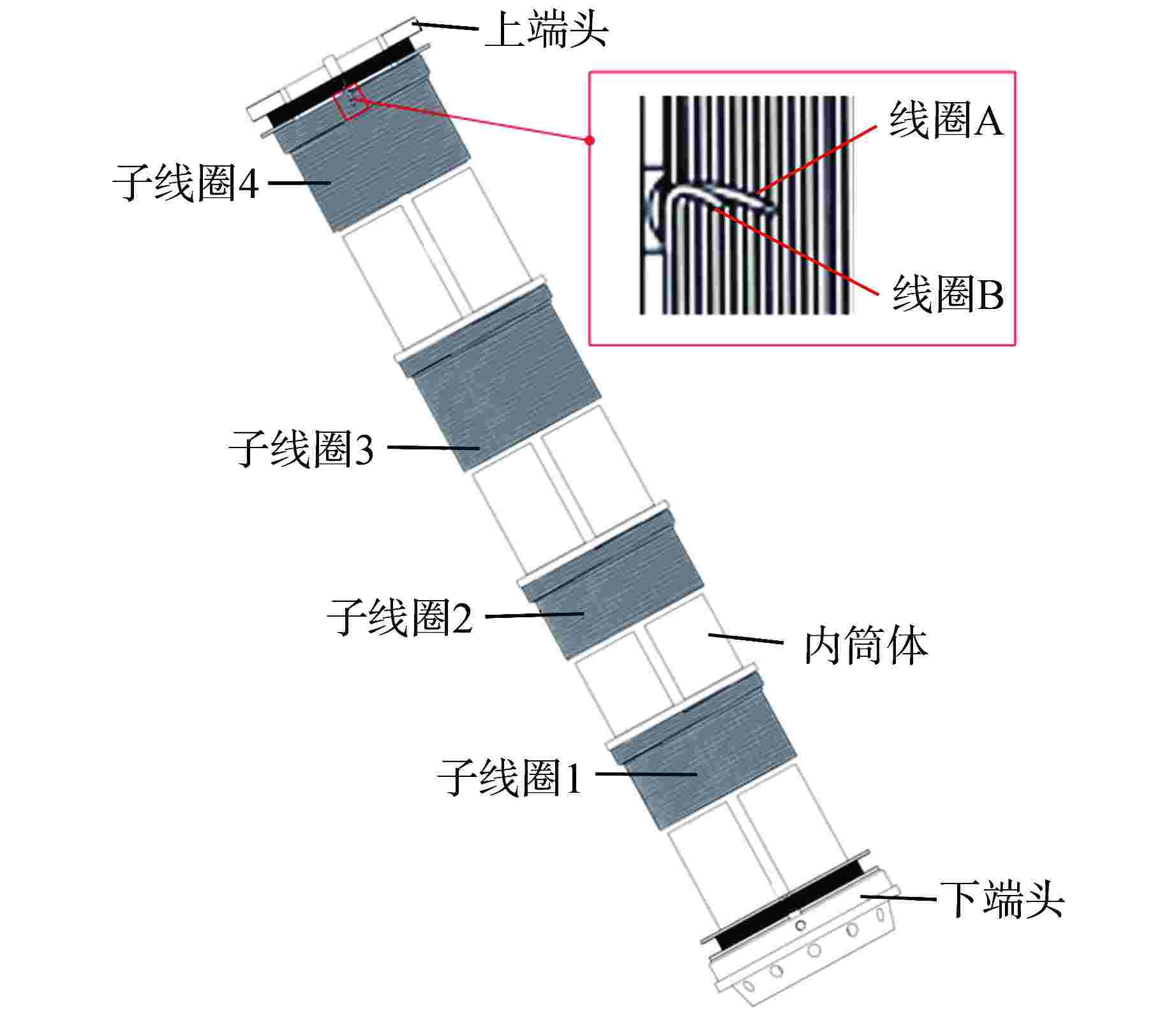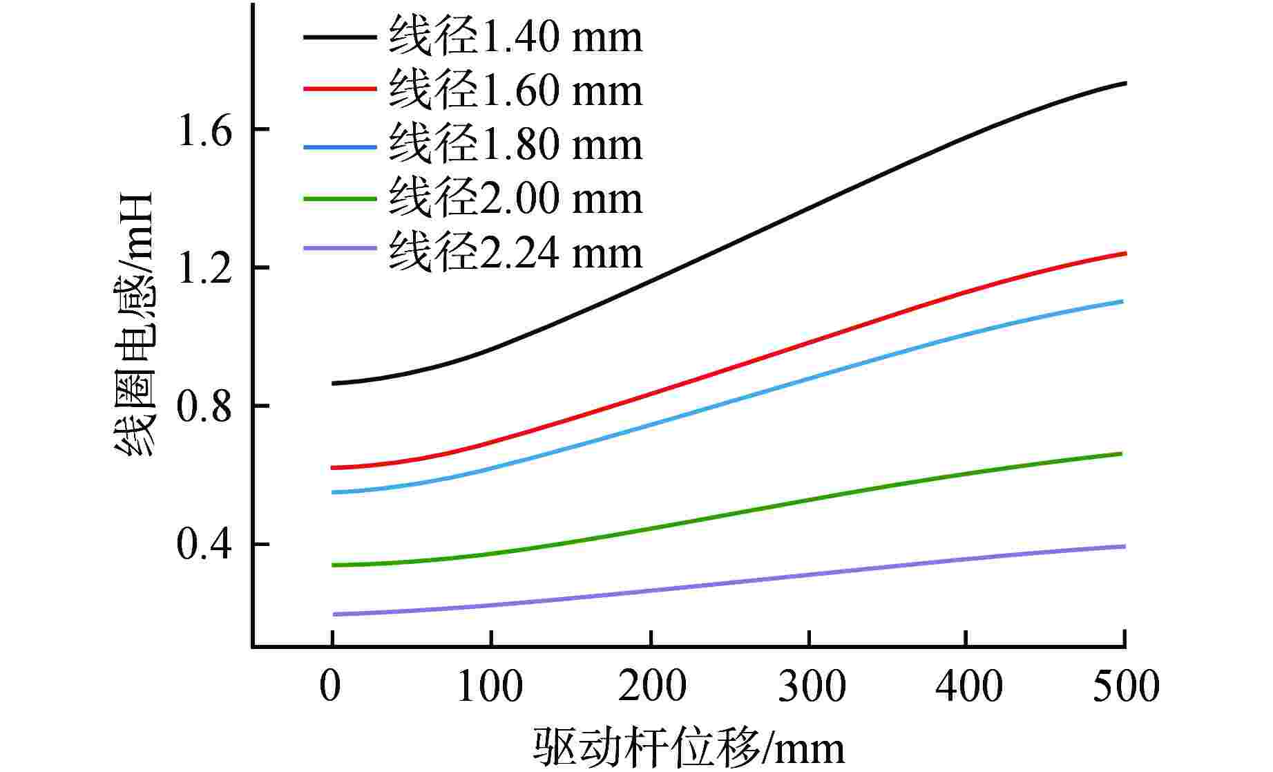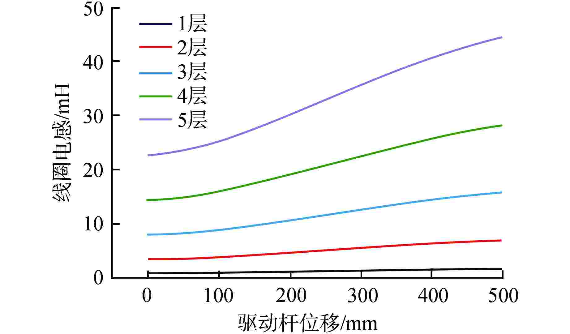 参数名 参数值 探测线圈总长/mm 1995 线圈分段/段 4 线圈内径/mm 119 单段线圈长度/mm 495 导体线径/mm 2 单段A(B)组线圈总匝数/匝 124×2 线圈层数/层 2 相邻线圈间隔/mm 5 驱动杆半径/mm 22.25 驱动杆长度/mm 2500 线圈间距/mm 3 激励电流幅值/A 0.1 激励电流频率/Hz 200 表 2 探测线圈优化参数