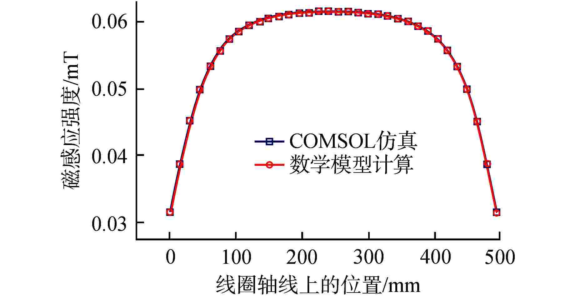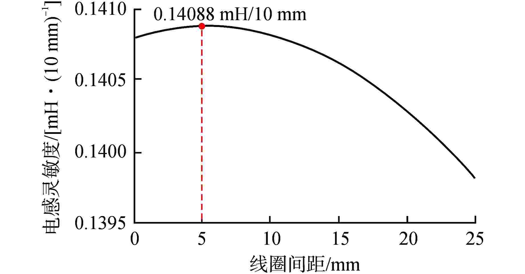 参数名 参数值 导体线径/mm 1.40 单段A(B)组线圈总匝数/匝 180×3 线圈层数/层 3 线圈间距/mm 5 表 3 探测线圈电感灵敏度