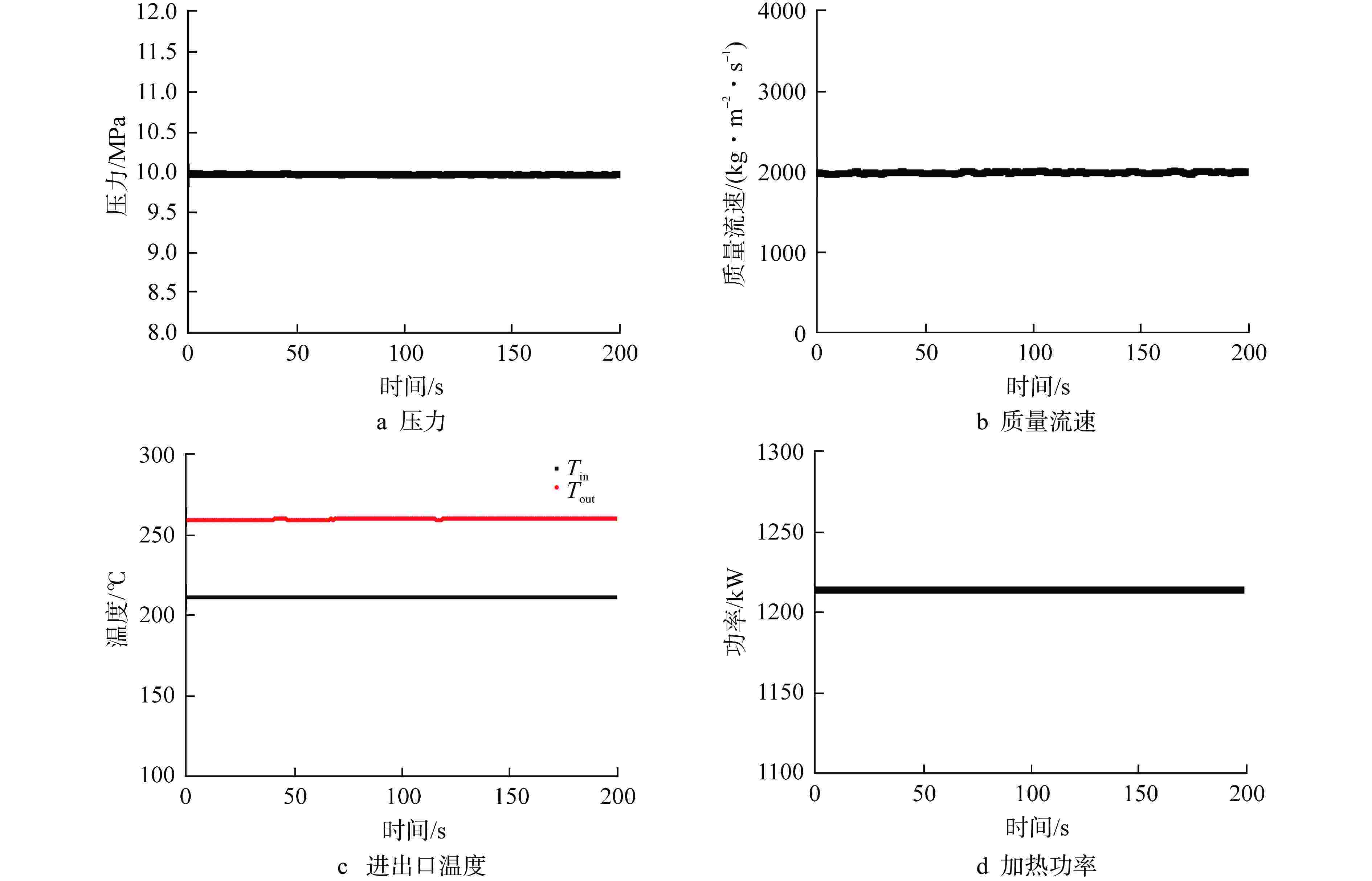 序号 参数 仪表型号 量程 精度 测点位置 1 出口压力 STG974压力变送器 0~20 MPa 0.1级 本体出口接管 2 压降 ST3000智能式差压变送器 0~200 kPa 0.1级 本体进出口接管 3 进出口温度 φ1N型铠装热电偶 0~300℃ ±1.0℃ 本体进出口接管 4 流量 文丘里管+ST3000差压变送器 0~45 t/h ±1.0% 实验支路管道 5 电流 直流电流传感器 0~30000 A 0.1级 本体电缆 6 电压 电压变送器 0~100 V 0.2级 本体上下接线 7 子通道温度 φ1N型铠装热电偶 0~300℃ ±1.0℃ 各子通道发热段末端中心位置 表 4 主要热工参数不确定度