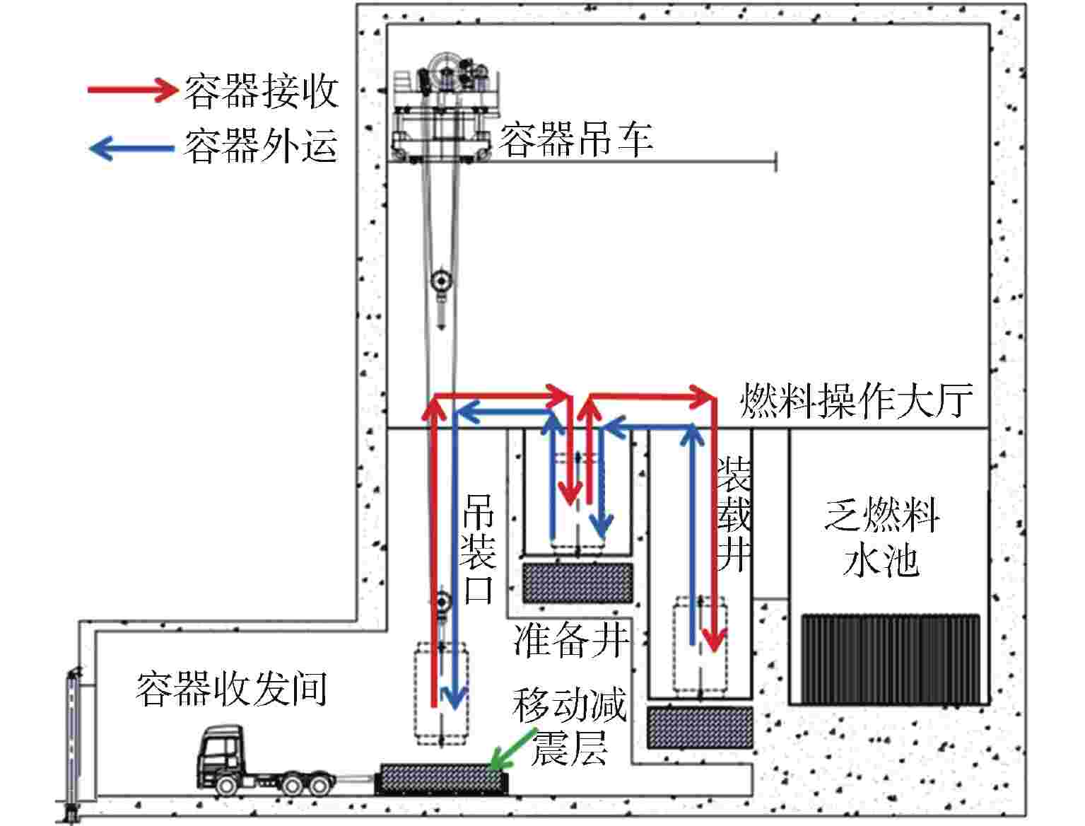 表 1 不同计算假设下的最大剂量值 Table 1. Maximum Dose for Different Calculation Assumptions 剂量 工况1 工况2 工况3 工况4 限值 有效剂量/Sv 12.7 3.16 0.65 0.33 0.1 甲状腺当量剂量/Sv 3.3 0.83 0.17 0.09 1.0 表 2 不同状态项目的推荐改进措施 Table 2. Recommended Improvements for Items in Different Status 改进措施 已固化核电项目 尚未开建项目 降低容器吊装高度 取消容器吊装 √ 降低池井整体标高 √ “台阶式”吊运 √ 提高抗跌落冲击能力 提高乏燃料容器筒体抗跌落能力 √ √ 装载井内完成容器密封 √ 移动式减震层 √ 固定式减震层 √ 缓解放射性物质的对外释放 临时充排水 √ 固定充排水管线 √ 关闭厂房大门 √ √ 提前开启事故通风系统 √ √