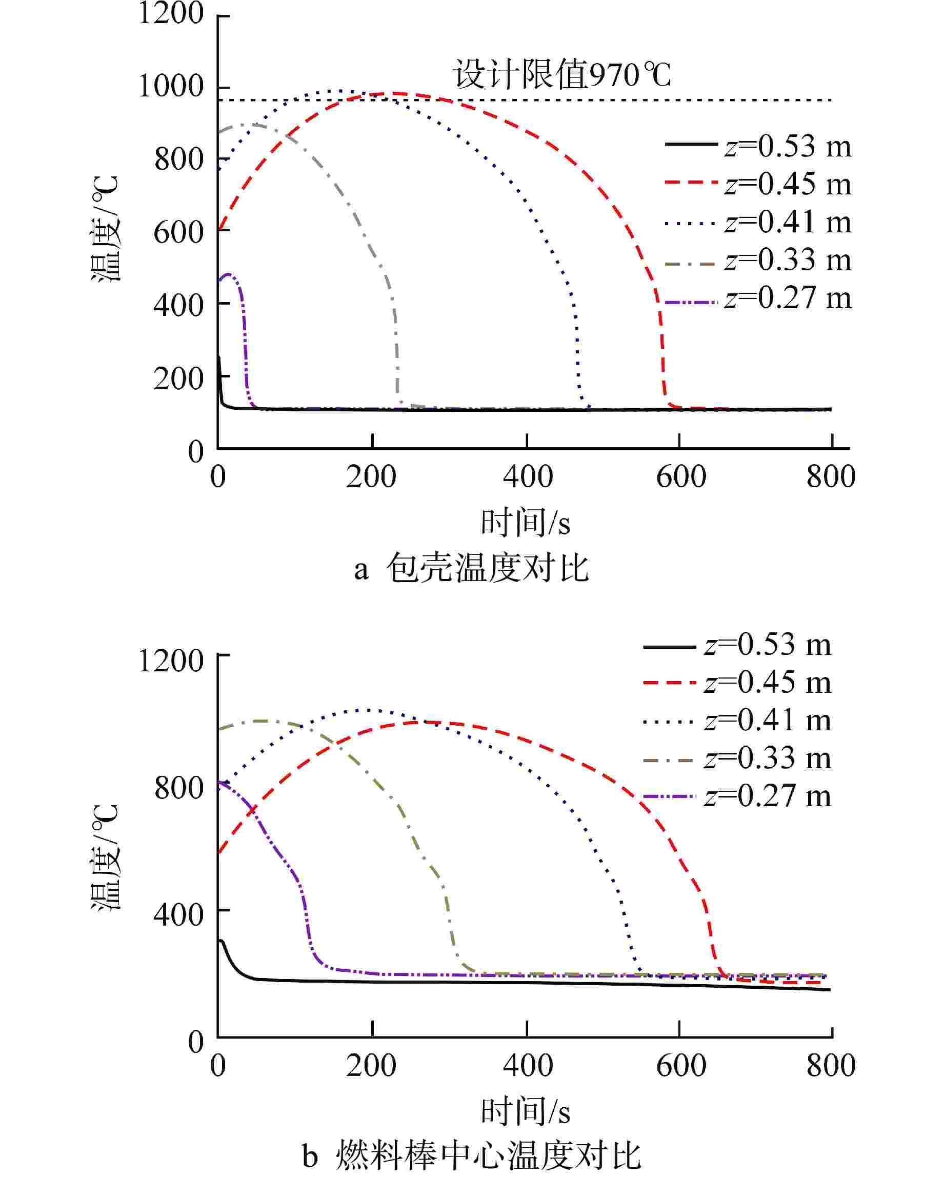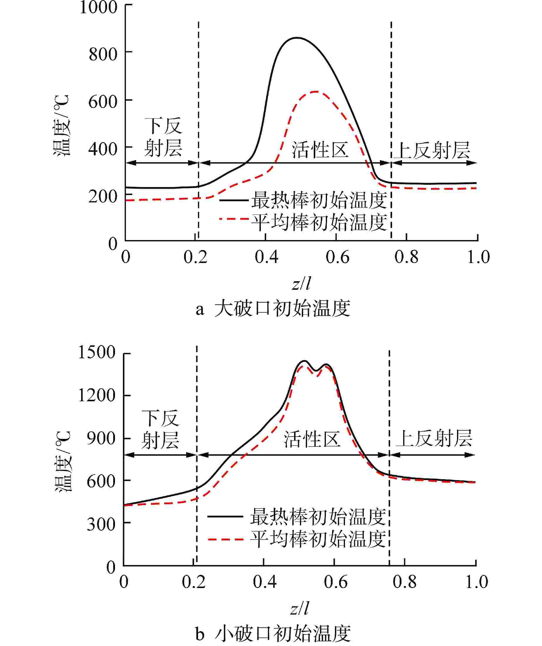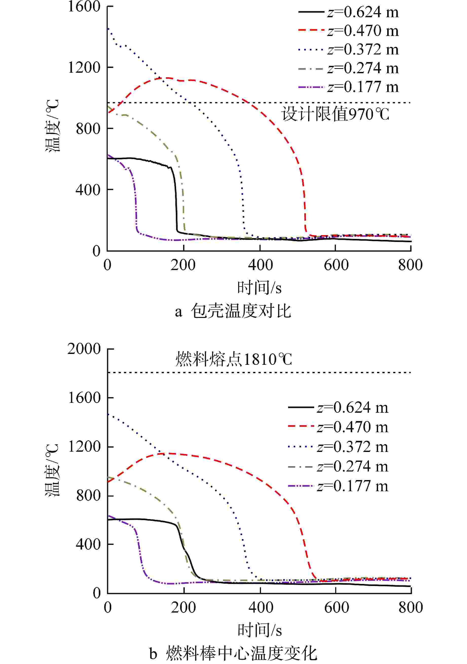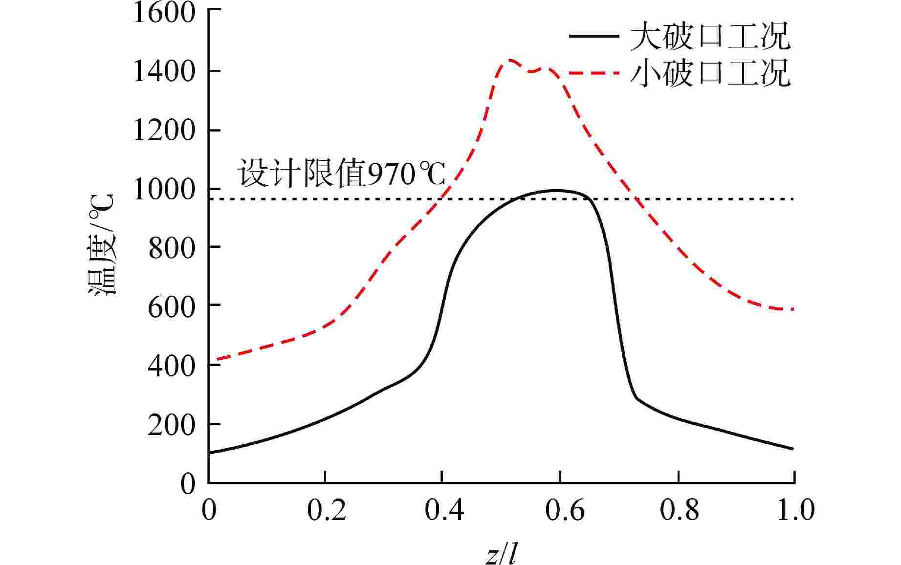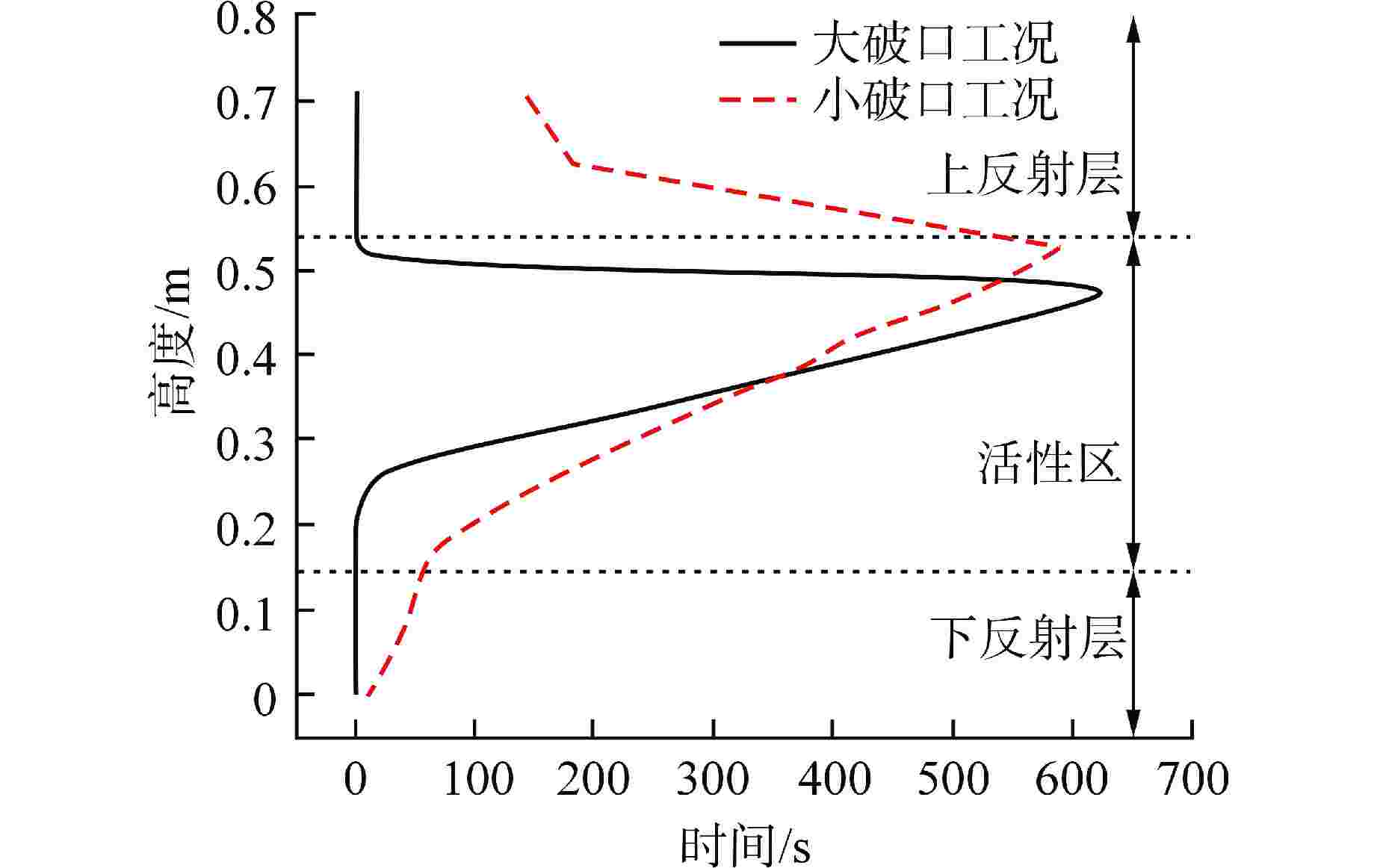 参数 大破口失水事故 小破口失水事故 再淹没时间/s 5901 70374 再淹没压力/MPa 0.101 0.101 再淹没质量流量/(kg·s−1) 1.67 1.67 初始气体焓值/(kJ·kg−1) 682 1655 棒束表面平均
