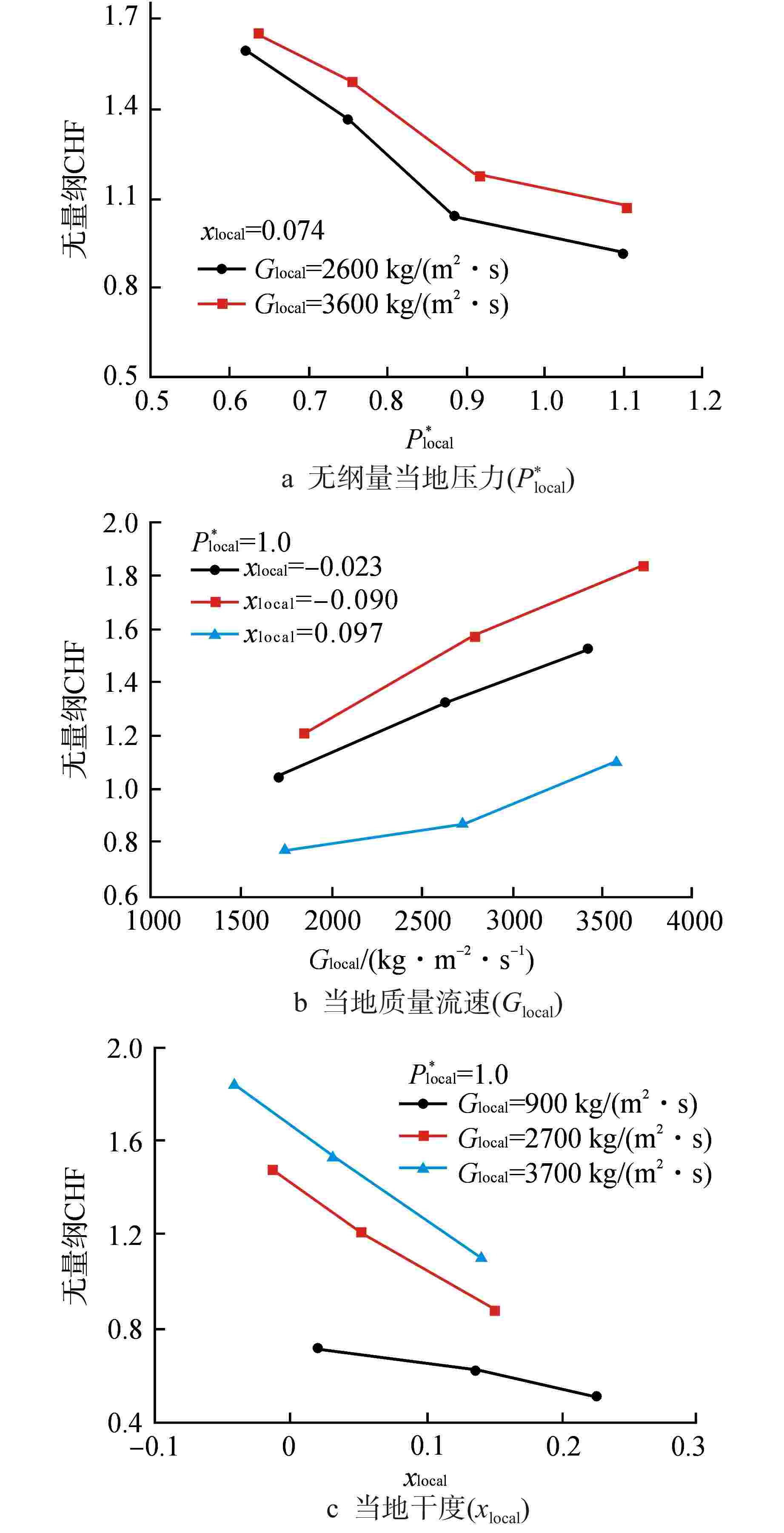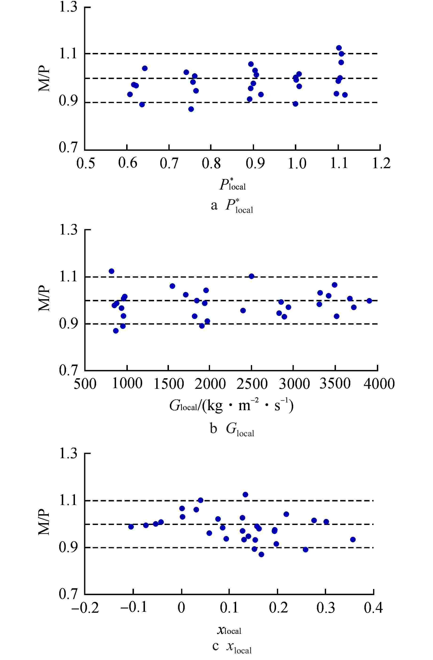 参数 参数值 相对偏差/% 重复0 重复1 无量纲系统压力P* 1.106 1.111 −0.45 入口温度Tin/℃ 244.89 245.95 −0.43 质量流速G/(kg·m–2·s−1) 2999.46 3001.65 −0.073 无量纲临界功率$ P_{{\text{cr}}}^* $ 1.28 1.29 −0.78 -