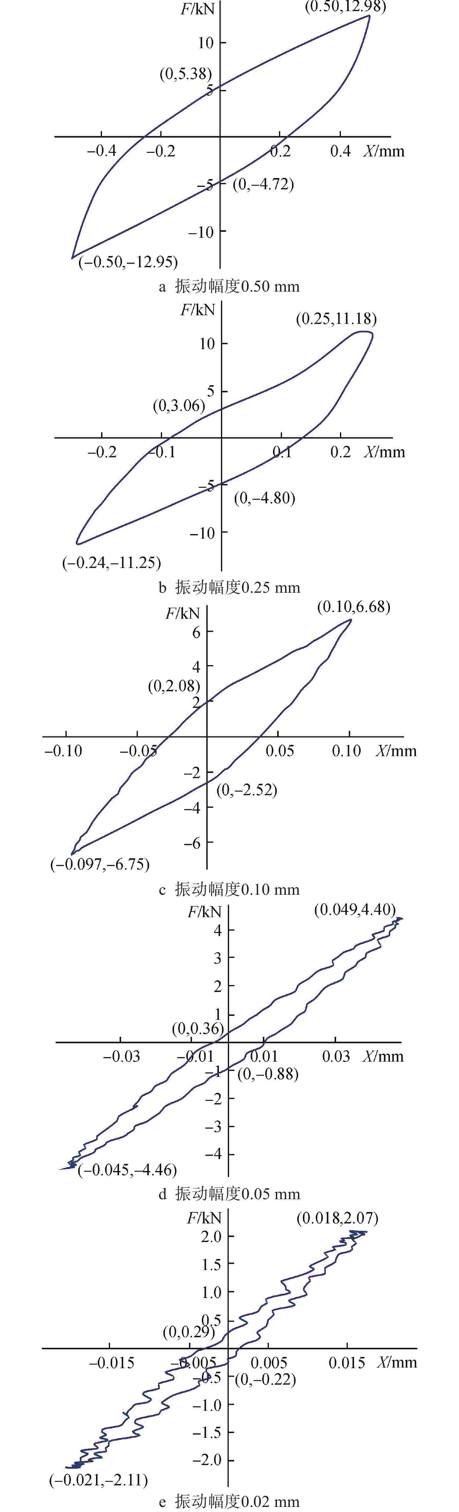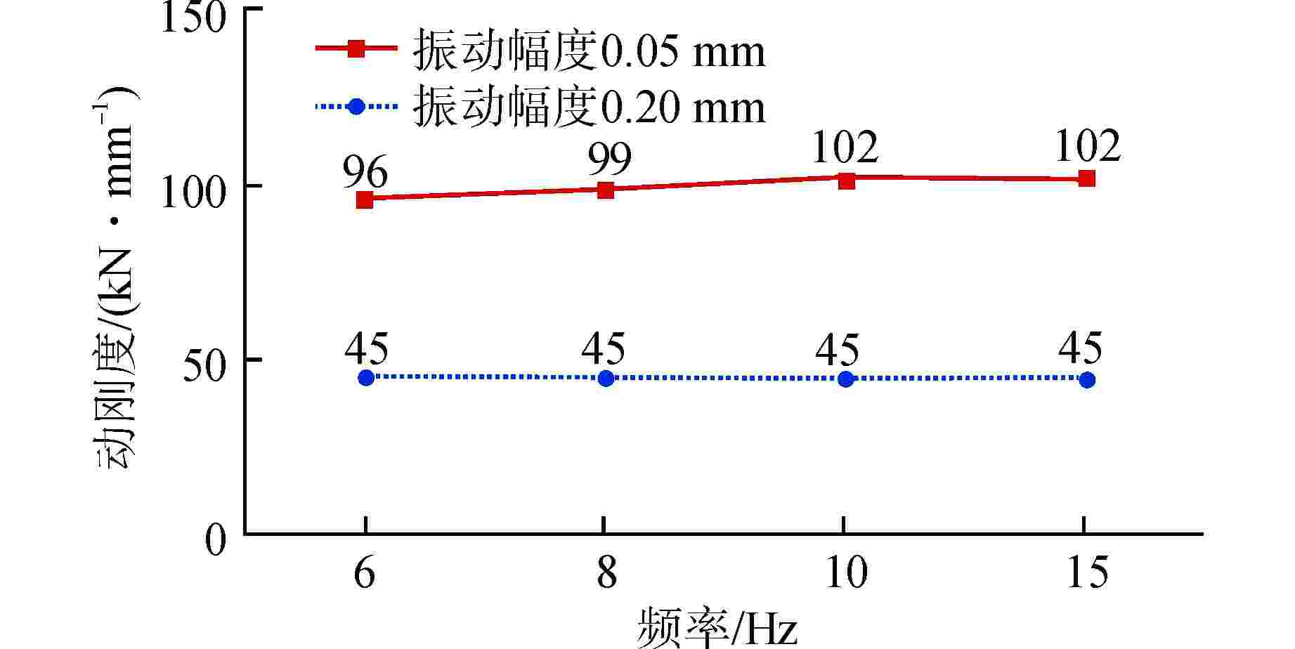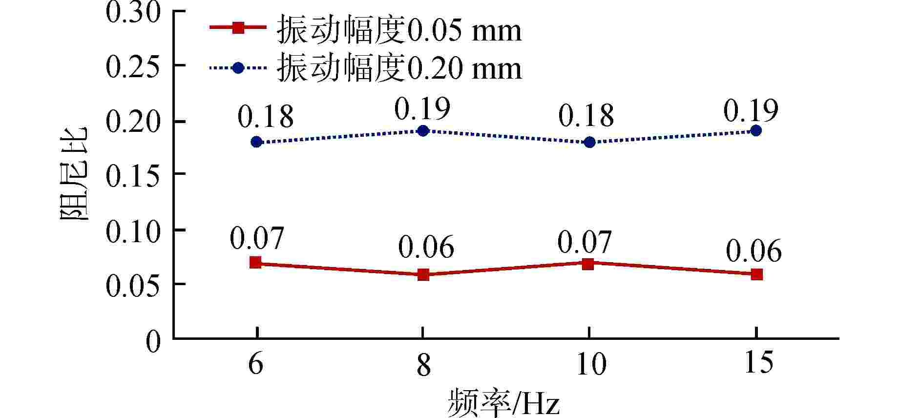 振动幅度/mm 0.50 0.25 0.10 0.05 0.02 动刚度/(kN·mm−1) 26 46 69 96 108 阻尼比 0.19 0.18 0.17 0.07 0.06 -