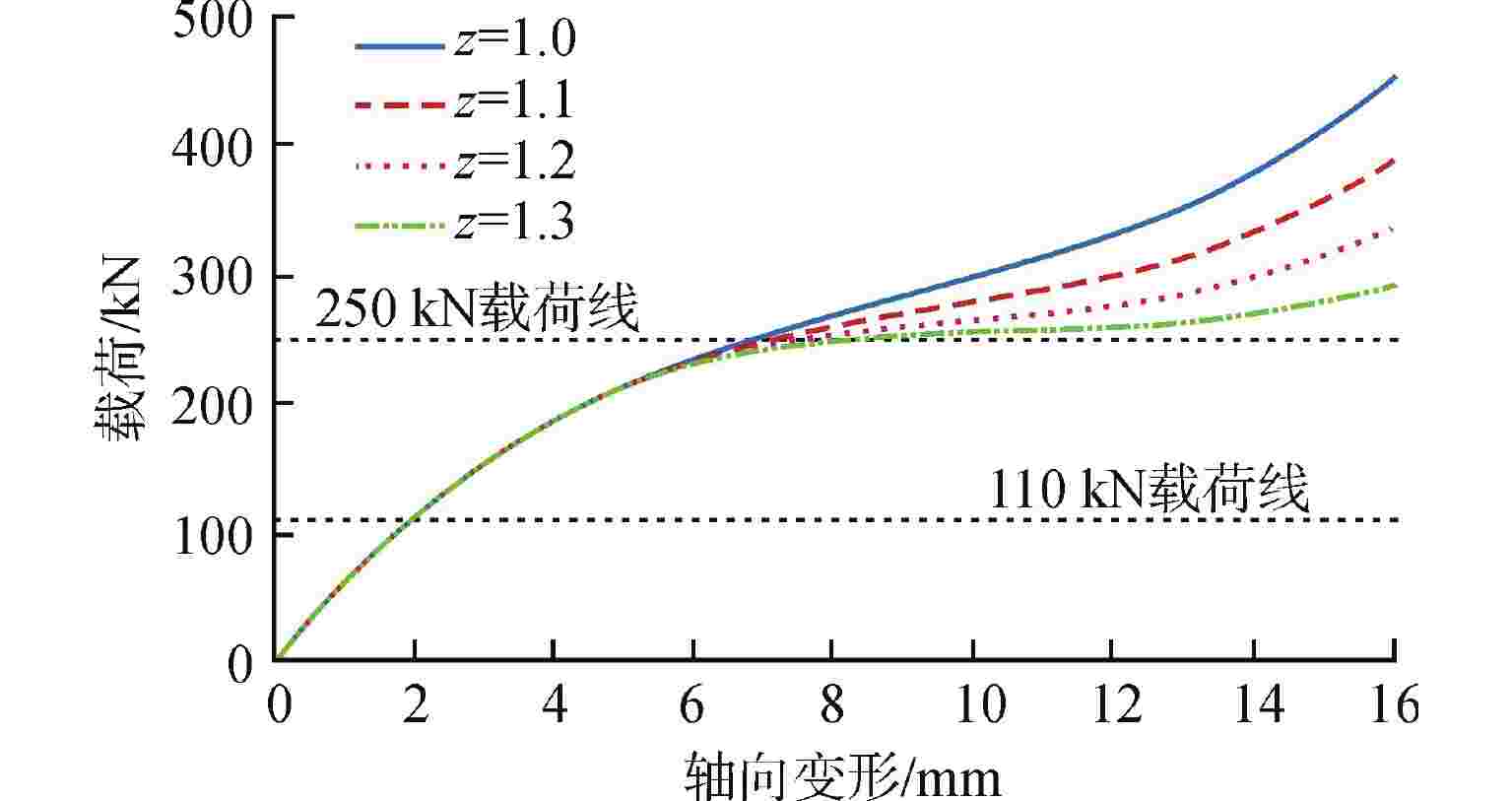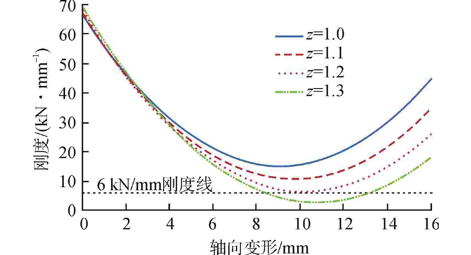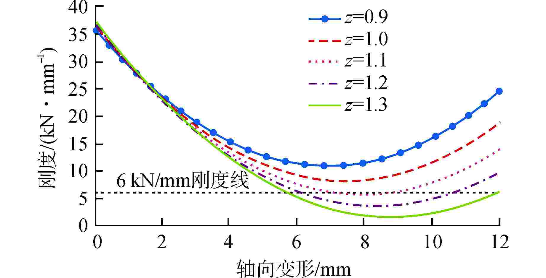 主要特性 需求值 设计值 额定承载/t ≥10 约11 额定承载下固有频率/Hz <8 约6 额定承载下压缩变形量/mm 约7.5 约7.5 刚度下限/(kN·mm−1) 6 6 安装最大外径/mm ≤350 <350 安装最大高度/mm ≤400 <400 表 2 不同振动幅度下隔振器的动刚度和阻尼比测试结果