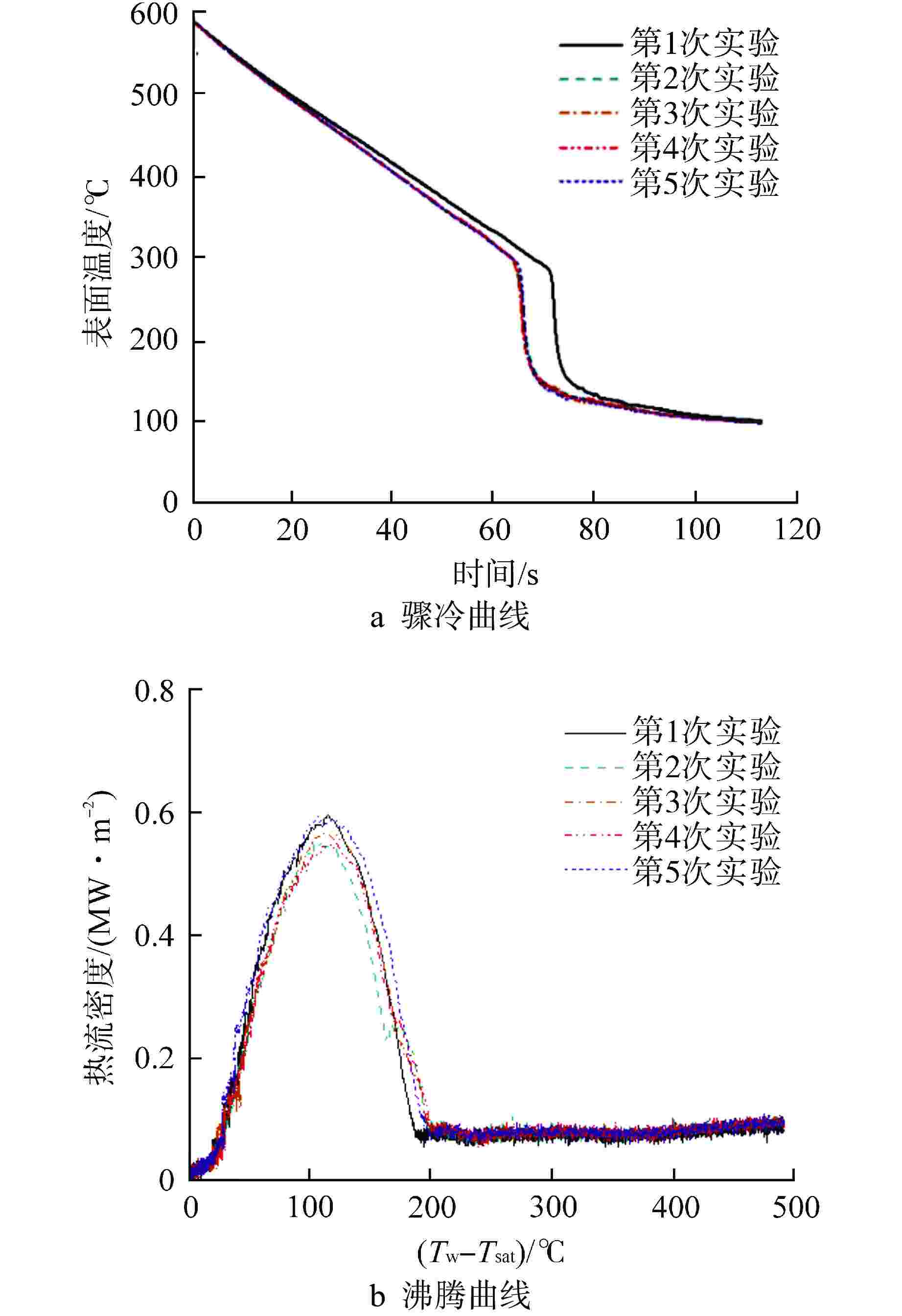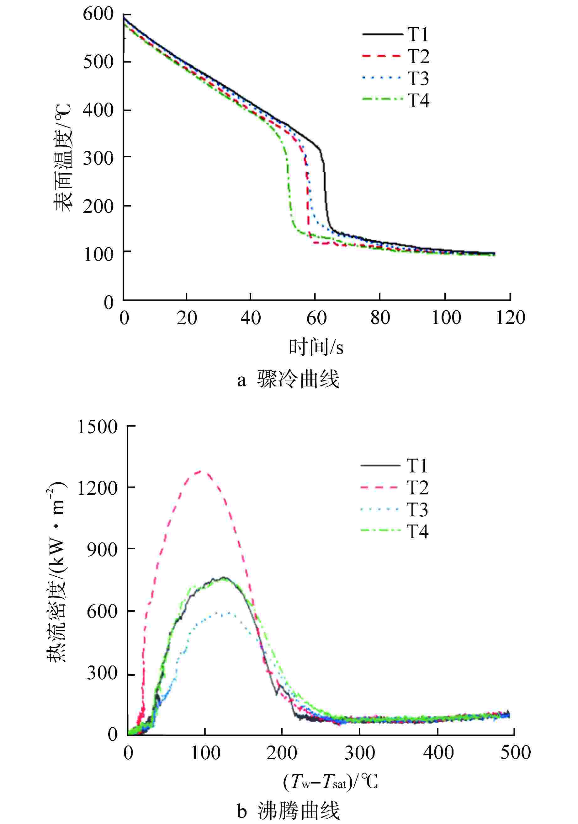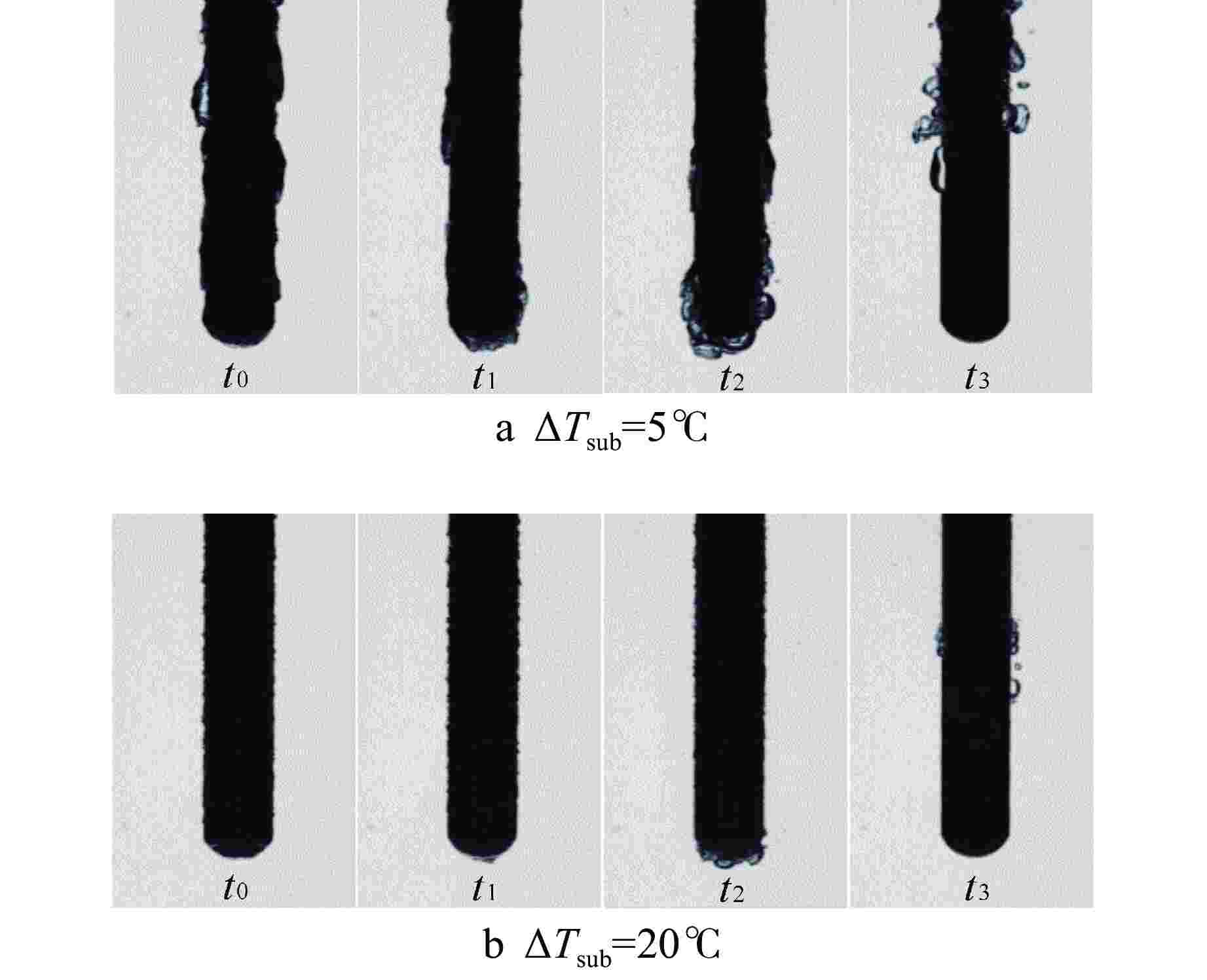 (J·kg−1·K−1)粗糙度/μm 接触角 FeCrAl 7100 13 460 0.2 93.4˚ Zr-4 6550 13.4 286 0.2 103.8˚ 表 2 最小膜态沸腾温度与过冷度的线性关系式