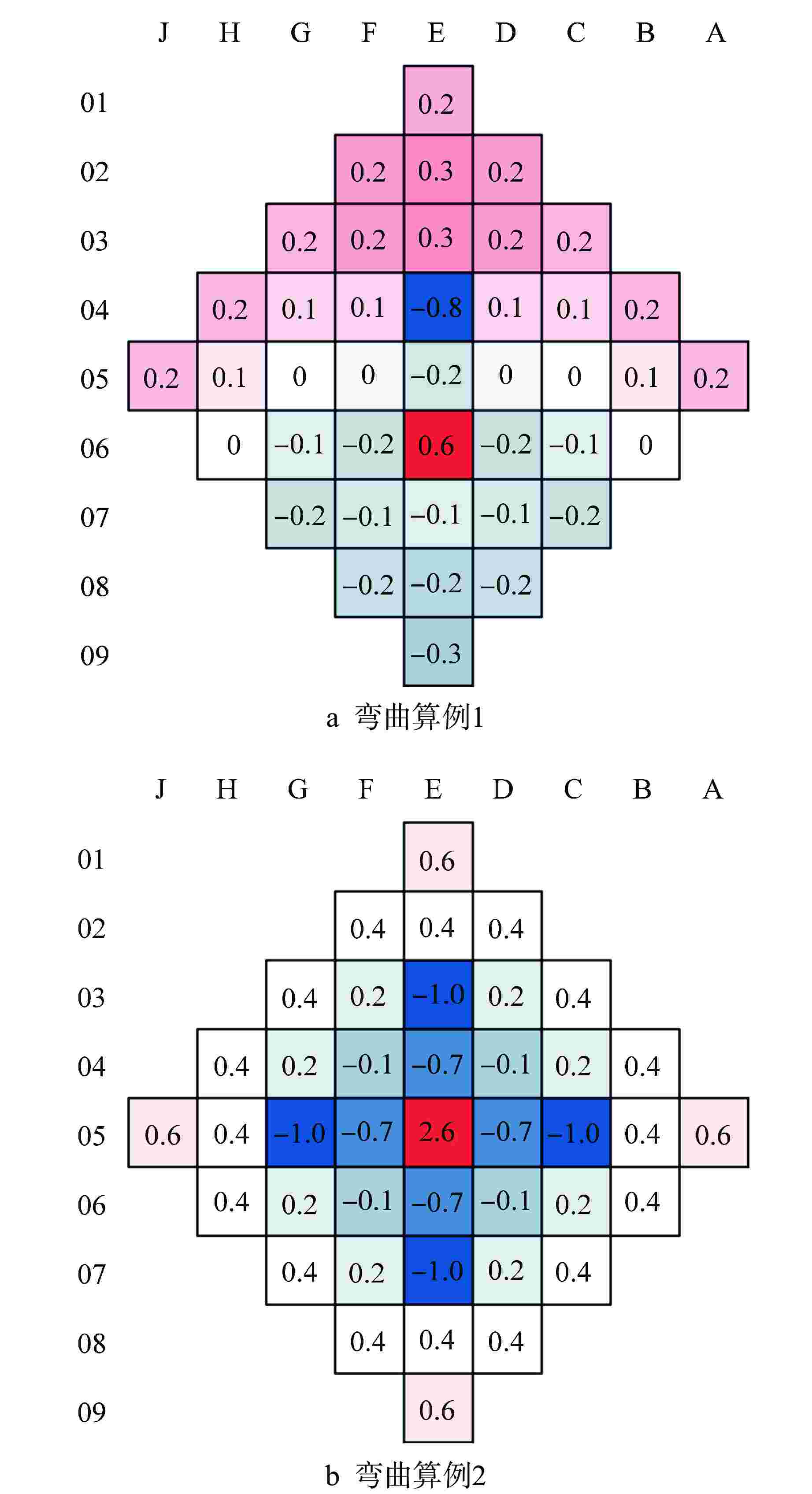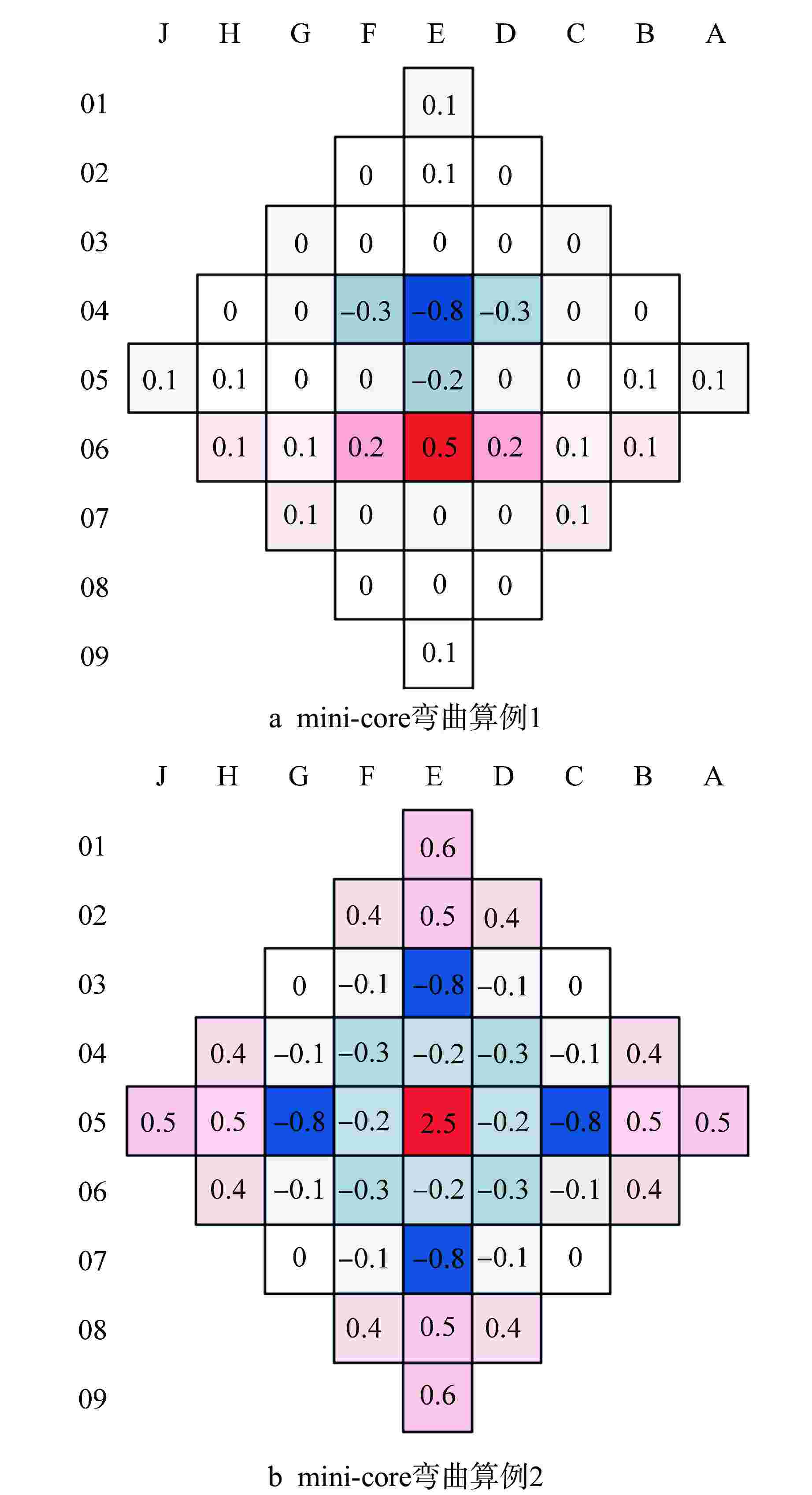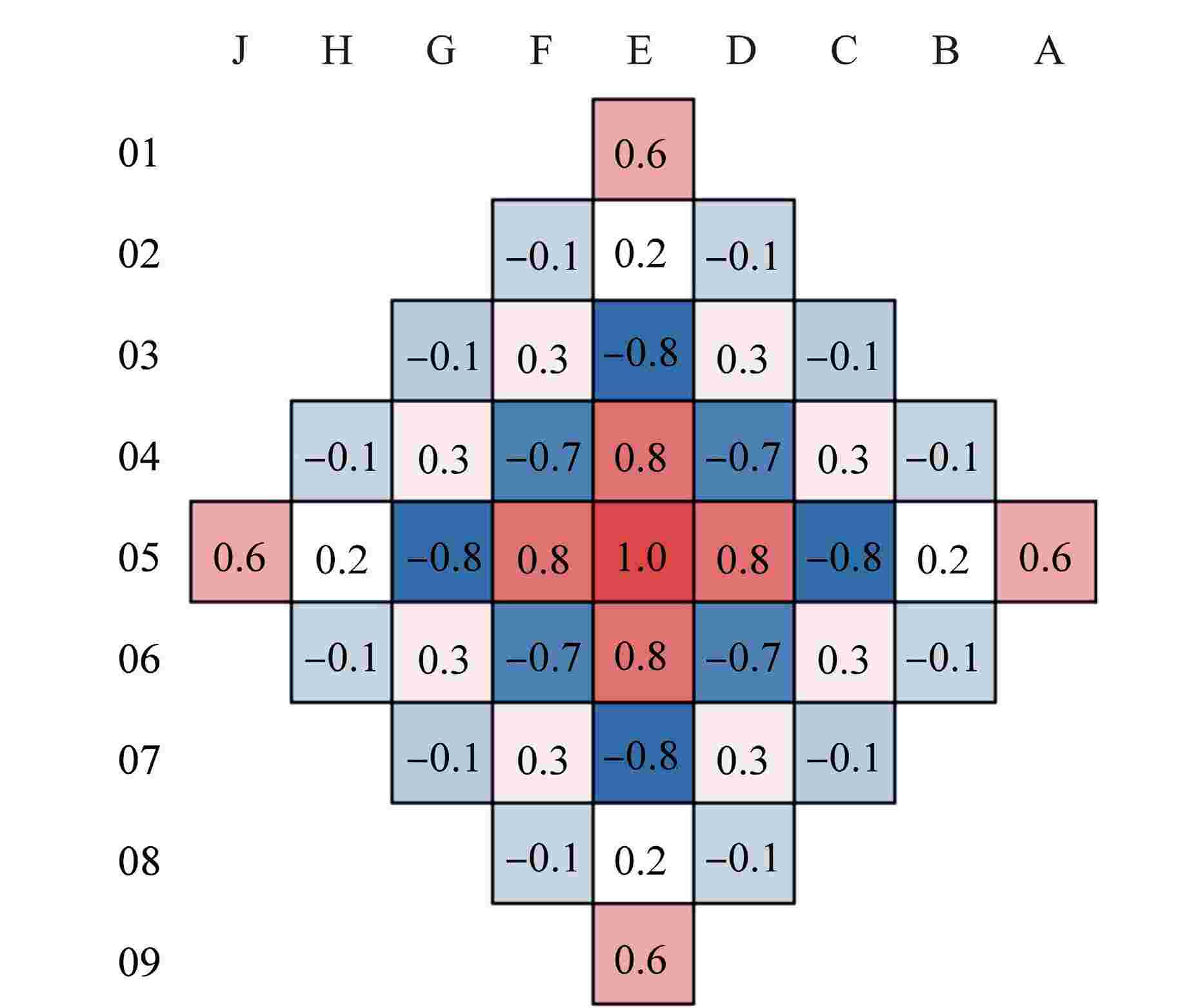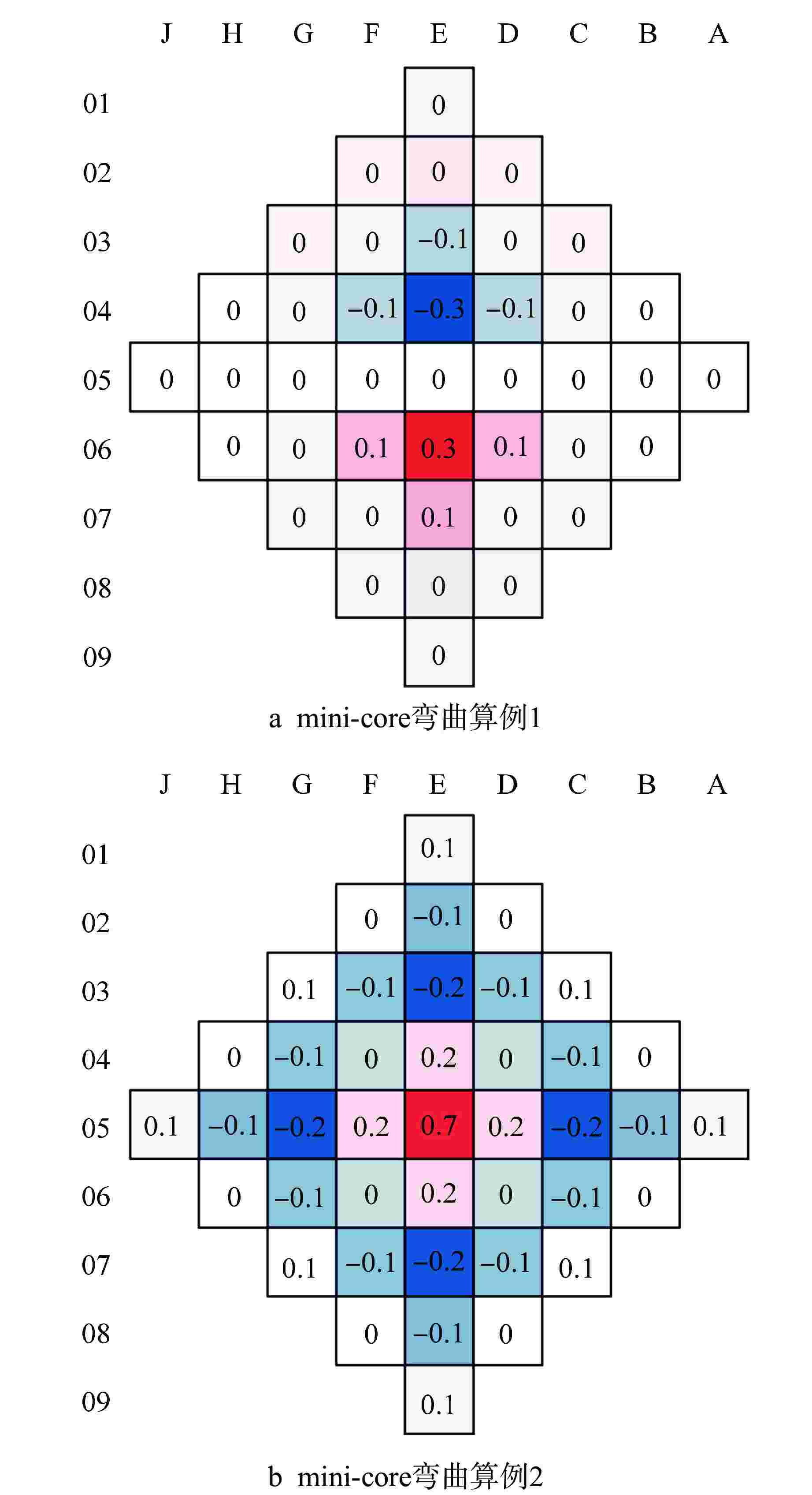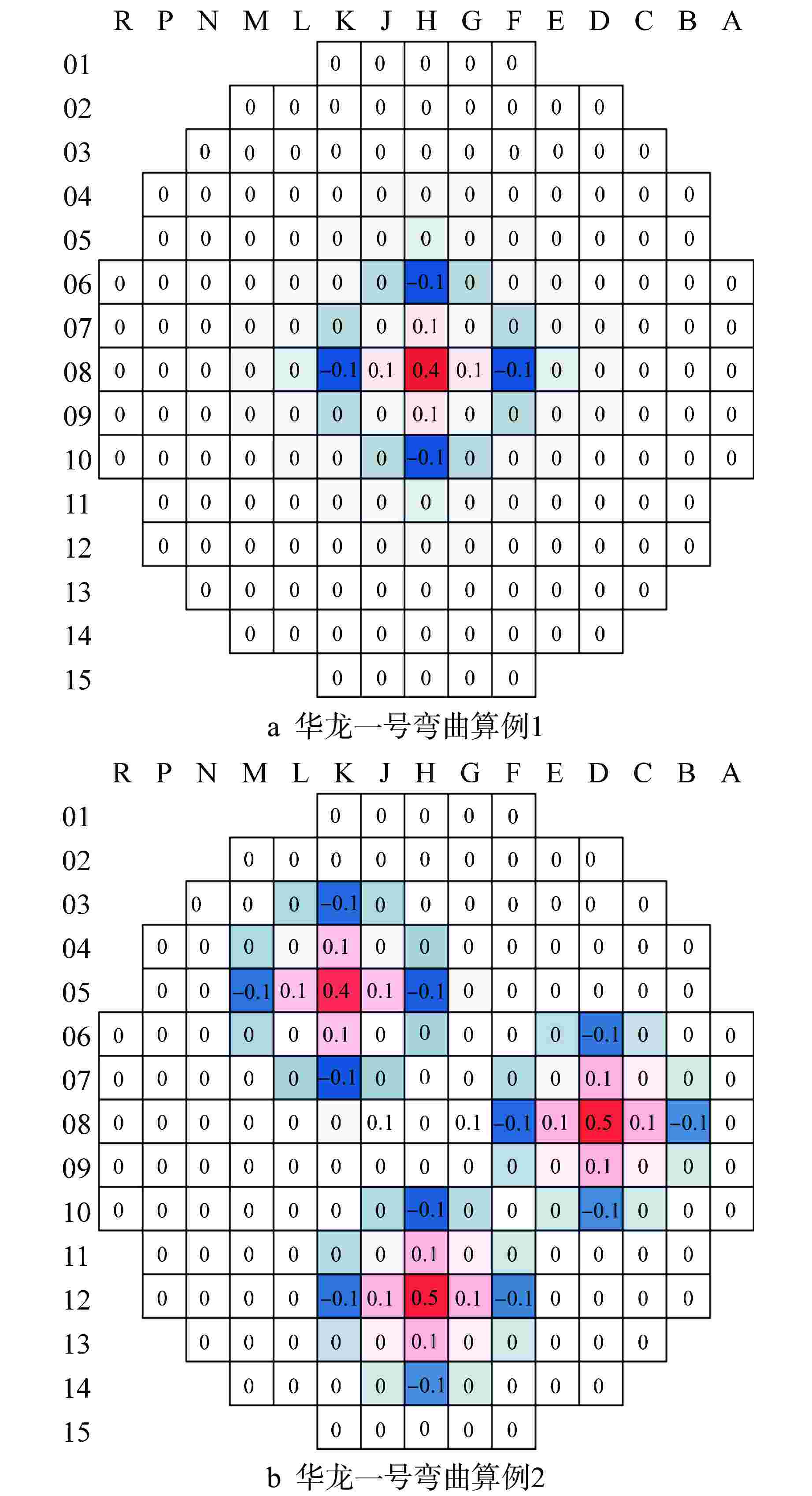 表 1 二维 mini-core弯曲算例keff的对比 Table 1. Comparison of keff for 2D Mini-core Bowing Cases 程序 keff相较于常规模型的变化/pcm 弯曲算例1 弯曲算例2 NECP-MCX −6 −70 改进前的Bamboo-C −0.1 −15 改进后的Bamboo-C −7.3 −44 表 2 华龙一号堆芯弯曲算例keff的对比 Table 2. Comparison of keff for HPR1000 Bowing Cases 程序 keff相较于常规模型的变化/pcm 弯曲算例1 弯曲算例2 NECP-MCX −0.11 −0.50 改进前的Bamboo-C −0.15 0.30 改进后的Bamboo-C −0.16 0.13