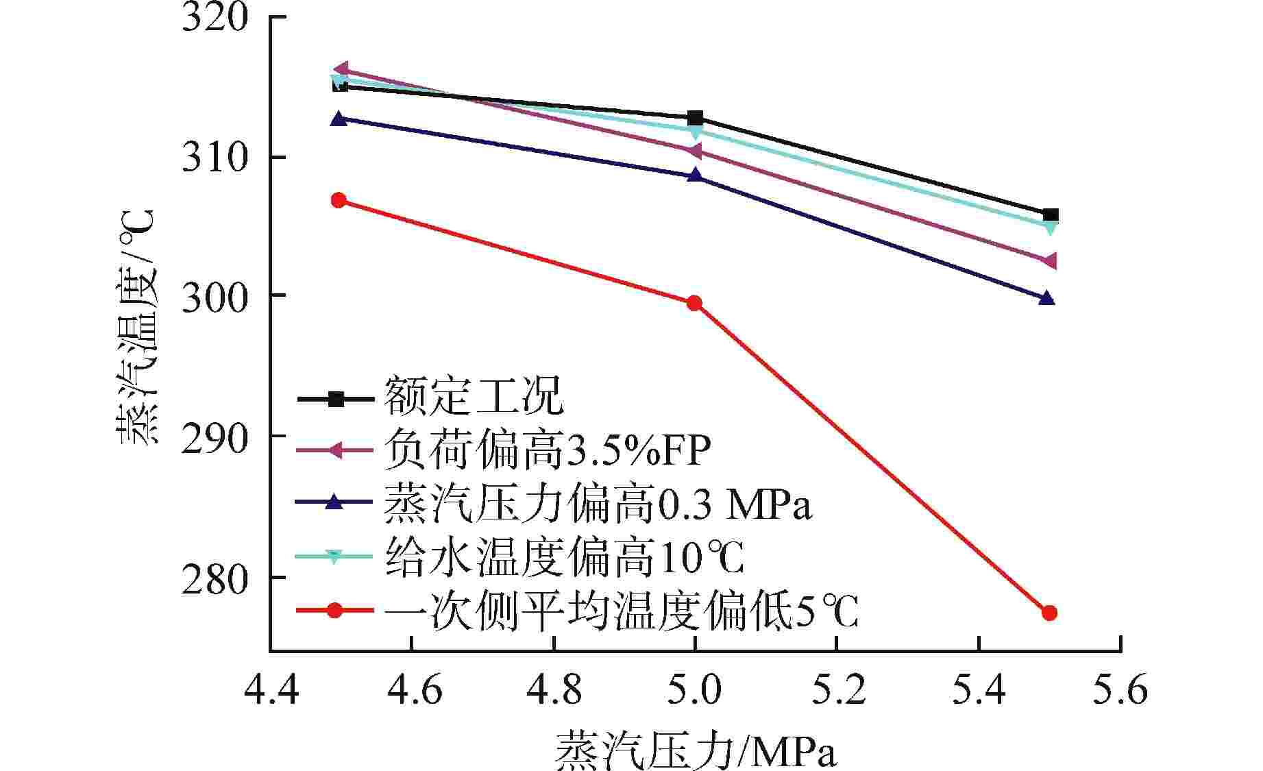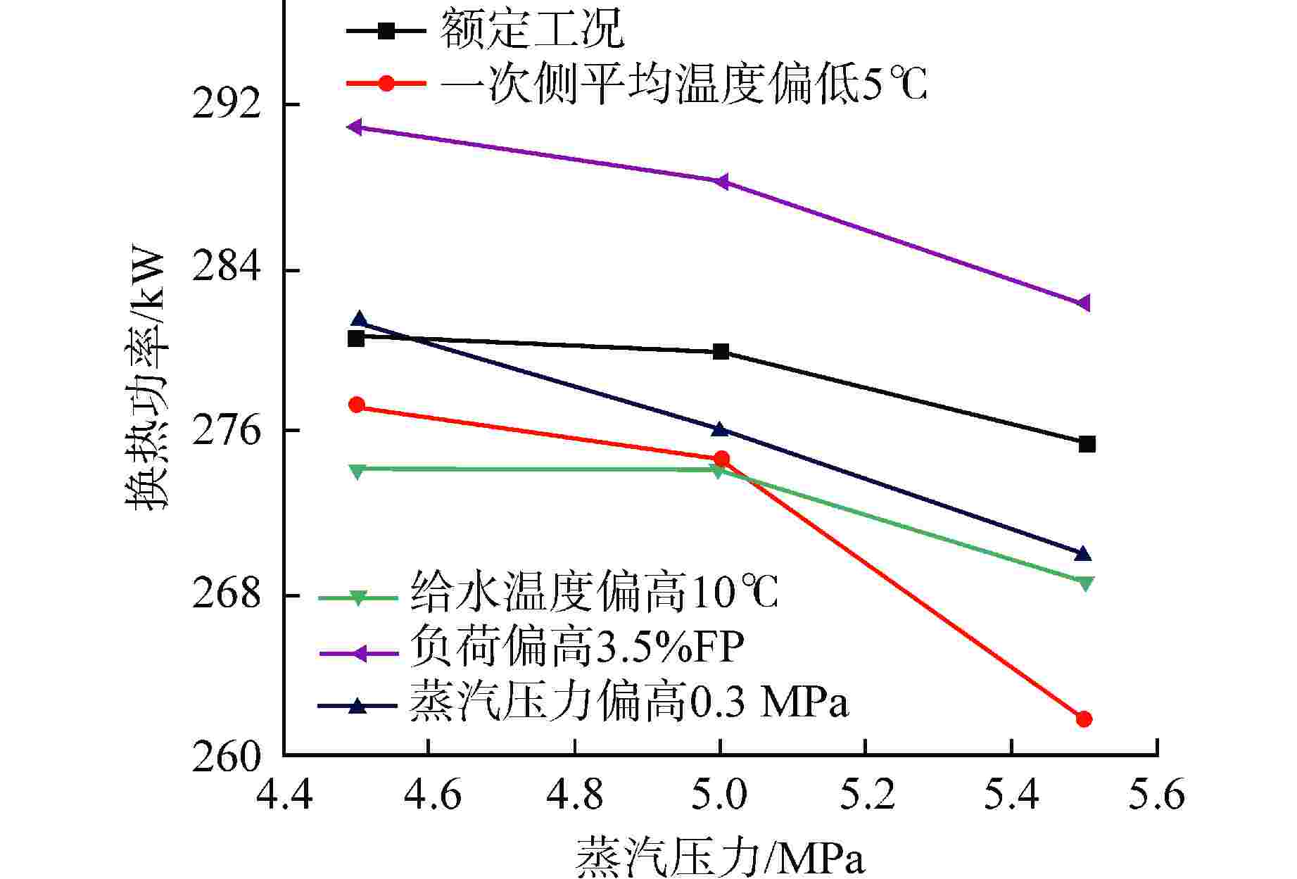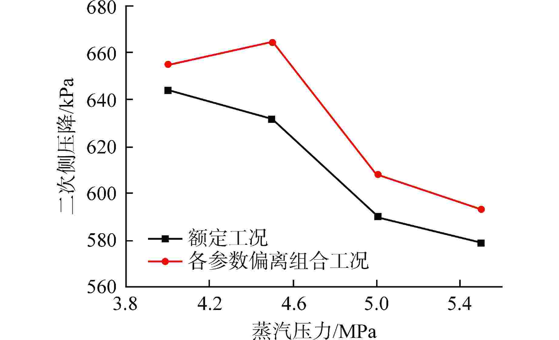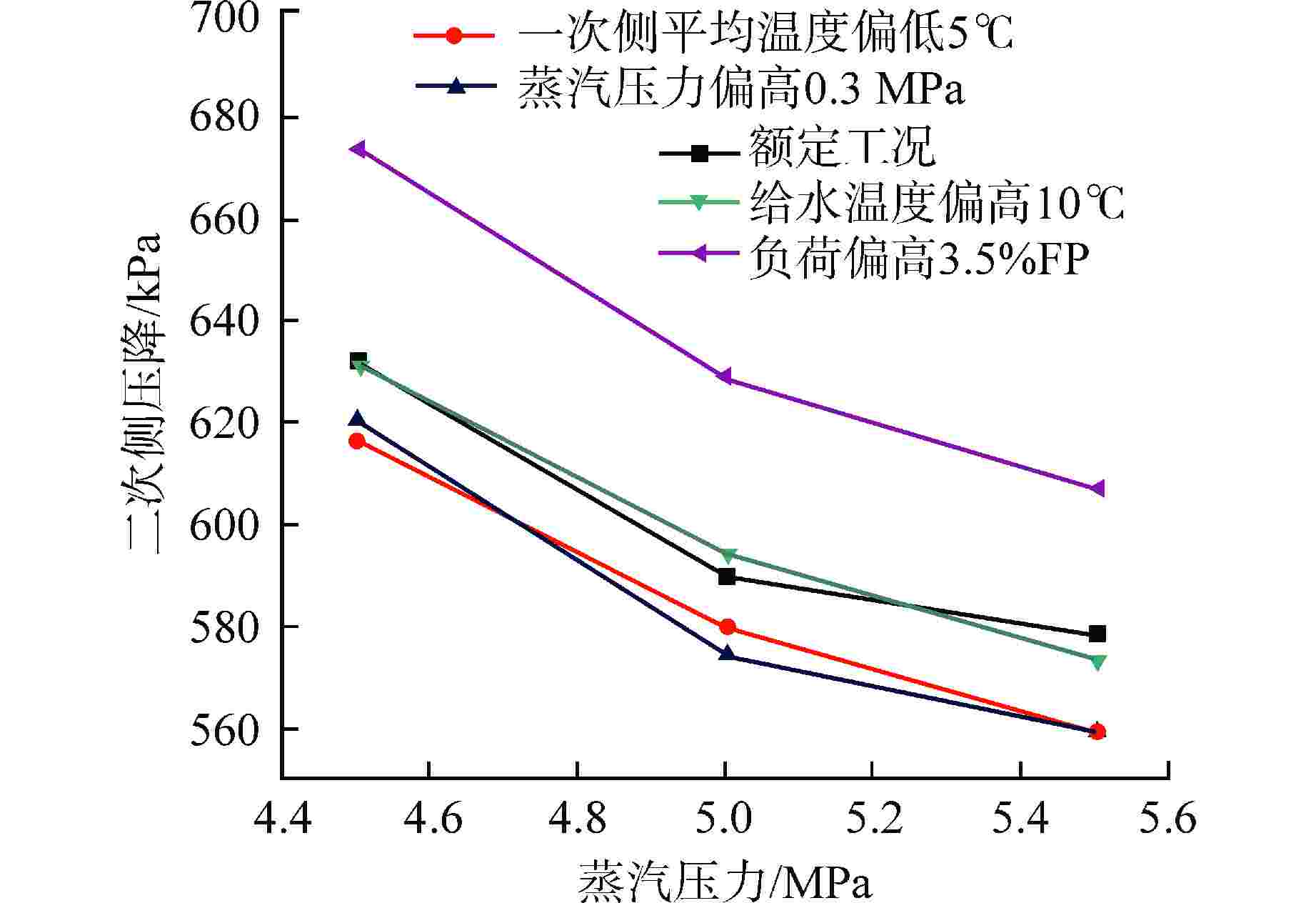 参数名 设计偏离值 偏离后数值 一次侧压力/MPa 15.0 一次侧流量(单根管)/(kg·h−1) 426.1 一次侧平均温度/℃ −5 298 蒸汽压力/MPa +0.3 4.3、4.8、5.3、5.8 给水温度/℃ +10 150 负荷/%FP 3.5 103.5 -