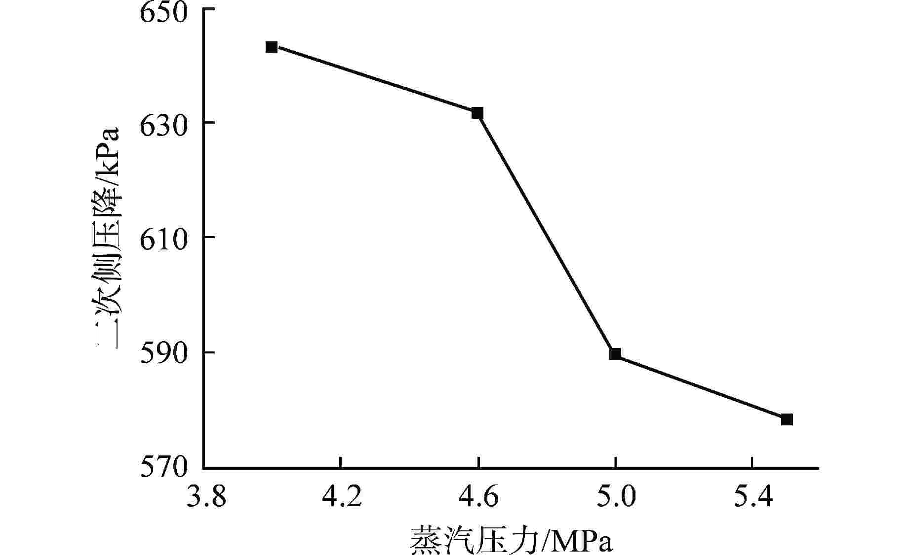 参数 数值 一次侧压力/MPa 15.0 一次侧流量(单根管)/(kg·h−1) 426.1 一次侧平均温度/℃ 303 蒸汽压力/MPa 4.0、4.5、5.0、5.5 给水温度/℃ 140 负荷/%FP 100 表 2 偏离工况实验参数