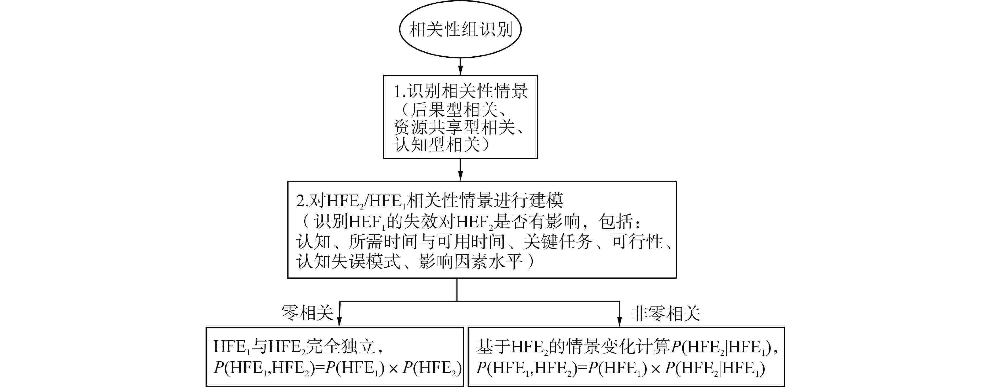 相关性关系 相关性因素 相关性影响 零 低 中 高 R1功能或系统 R1.1相同功能或系统导致的认知型相关 0 5×10−2 1×10−1 3×10−1 R1.2相同功能或系统导致的后果型相关 0 1×10−2 5×10−2 2×10−1 R1.3相同功能或系统导致的资源共享型相关 0 2×10−3 1×10−2 5×10−2 R2时间 R2.1操作时间接近导致的后果型相关 0(t>4) 1×10−3(3≤t<4) 1×10−2(2≤t<3) 1×10−1(1≤t<2) R2.2关键信号出现时间接近导致的后果型相关 0 5×10−3 5×10−2 1×10−1 R3人员 R3.1相同人员导致的认知型相关 0 5×10−2 1×10−1 3×10−1 R3.2相同人员导致的后果型相关 0 2×10−3 1×10−2 3×10−2 R3.3相同人员导致的资源共享型相关 0 2×10−3 1×10−2 5×10−2 R4位置 R4.1同一位置导致的后果型相关 0 2×10−3 5×10−3 2×10−2 R4.2同一位置和时间导致的后果型相关 0 2×10−3 5×10−3 7×10−3 R5规程 相同规程导致的认知型相关 0 5×10−3 5×10−2 3.5×10−1 t—可用时间/所需时间 表 2 预确定分析