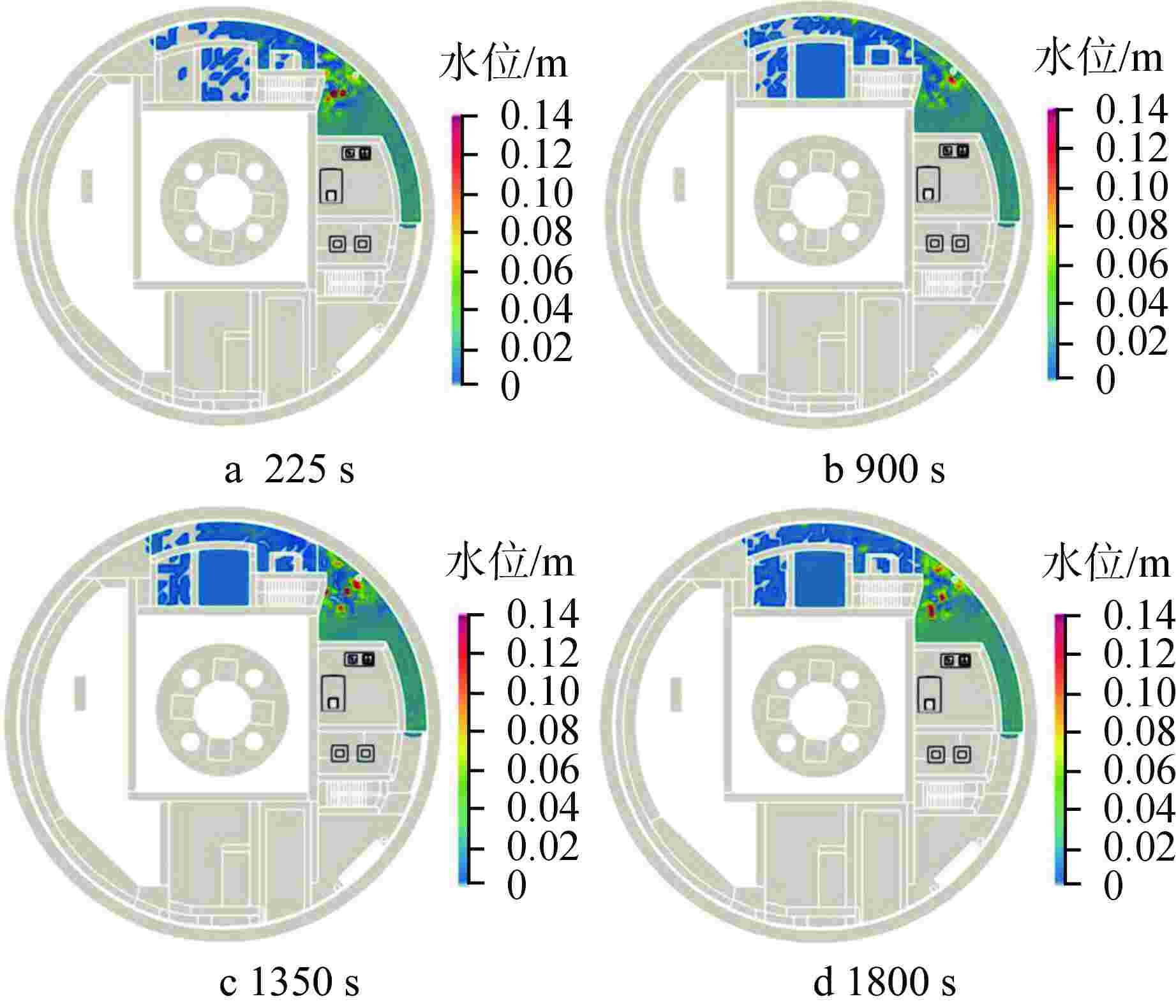 房间号 最大水位高度/m 误差/% 试验值 CNIFA计算值 S083 0.550 0.568 3.27 S085 0.550 0.560 1.82 S081 0.550 0.540 1.82 S010 0.550 0.560 1.82 S012 0.550 0.565 2.73 S071 0.550 0.545 0.91 S011 0.550 0.565 2.73 S013 0.570 0.580 1.75 S073 0.550 0.555 0.91 表 2 JR厂房水淹源信息